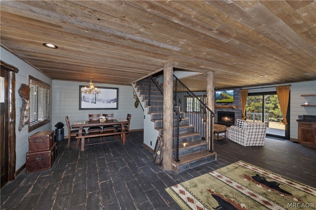 Tucked inside the gates of Eagles Knoll Estates, this fully reimagined mountain retreat blends modern upgrades with urban mountain charm. Offering 4 bedrooms, 2.5 baths, and 2,948 square feet of living space on an expansive 16,842 sq ft lot, this home was designed for comfort, entertaining, and everyday ease. From the moment you step inside, youll notice the attention to detailwood-style tile flooring throughout for durability and style, stunning ghost wood pine ceilings that bring warmth and character, and an open layout perfect for gathering. The chefs kitchen is a true centerpiece, featuring ZLINE stainless steel appliances, rich Alder cabinetry, and sleek black quartz countertops with a perfect vantage point to stay connected while entertaining. The main-level primary suite offers a private retreat with its own gas fireplace and direct access to the backyard, creating a seamless indoor-outdoor feel. Every inch of the home has been thoughtfully upgraded, including newer California Deluxe windows and doors, a newer roof, and fresh interior and exterior paint.Need space for fun? The fully finished game room off the garage is ready for it all, complete with engineered hardwood accents that elevate the space. Car enthusiasts and adventure seekers will love the oversized, 3-car garage with epoxy-style flooringideal for storing vehicles, boats, or mountain toys. Step outside and enjoy a backyard designed for both relaxation and play, with room for kids, pets, and gatherings. As part of this private lakeside community, youll also enjoy access to HOA amenities including a park, tennis/pickleball courtsand rare dock rights to the community docks, making lake days effortless. With no short-term rentals allowed, Eagles Knoll Estates offers a level of privacy and tranquility thats hard to find, all while being just a short stroll to shops, restaurants, and the Alpine Pedal Path. This is more than a homeits a lifestyle.