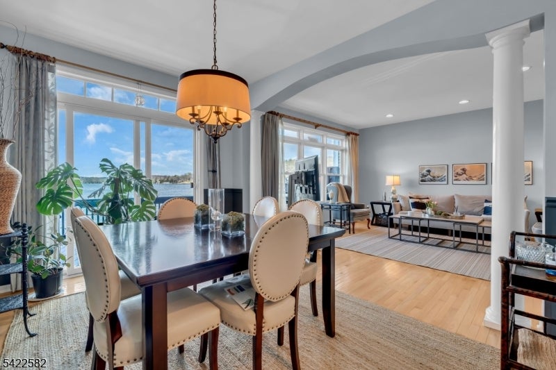 Come experience this 3-story luxury townhome on beautiful Lake Hopatcong! Its unique position within the community arguably offers the best views in the entire complex, featuring lake views from both the front and back of the home! Watch the sunrise from the back and sunset from the front of the house. The lower level features a spacious family room with a full bath and access to a covered deck, ideal for relaxing and entertaining by the water. The main level boasts an open concept great roo, den with fireplace, dining room, a kitchen with quartzite counter tops, and wood floors. Step out on to the upper deck to enjoy morning sun and cool shaded afternoons overlooking the lake. Upstairs, the second floor offers a serene primary stuttered direct lake views from and laundry for convenience. Residents enjoy resort style amenities including a private dock, clubhouse, pool, tennis courts, and a fitness center. Located just minutes from major highways, mass transit, and shopping, this home offers convenience and lakeside tranquility. Love the ultimate lake lifestyle- vacation all year round on New Jerseys largest lake! Turnkey available including a 19 Chaparral bow rider boat.