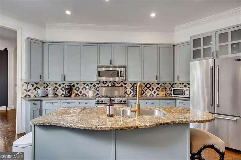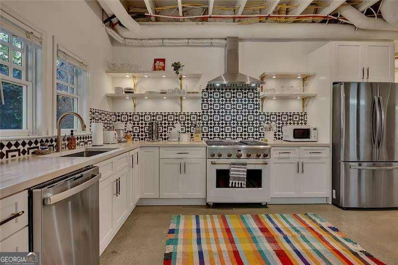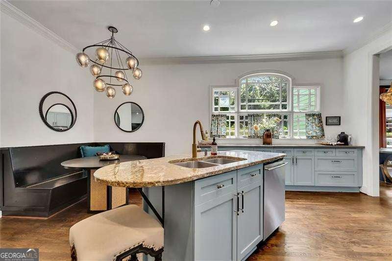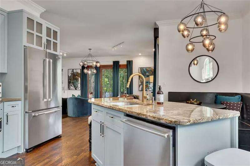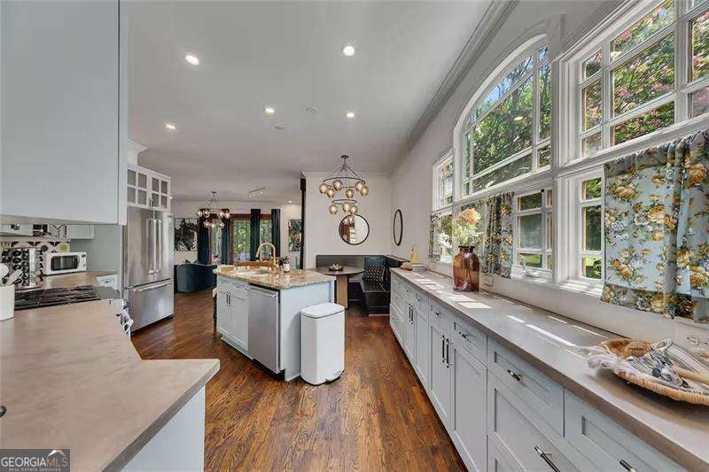 Beautiful renovated home on one of Inman Parks best streets with over 100 of frontage on Freedom Park! This large home has all the living space you could need including a full daylight terrace level apartment with 10 ceilings, exposed beams, and polished concrete floors. The front porch sits just a few steps above the street. Big dining room. Bright kitchen with views of the park.