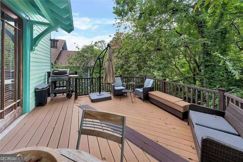 Beautiful renovated home on one of Inman Parks best streets with over 100 of frontage on Freedom Park! This large home has all the living space you could need including a full daylight terrace level apartment with 10 ceilings, exposed beams, and polished concrete floors. The front porch sits just a few steps above the street. Big dining room. Bright kitchen with views of the park. Kitchen island and breakfast banquette area. Huge living room with fireplace and triple door out to the large park-side deck. Big bedroom suite on main. Master suite upstairs with walk-in closet, double vanities, vaulted ceilings, skylight. Open landing upstairs with space for loft/workout area plus study/reading nook. Two additional sizable secondary bedrooms upstairs plus hall bath. Terrace level has huge kitchen/living/dining combo with room for media game room and it walks out to a large private patio. Big 5th bedroom suite with walk-in closet and storage room on terrace level. Newer roof, HVAC, dual water heaters. Custom lighting, plumbing fixtures, and window treatments throughout. Transferrable Inman Park Pool membership! This home is perfectly situated in the neighborhood and is waiting for its new owner!