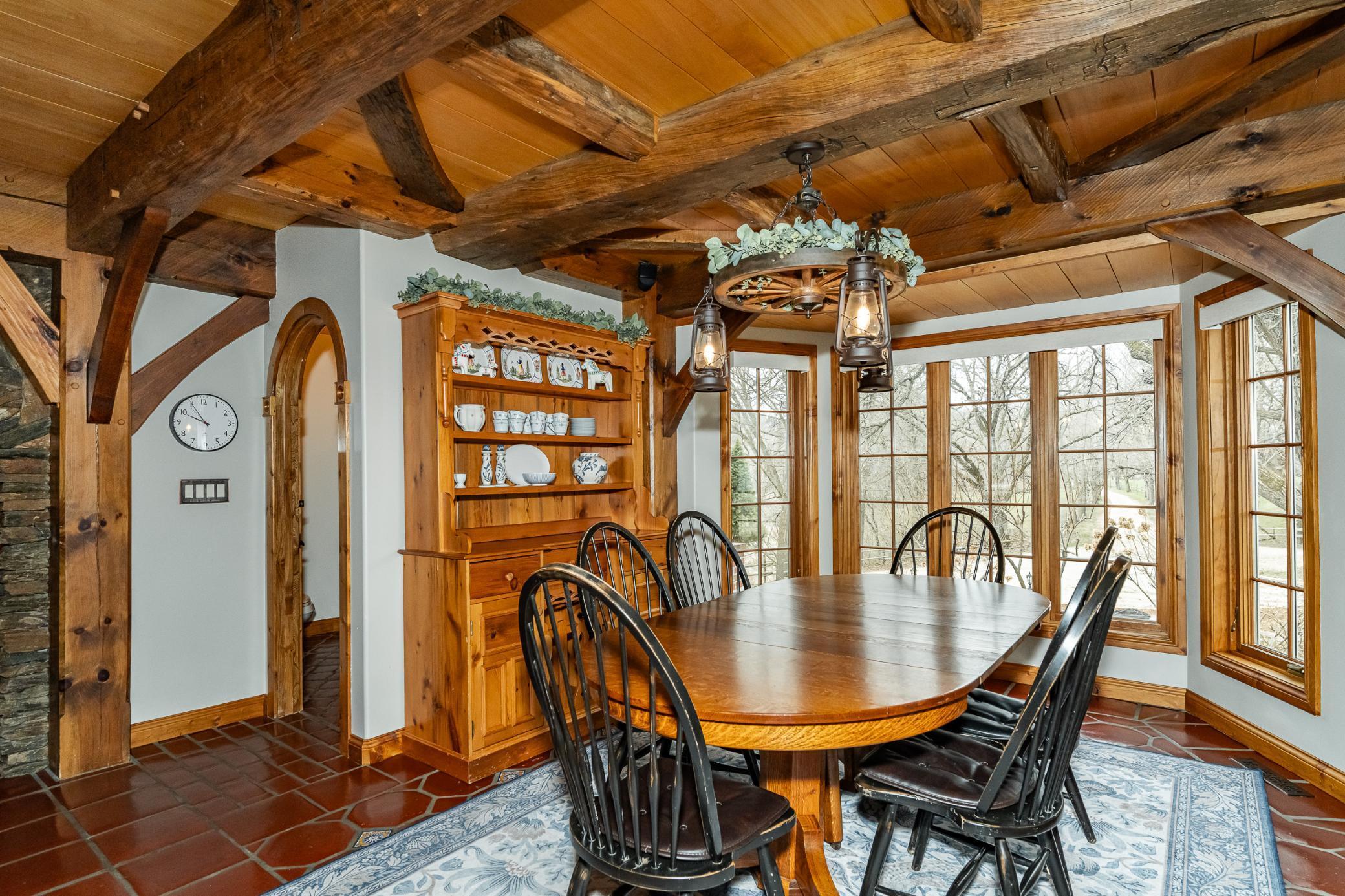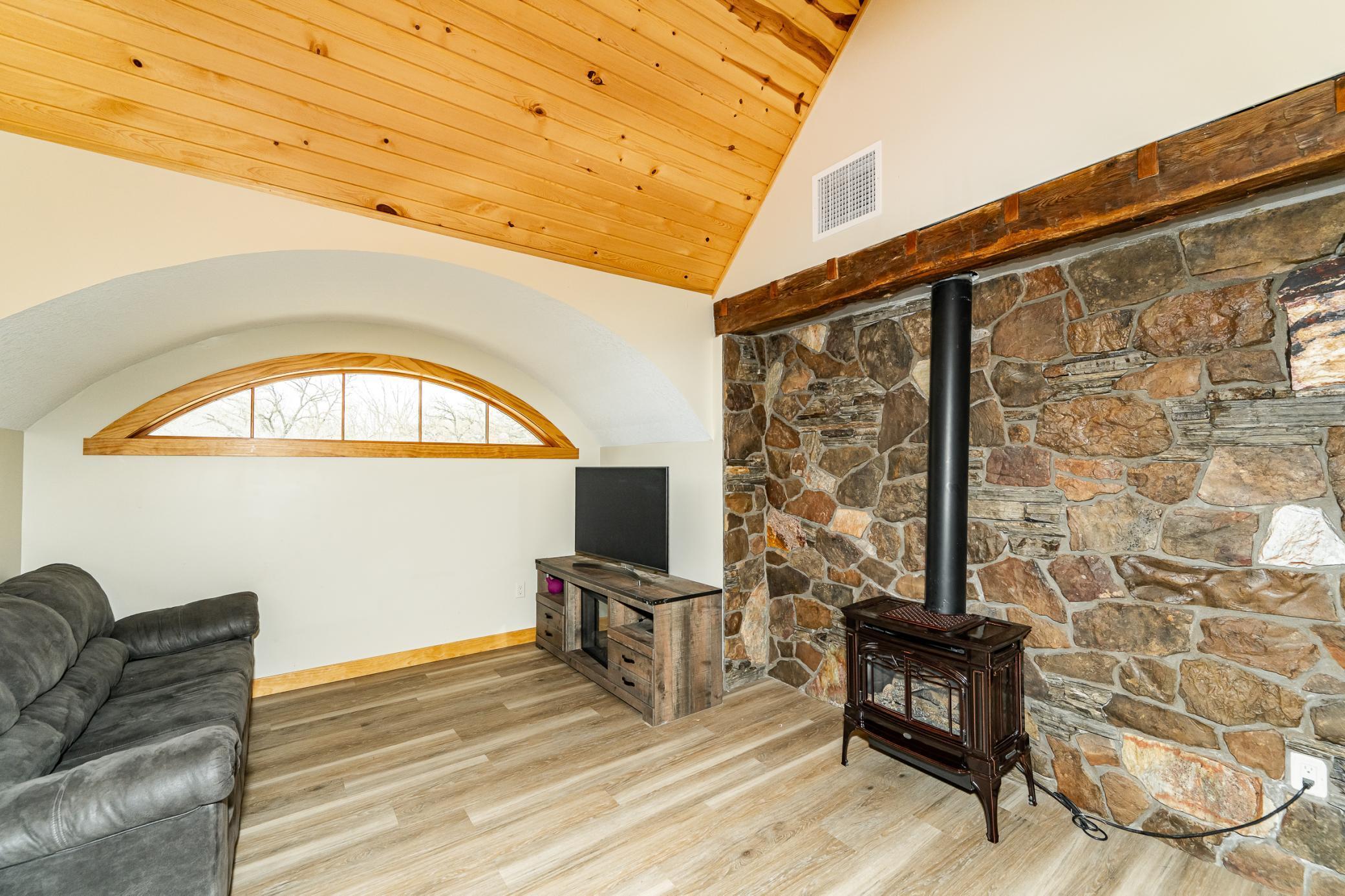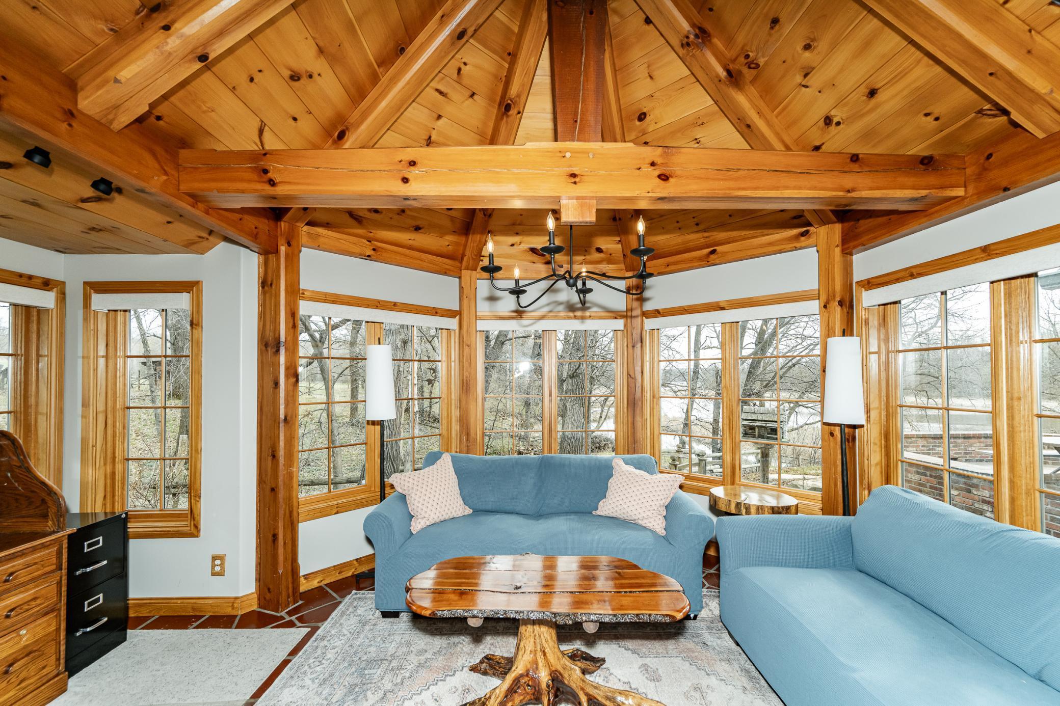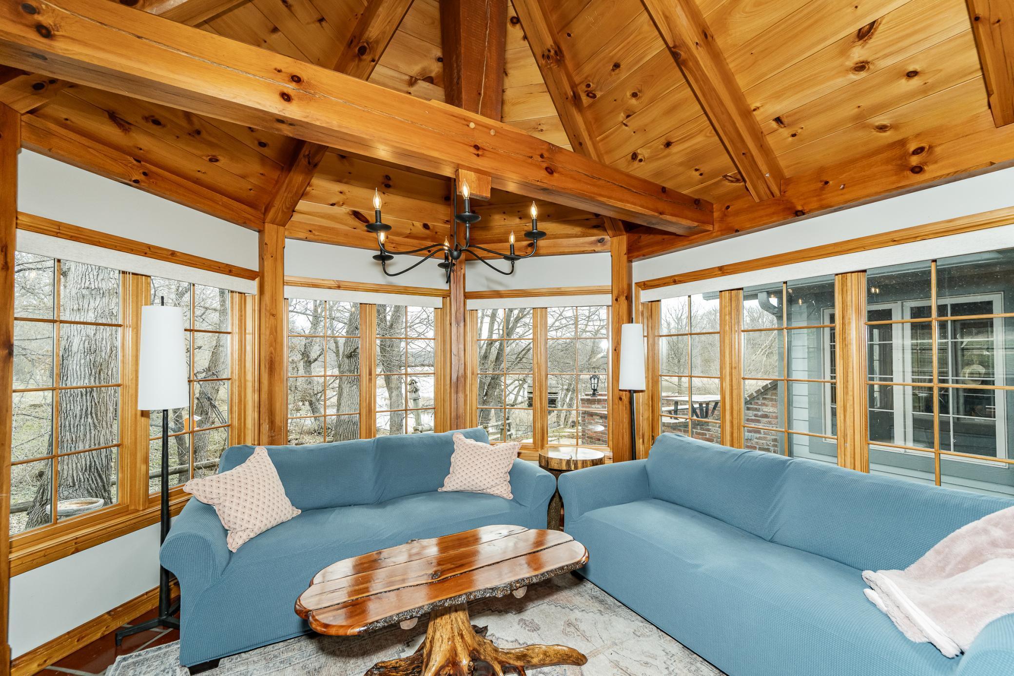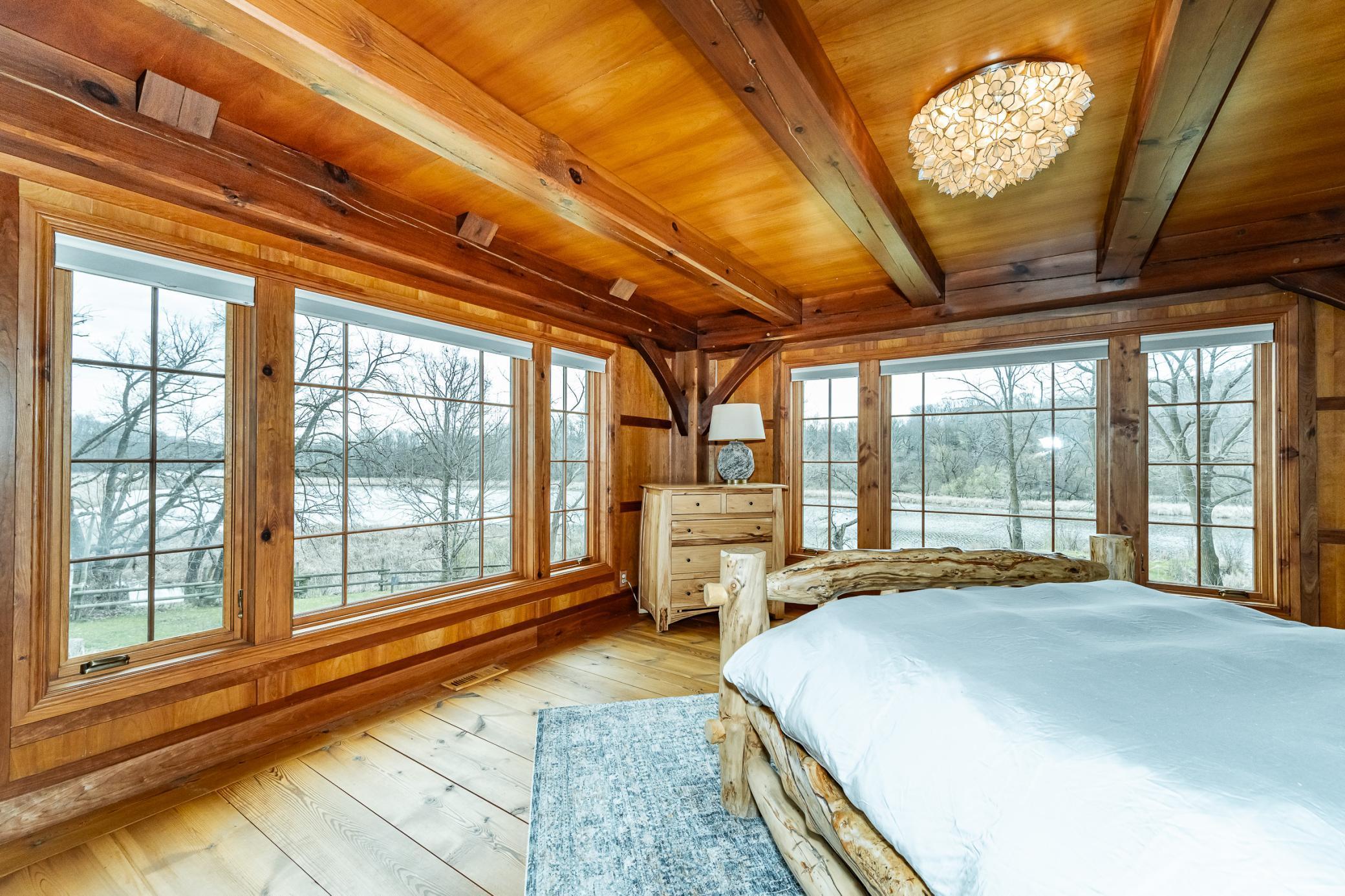Very private enchanting English Tudor with Scandinavian old world charm accents, sweeping shoreline view of Lake Zumbro. Truly a one of a kind Dream estate featuring imported and custom features throughout! Million dollar views from every window. Custom bridge walkway connects 2 upper Brs. soaring vaults in many rooms. In floor heating in all of main & lower level plus 3 car garage. 1 BR 1 bath area finished above the garage perfect for guests, hanny or extended family. Relaxing in the sauna or STEAM bath! New 50 year shingles on house & garage in 2025. 4 fireplaces, red pine floors imported from sweden. Italian ILVE majestic 48 inch gas range w/ 8 burners, granite counters copper sinks. This is a complete Timber frame structure sitting on the back of Rouches Bay on Lake Zumbro, 5 min from public boat launch. Additional land available. Rochester or Pine Island schools.