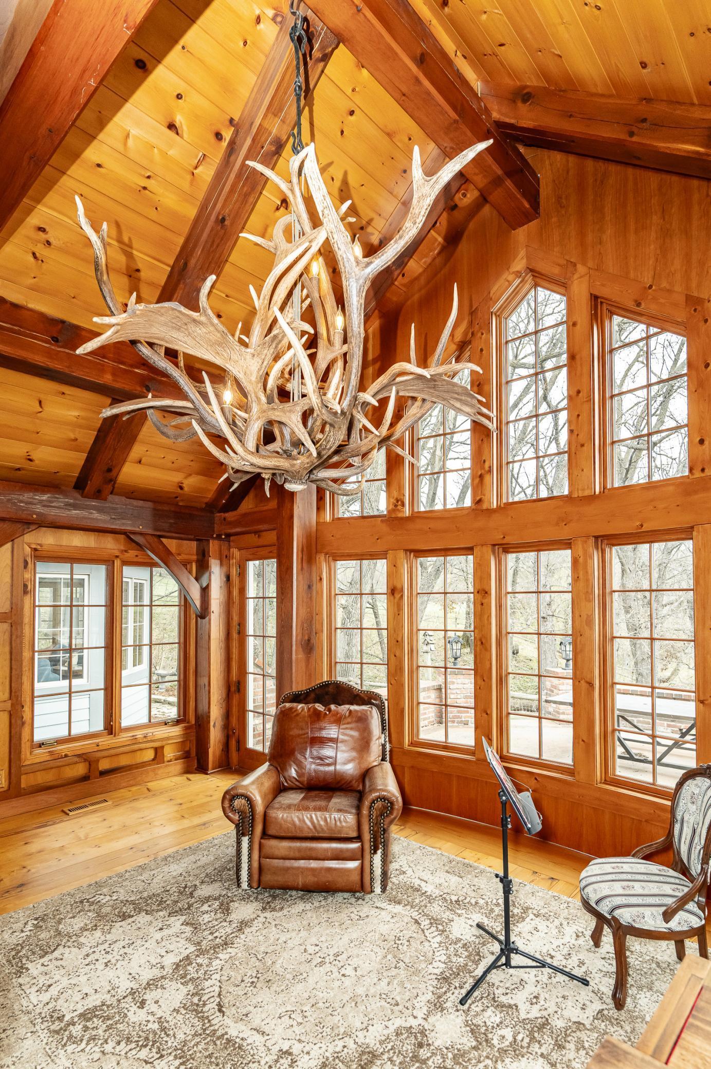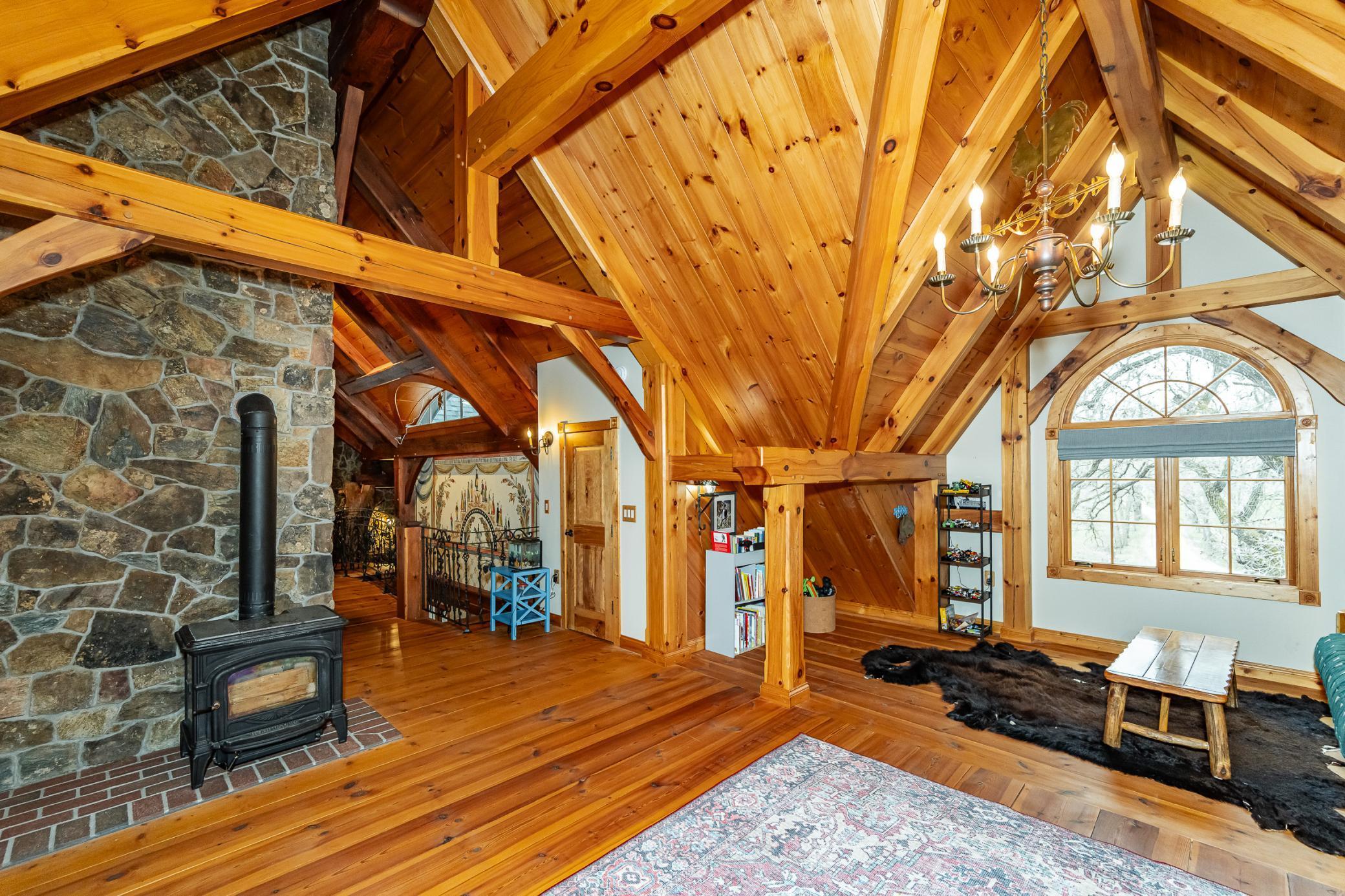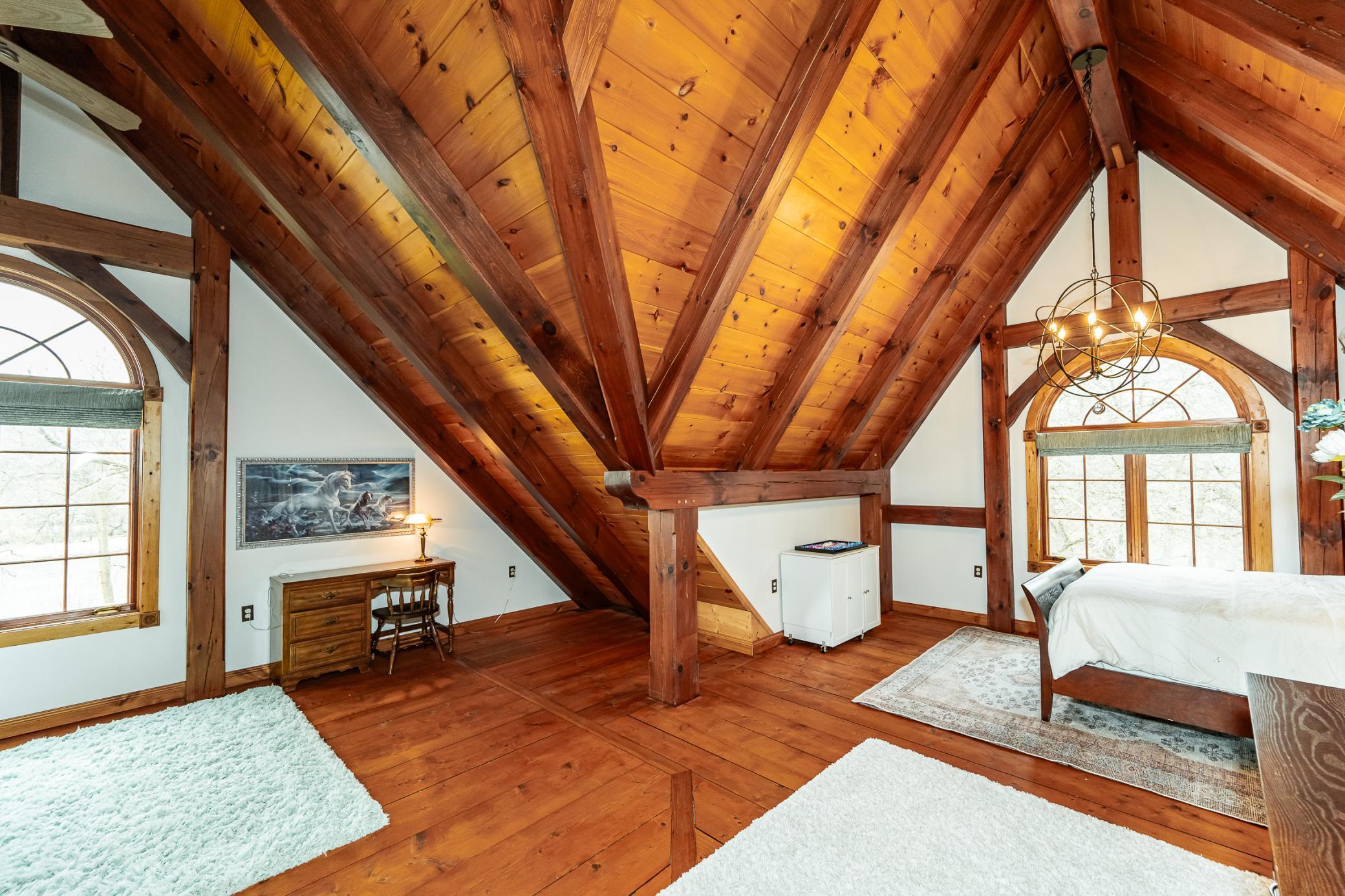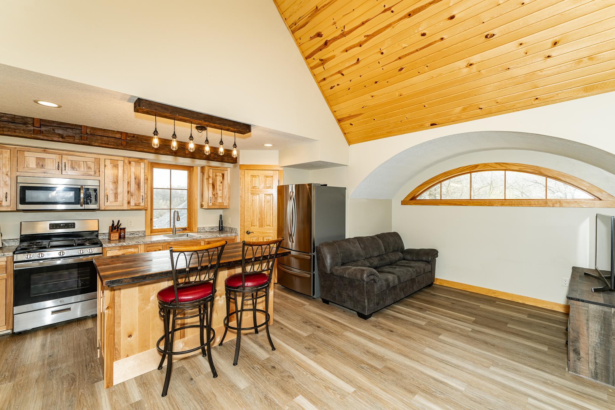 Very private enchanting English Tudor with Scandinavian old world charm accents, sweeping shoreline view of Lake Zumbro. Truly a one of a kind Dream estate featuring imported and custom features throughout! Million dollar views from every window. Custom bridge walkway connects 2 upper Brs. soaring vaults in many rooms. In floor heating in all of main & lower level plus 3 car garage. 1 BR 1 bath area finished above the garage perfect for guests, hanny or extended family. Relaxing in the sauna or STEAM bath! New 50 year shingles on house & garage in 2025. 4 fireplaces, red pine floors imported from sweden. Italian ILVE majestic 48 inch gas range w/ 8 burners, granite counters copper sinks. This is a complete Timber frame structure sitting on the back of Rouches Bay on Lake Zumbro, 5 min from public boat launch. Additional land available. Rochester or Pine Island schools.