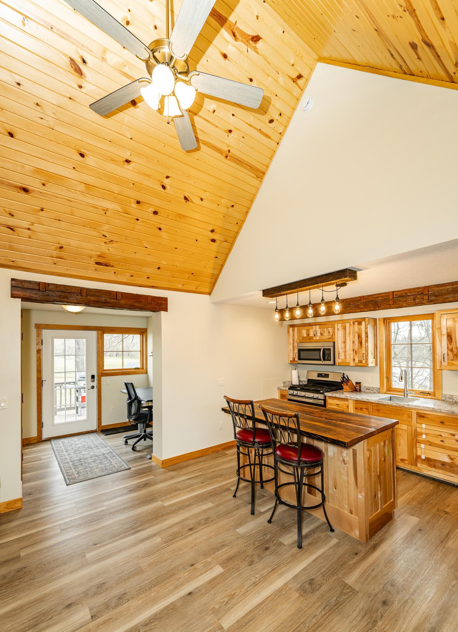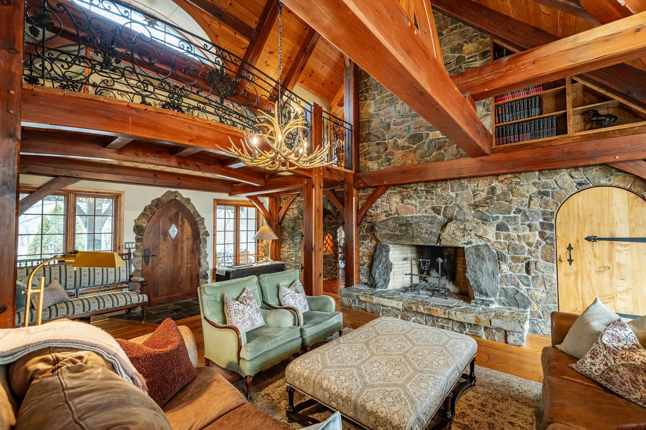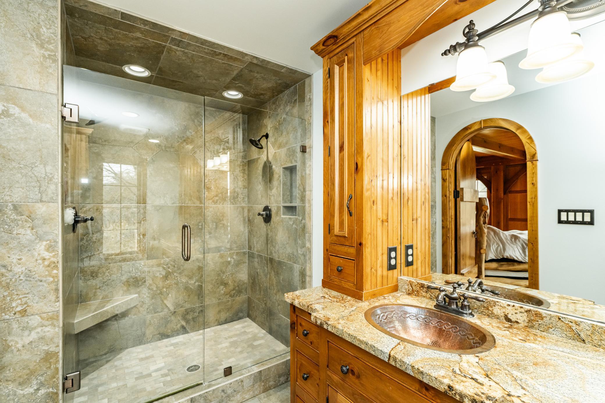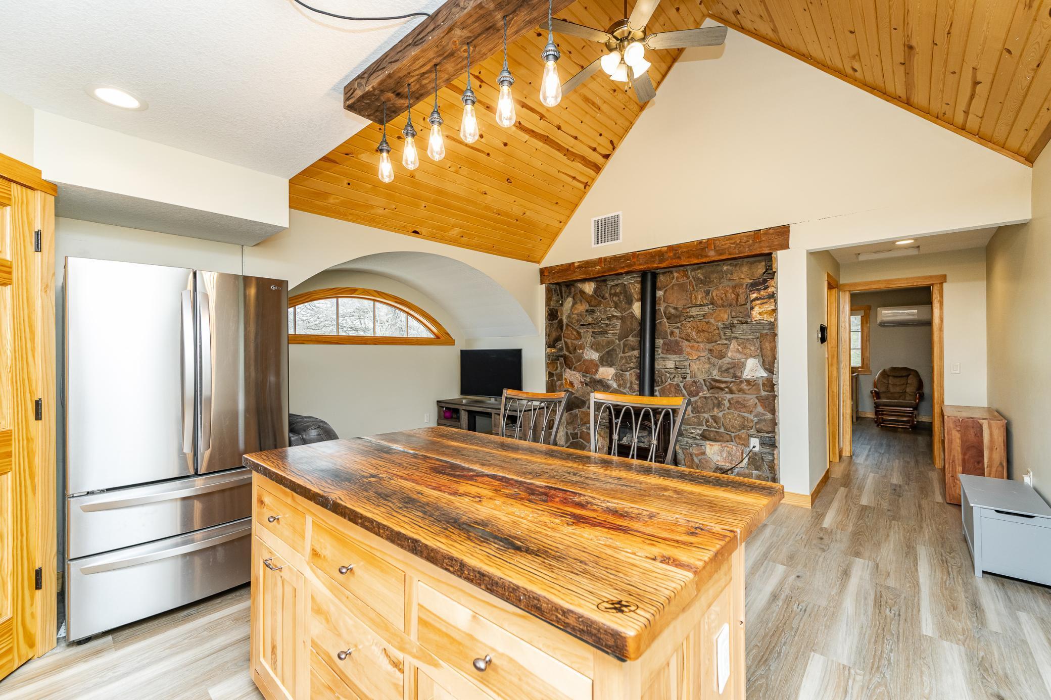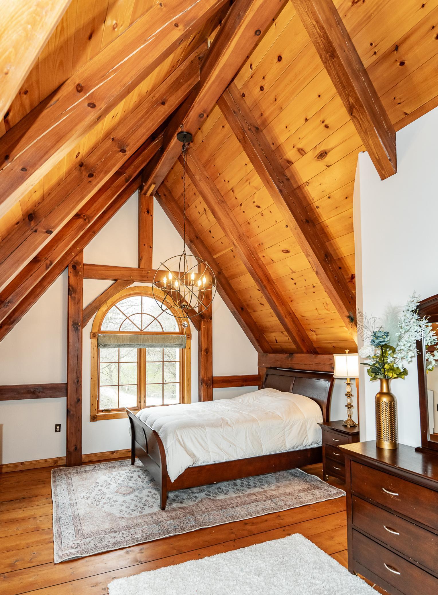 Very private enchanting English Tudor with Scandinavian old world charm accents, sweeping shoreline view of Lake Zumbro. Truly a one of a kind Dream estate featuring imported and custom features throughout! Million dollar views from every window. Custom bridge walkway connects 2 upper Brs. soaring vaults in many rooms. In floor heating in all of main & lower level plus 3 car garage. 1 BR 1 bath area finished above the garage perfect for guests, hanny or extended family. Relaxing in the sauna or STEAM bath! New 50 year shingles on house & garage in 2025. 4 fireplaces, red pine floors imported from sweden. Italian ILVE majestic 48 inch gas range w/ 8 burners, granite counters copper sinks. This is a complete Timber frame structure sitting on the back of Rouches Bay on Lake Zumbro, 5 min from public boat launch. Additional land available. Rochester or Pine Island schools.