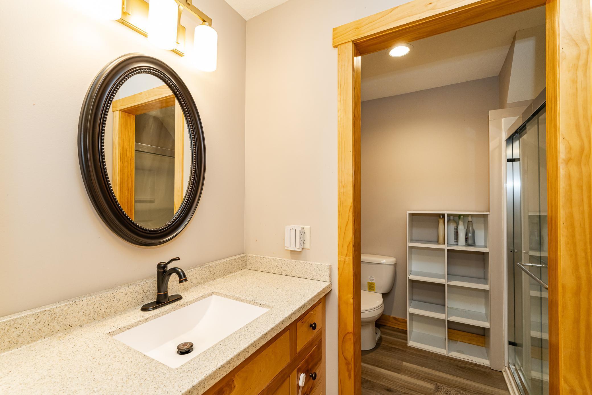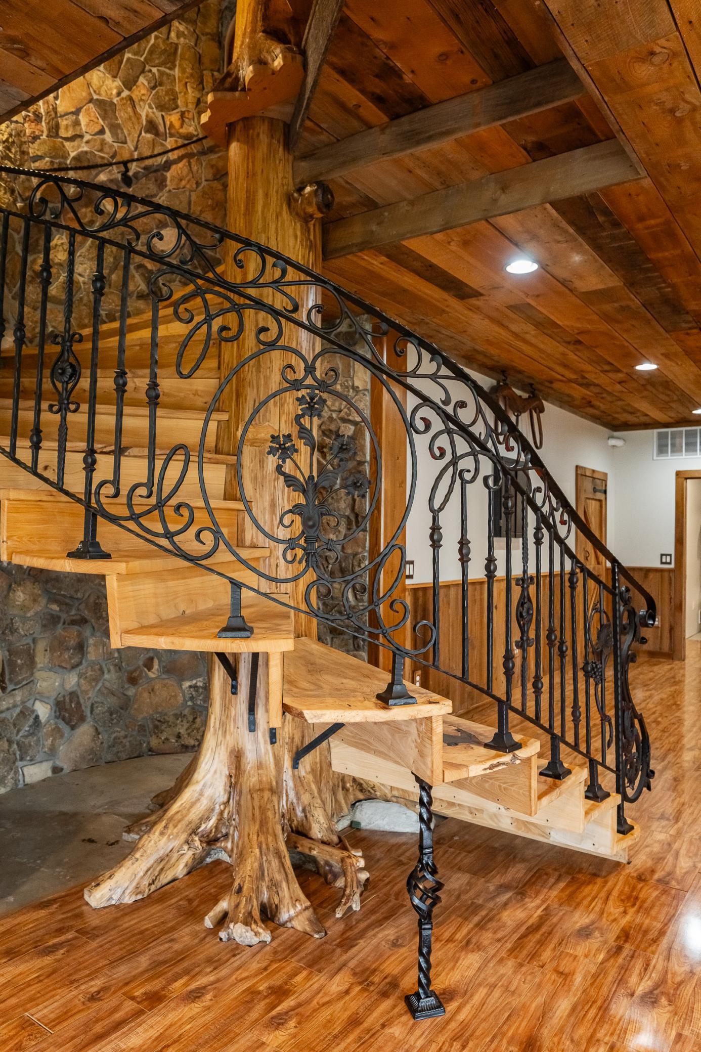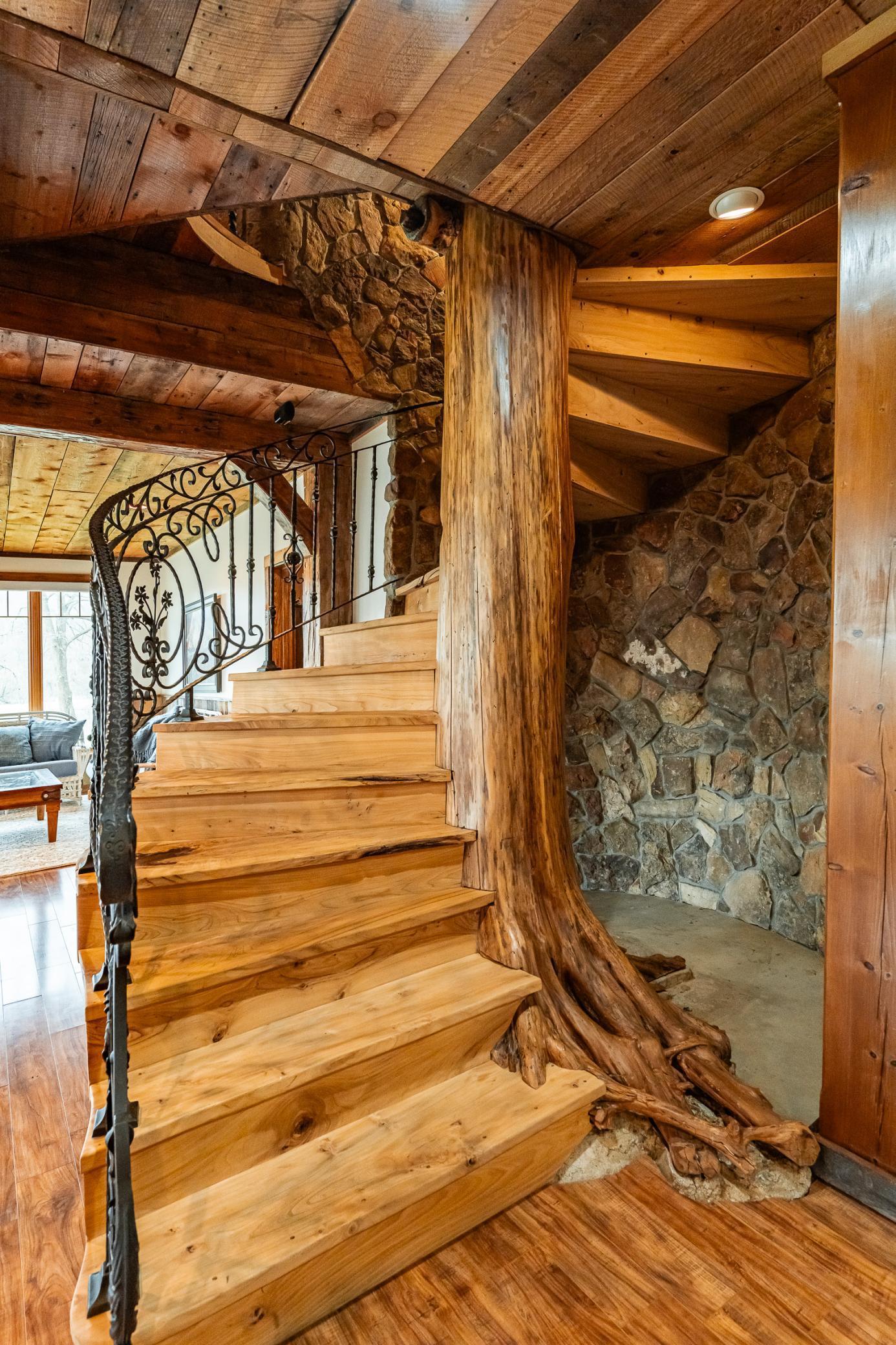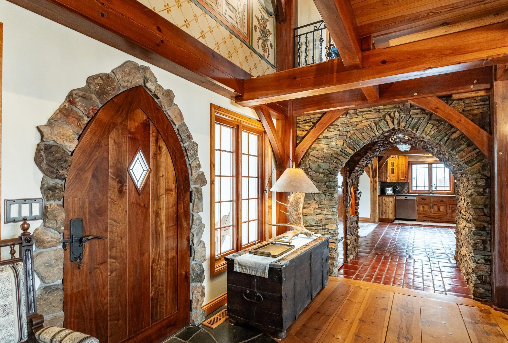 Very private enchanting English Tudor with Scandinavian old world charm accents, sweeping shoreline view of Lake Zumbro. Truly a one of a kind Dream estate featuring imported and custom features throughout! Million dollar views from every window. Custom bridge walkway connects 2 upper Brs. soaring vaults in many rooms. In floor heating in all of main & lower level plus 3 car garage.