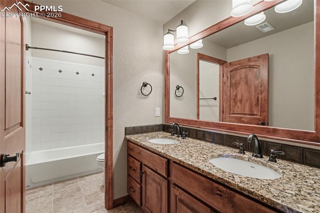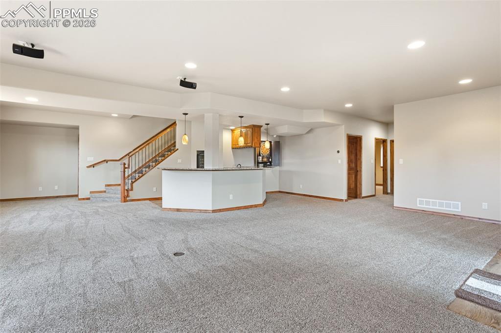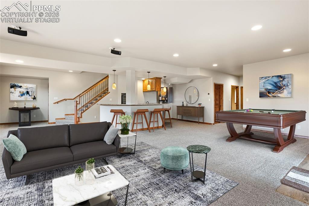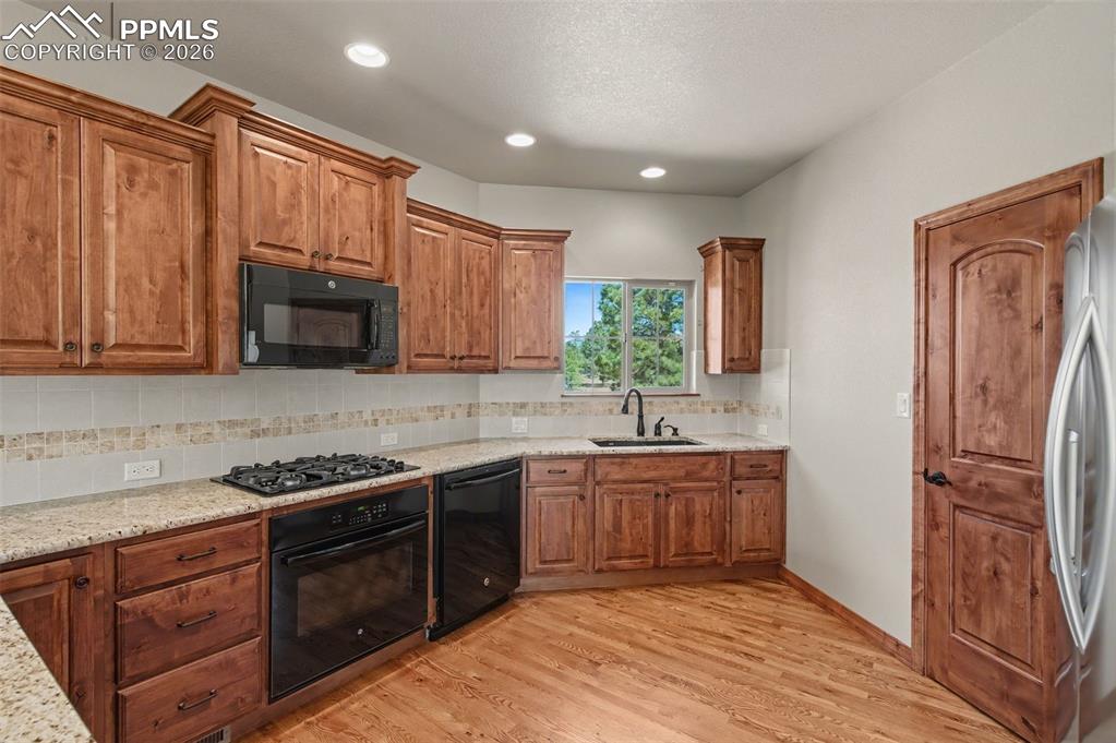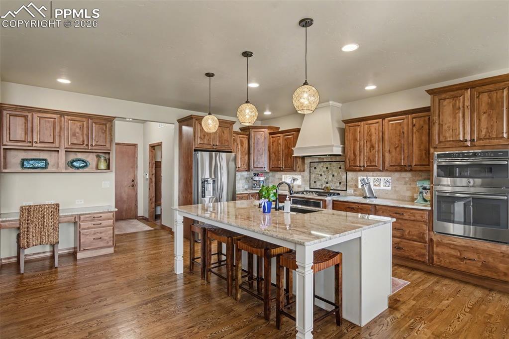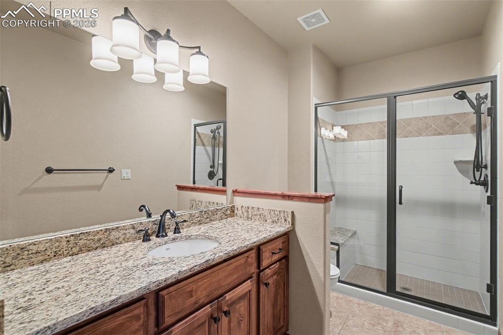 Nestled in sought-after High Forest Ranch, this luxurious ranch-style home offers breathtaking mountain views from every level, gorgeous upgrades, and wonderful amenities. Step inside and beautiful hardwood floors beckon you into the great room, featuring a vaulted, beamed ceiling, and stone indoor/outdoor fireplace. The great room seamlessly connects to the gourmet kitchen, dining area, and a walk-out to the deck- perfect for dining al fresco. Channel your inner chef with an oversized island, granite countertops, walk-in pantry, and stainless-steel appliances including a double oven and gas range with beautiful range hood. Retreat to the spacious primary suite featuring gorgeous mountain views, walk-out to the deck, and ensuite 5-piece bath with walk-in closet. The convenient laundry room and mudroom is off of the attached 3-car garage, which offers ample storage and convenience. Pass through the laundry room to access the casita, featuring a private entrance, bedroom, bathroom, well-appointed kitchen, dining area, living room, enclosed deck, and attached 2-car garage. Back in the main house, another bedroom with ensuite bath, office, and powder room round out the main level. Downstairs features an expansive family room with wet bar, cozy fireplace, and walk-out to the covered patio with hot tub, perfect for relaxing at the end of the day. Two additional bedrooms with walk-in closets, full bathroom, and a large storage space provide endless opportunities for guests, home gym, work space, craft space, and more. This impeccably cared-for home boasts central vacuum and smart home thermostat. With acreage for gardening, lawn games, and more, this backyard is a hosts dream. This picturesque, gated neighborhood offers countless amenities including parks, trails, tennis courts, and a club house with community gatherings, designed to foster lasting friendships. Enjoy luxury Colorado living at its finest- Schedule a showing to see this magnificently upgraded home today!