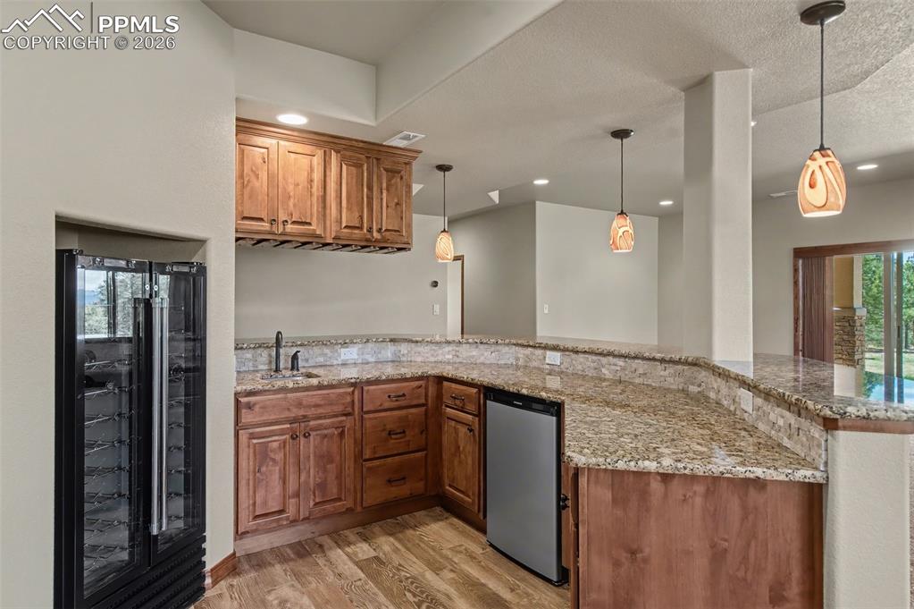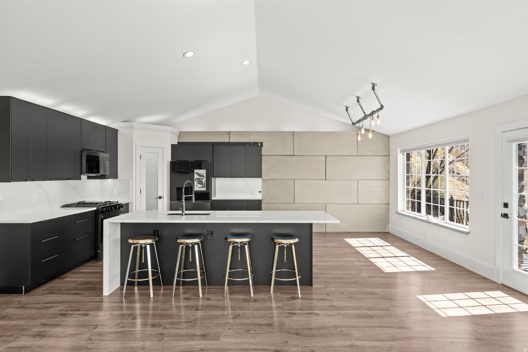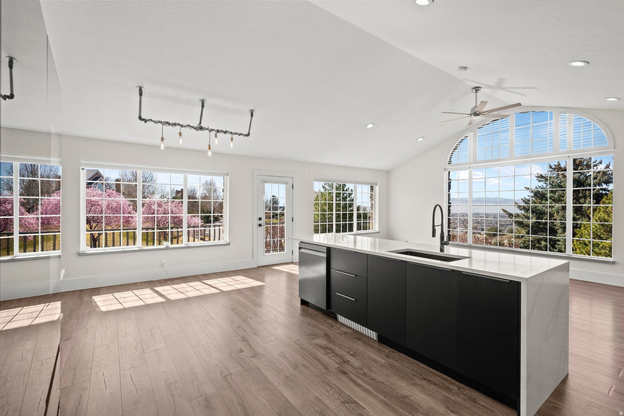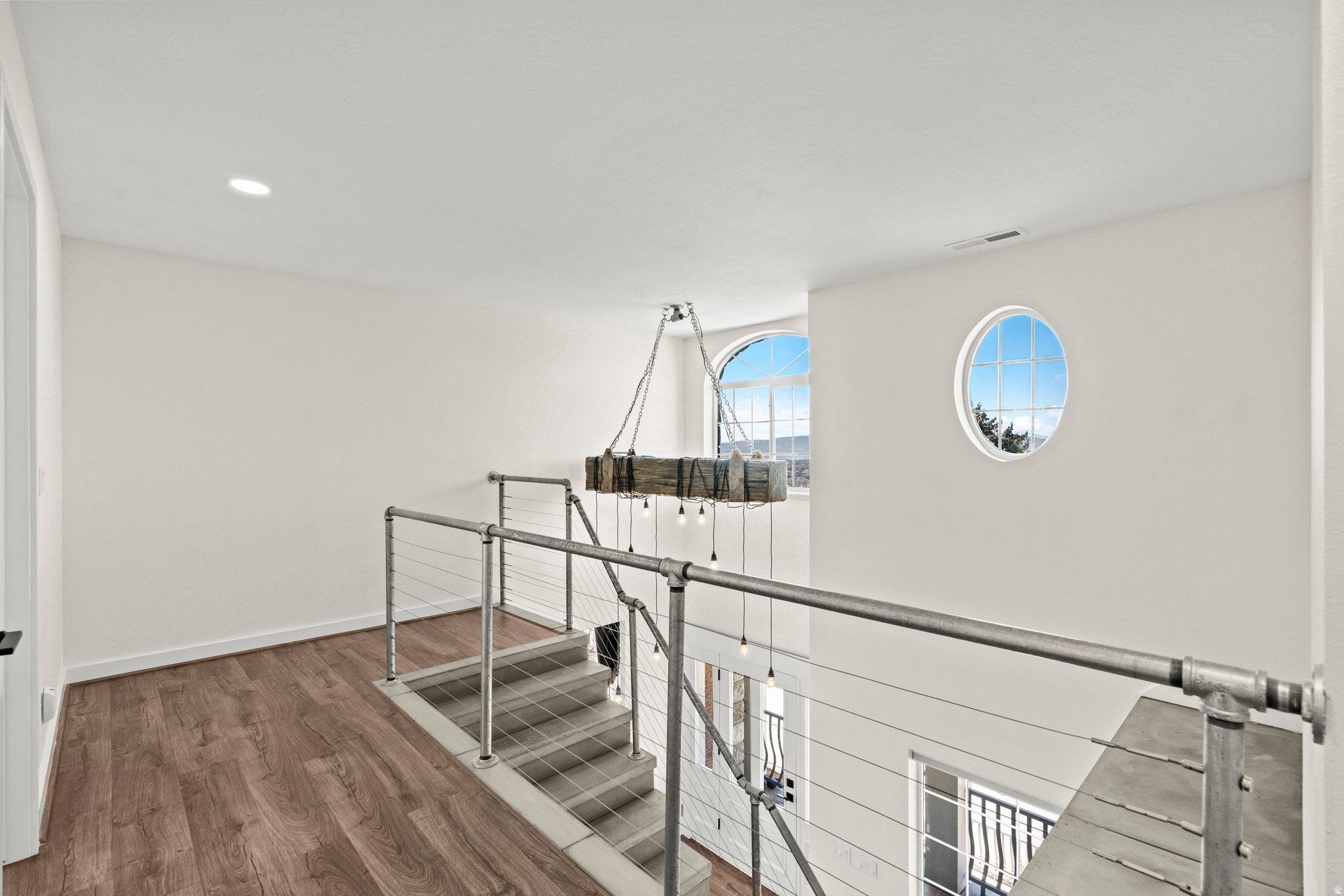 Nestled in sought-after High Forest Ranch, this luxurious ranch-style home offers breathtaking mountain views from every level, gorgeous upgrades, and wonderful amenities. Step inside and beautiful hardwood floors beckon you into the great room, featuring a vaulted, beamed ceiling, and stone indoor/outdoor fireplace.