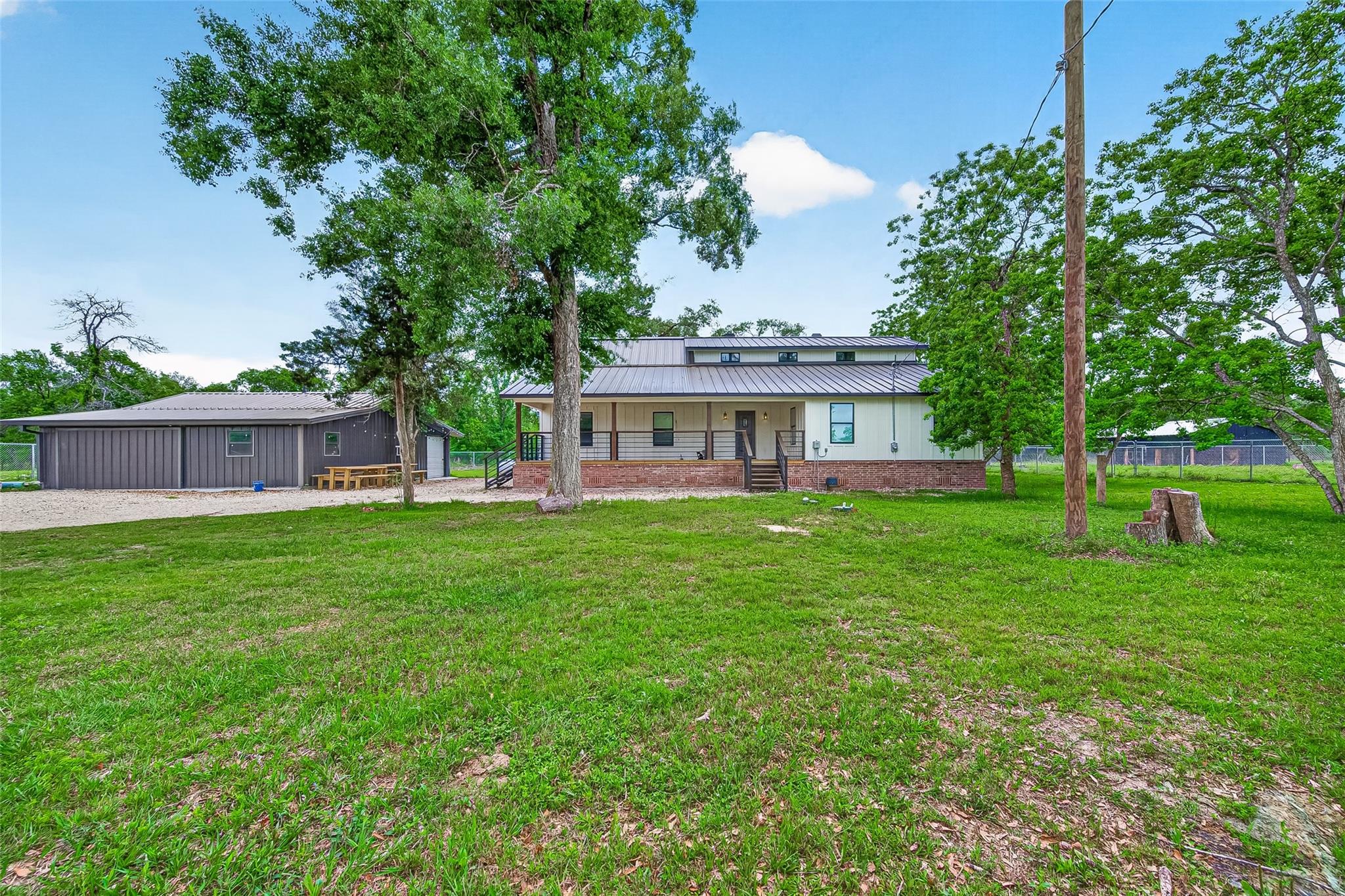 Where country meets modern living on this stunning 4.6-acre unrestricted property. The custom-built 4bed 3bath, with flex space and gameroom upstairs offers perfect character. The kitchen showcases a large island that flows seamlessly into the living and formal dining areas. Every detail reflects pride of ownership, care, and craftsmanship from the sellers.Step outside and enjoy wide open Texas living. The property includes a 30x40 barndominium, perfect for projects, hobbies, events, or additional parking, completed with a separate room for food supplies with a mini-split added. A fully functional chicken coop and covered cattle pens are already in place, with electrical service running all the way to the livestock area.The land is fully fenced and ready for use, featuring a peaceful pond that’s perfect for relaxing summer days and family enjoyment. Whether you’re looking to raise animals, entertain, or simply enjoy space and privacy, this property delivers it all.