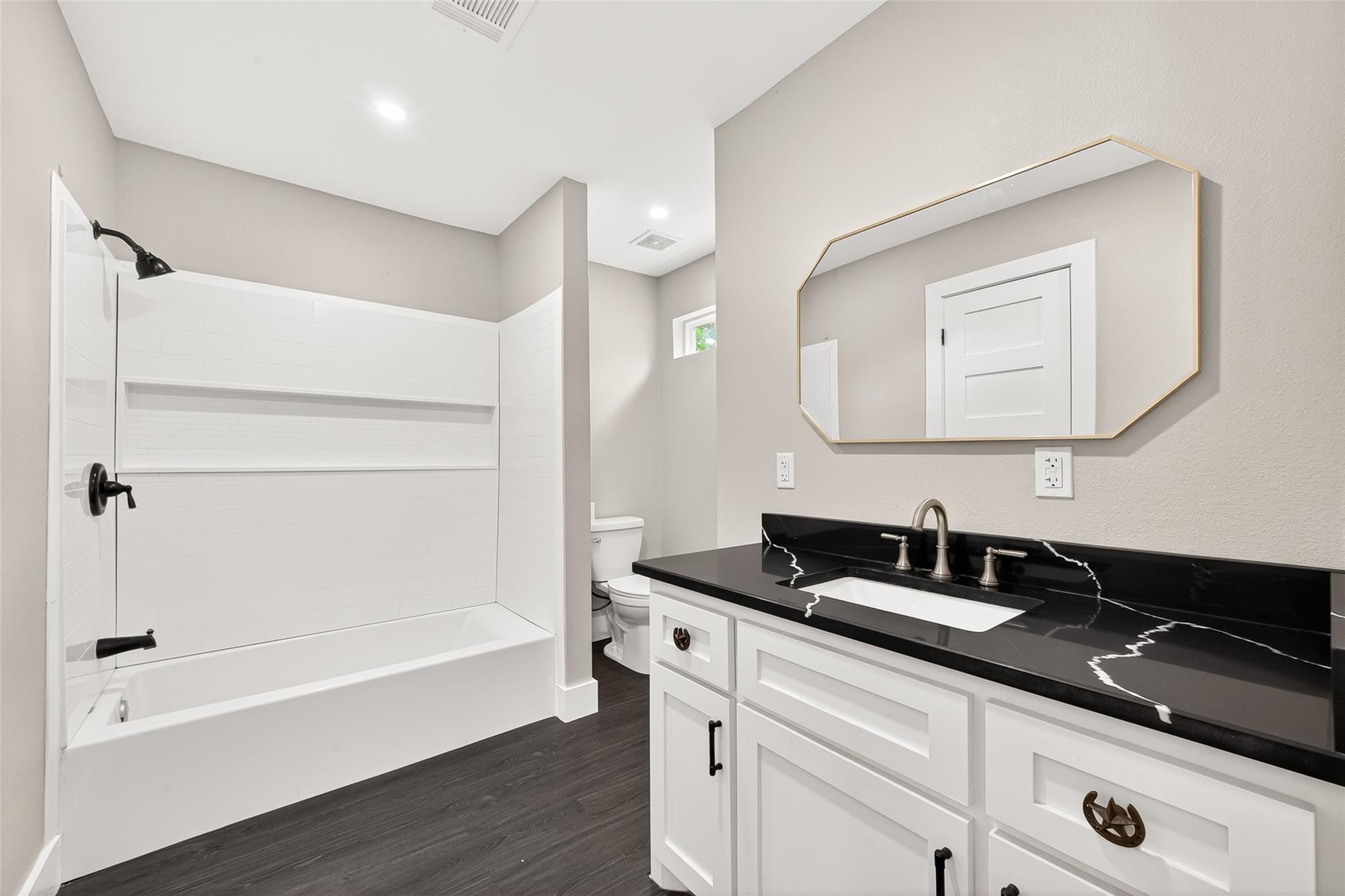 6BR/4BA Expanded Gem in Desirable Hayfield Farm. Room to Grow, Space to Breathe.Welcome to a home where expansive space and timeless charm live in perfect harmony. With 6 bedrooms and 4 full baths across over 3,000 square feet, this thoughtfully updated Hayfield Farm treasure offers the ultimate floor plan for modern living, multi-generational needs, or a growing household. The journey begins at the inviting front porch and flagstone walkway—the perfect spot for your morning coffee.Inside, gleaming hardwood floors lead you through a light-filled, open layout designed for effortless entertaining. The heart of the home seamlessly connects the dining area to a spacious family room, where you can step directly out to the large Trex deck and stamped concrete patio that can accommodate large or small indoor-outdoor gatherings. The chef’s kitchen is a true standout, featuring a 36-inch gas range with a custom stainless hood, granite countertops, and floor-to-ceiling soft-close cabinetry. Thoughtful details like full-extension drawers, innovative pantry storage, and a built-in counter “garage” with power for device storage, make this space as functional as it is stylish.The main level of this home also offers rare versatility with a private bedroom and full bath- perfect for an in-law suite or office—uniquely positioned with convenient access to the oversized one-car garage. Upstairs, a two-story addition creates an expansive primary retreat complete with a beautifully designed dressing room/closet combination. The lower level offers even more flexibility with a fully finished basement that includes a recreation room, additional bedroom, full bath, and a versatile workout room or workshop.Additional highlights include replacement windows, gutter guard system, custom shed, and retractable awning for the back deck. As an added bonus, Hayfield Pool membership conveys with the home, offering access to a fantastic community amenity. Not to mention, Hayfield Farm is accessible to two major metros and the VRE, just minutes from the all the shops, restaurants, and dining in the Kingstowne neighborhood with tons of walking trails and green space - surely a commuters dream! Also just a few miles away: Fort Belvoir, Franconia Recreation Center, Wegmans, the new Hospital that is coming in Franconia next to the already popular INOVA Healthplex!This is a rare opportunity to own a spacious, upgraded home in a sought-after neighborhood, offering a unique layout, exceptional versatility, and thoughtful design throughout.