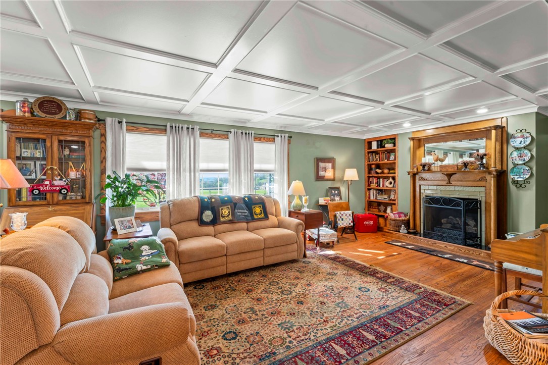 Sprawling 3 Bedroom Brick Ranch Nestled on 5 Acres Completely Redone Inside & Out! Beautiful custom craftsmanship abounds, custom entry closet & storage bench, spacious & relaxing living room featuring a coffered ceiling, fireplac