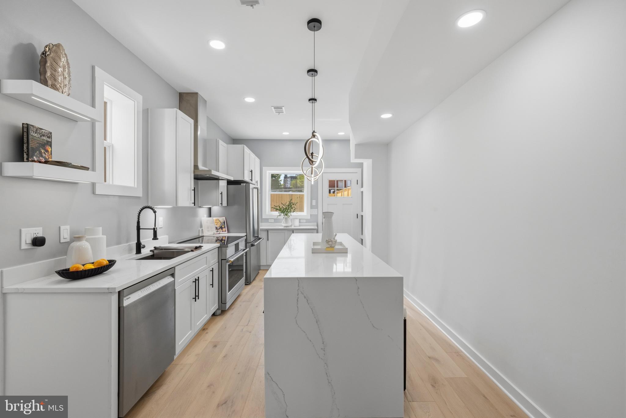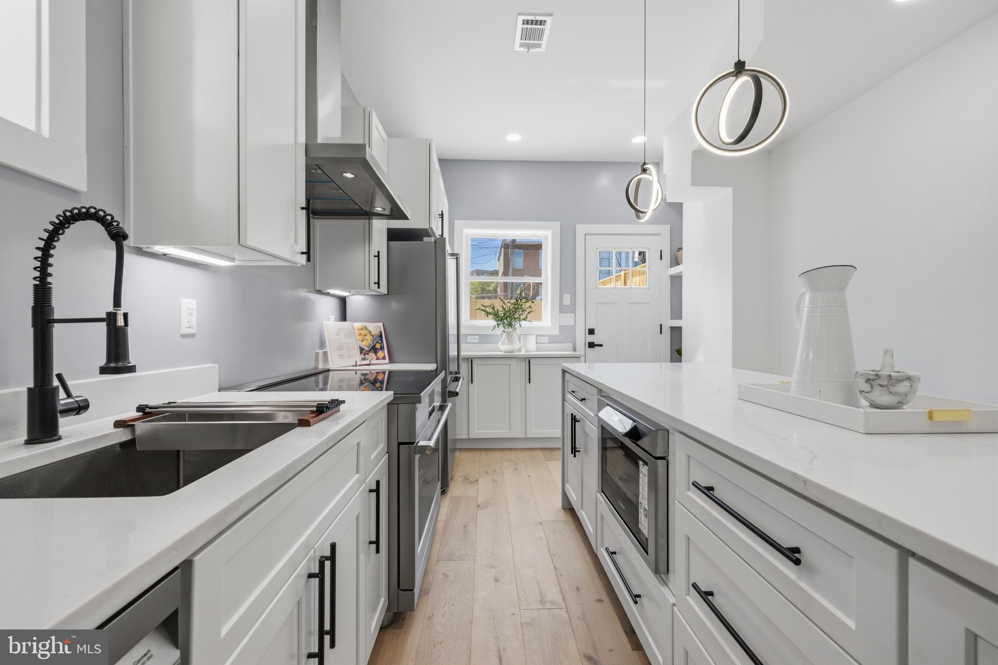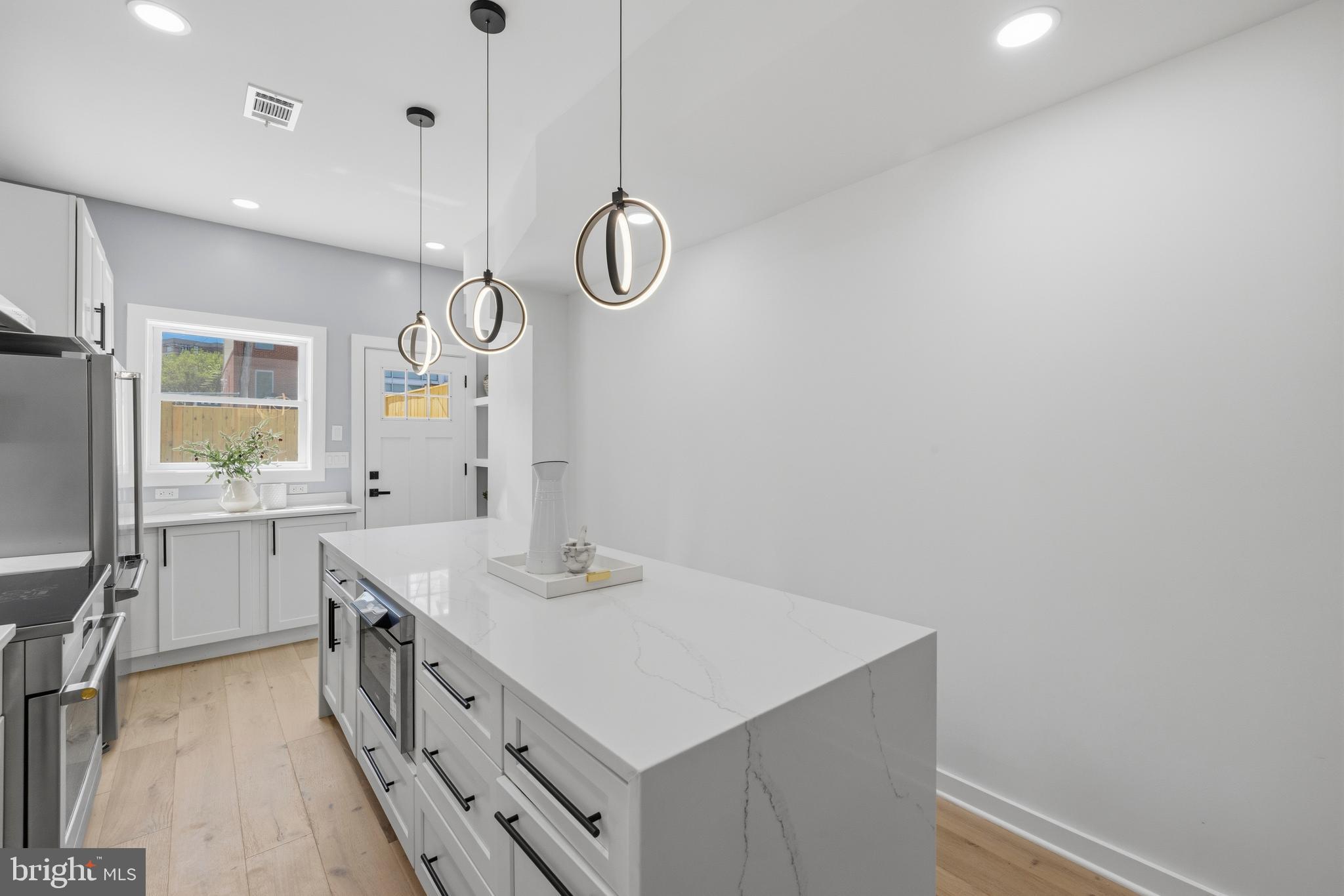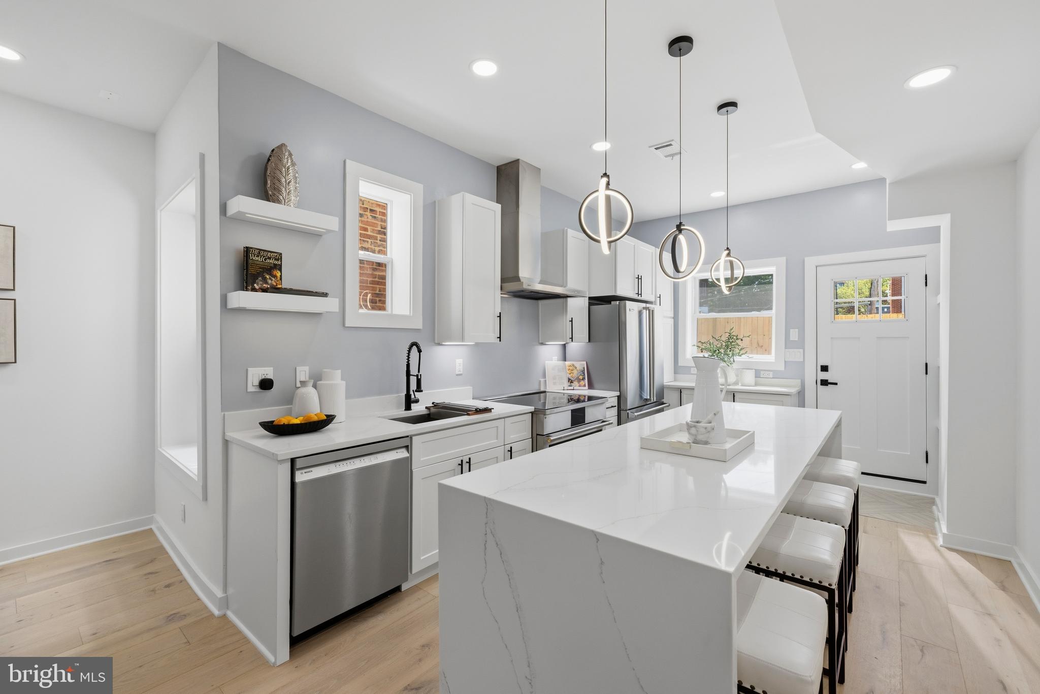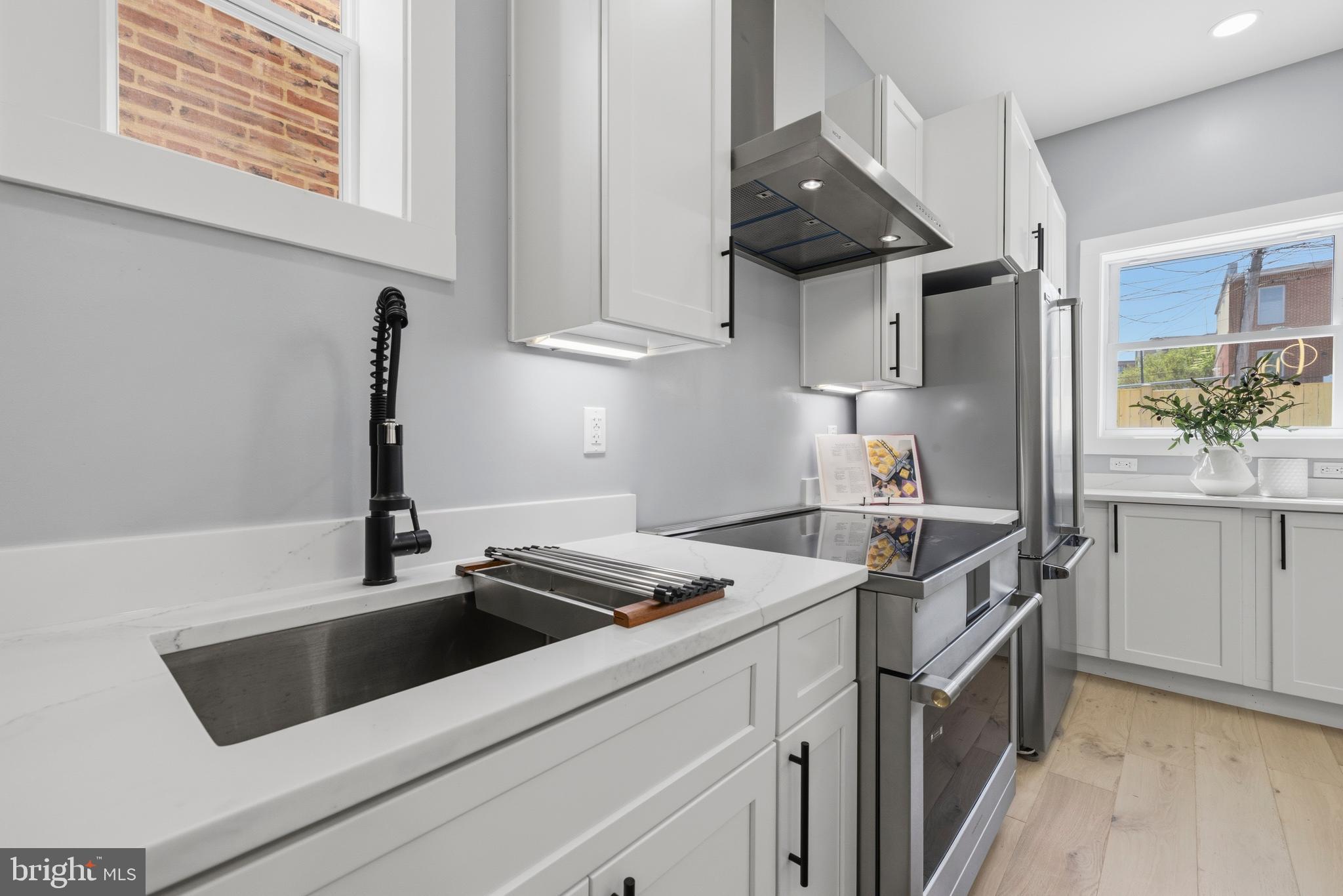 Welcome to 410 N Street NW, a beautifully reimagined three-level historic rowhome on the edge of Shaw, where timeless charm meets modern design—all within a true walk-to-everything DC lifestyle.Ideally located just minutes from the United States Capitol, the Walter E. Washington Convention Center, and the vibrant Shaw corridor, this home offers unmatched access to the heart of Washington, DC, while maintaining the comfort of a quiet residential block.Fully renovated in 2026, this home showcases quality craftsmanship and thoughtful upgrades throughout. The main level features 10-foot ceilings, abundant natural light enhanced by a skylight, and a seamless open-concept layout with exceptional flow—perfect for both everyday living and entertaining. The designer kitchen is anchored by a stunning waterfall countertop, complemented by high-end appliances and refined finishes.The upper levels feature hardwood flooring throughout, 9-foot ceilings, and a spacious primary suite with an impressive 12-foot ceiling height, creating a bright, elevated living experience. Solid wood doors, custom trim, and premium materials add warmth and durability throughout the home.Major system upgrades include a new commercial-grade roof with a 40-year warranty, 19 SEER high-efficiency HVAC, an energy-saving water heater, 100% new plumbing, and the majority of electrical wiring—providing long-term peace of mind.The fully rebuilt backyard is designed for both privacy and flexibility, featuring a 7-foot enclosed fence, reinforced posts for durability, and an 8-foot gated entry. This space offers rare potential in the city—ideal for outdoor living or future conversion into a private parking pad, with the option to add an automatic gate.The lower level provides versatile space with endless possibilities—perfect for a recreation room, guest suite, home office, or potential income-producing setup.A rare opportunity to own a thoughtfully renovated home in one of DC’s most dynamic and evolving neighborhoods—offering the perfect blend of historic character, modern upgrades, and prime location convenience.