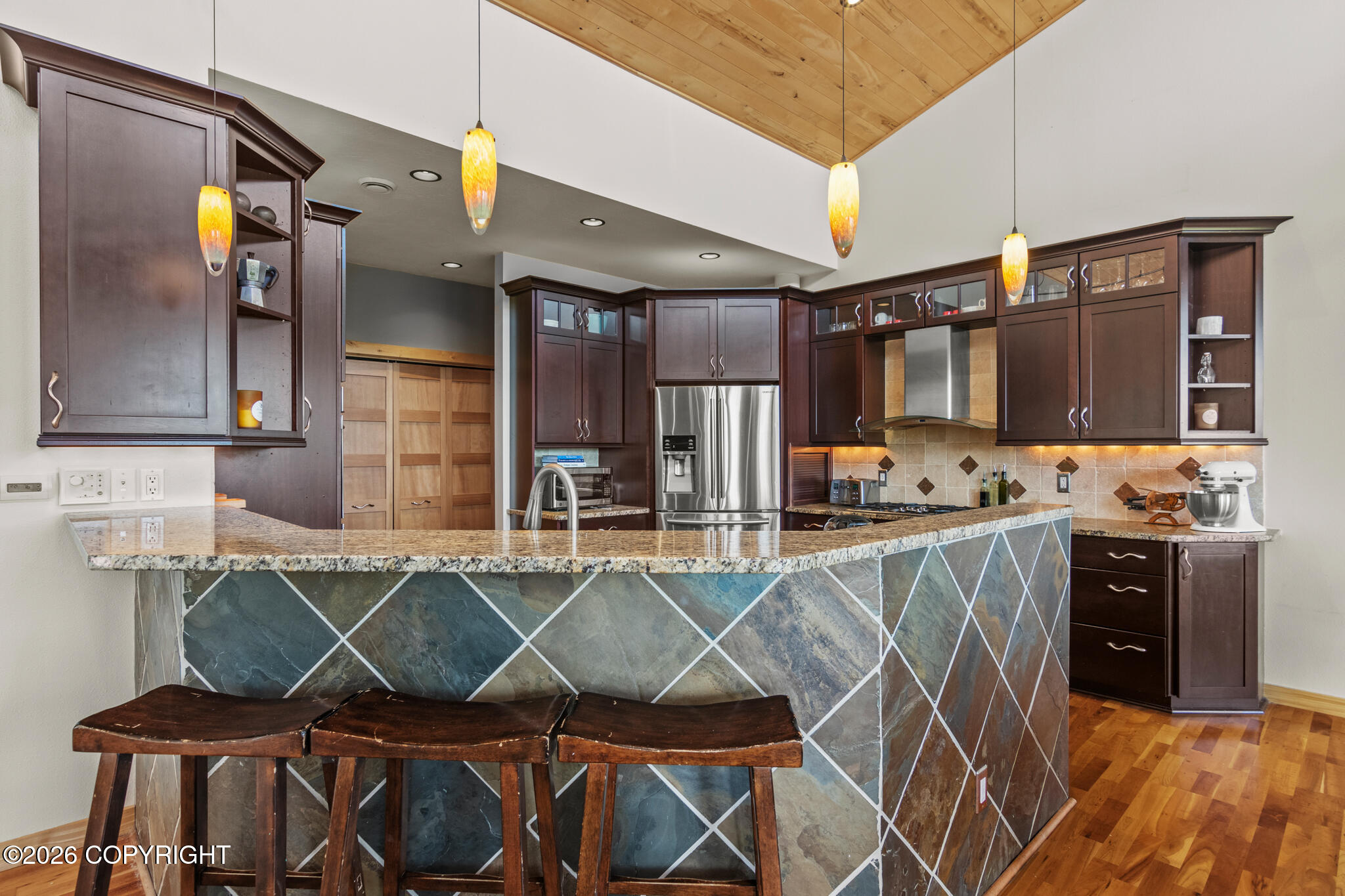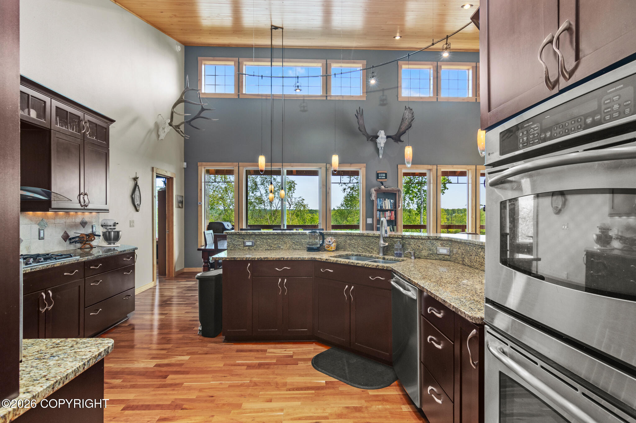 BREATHTAKING MOUNTAIN VIEWS! 3,307 sq ft 3 bed office & bonus room, 2.5 bath home w/ 2 living spaces AND a 980 sq ft garage PLUS a 1 bed cabin on 1.03 acres. Custom finishes throughout w/ solid wood floors, granite counters, radiant in-floor, 5 energy rating, custom lighting & tile work, breezeway, huge deck, hot tub, landscaping & so much more. THIS IS ALASKA LIVING AT ITS FINEST!