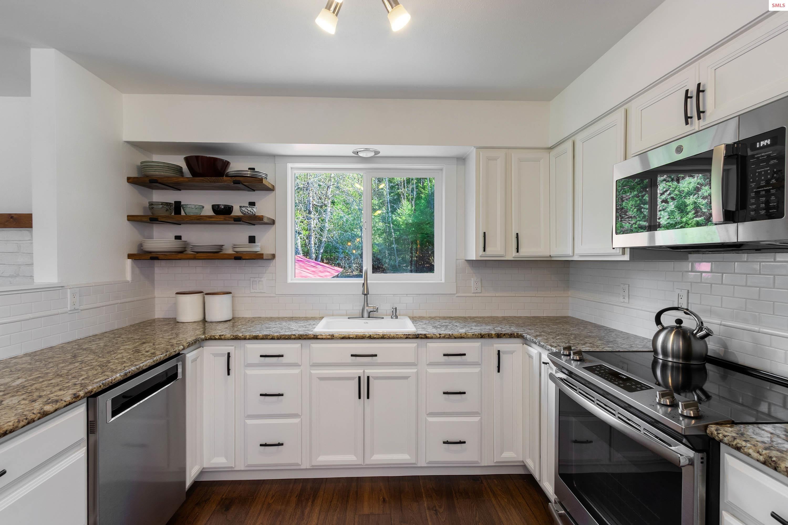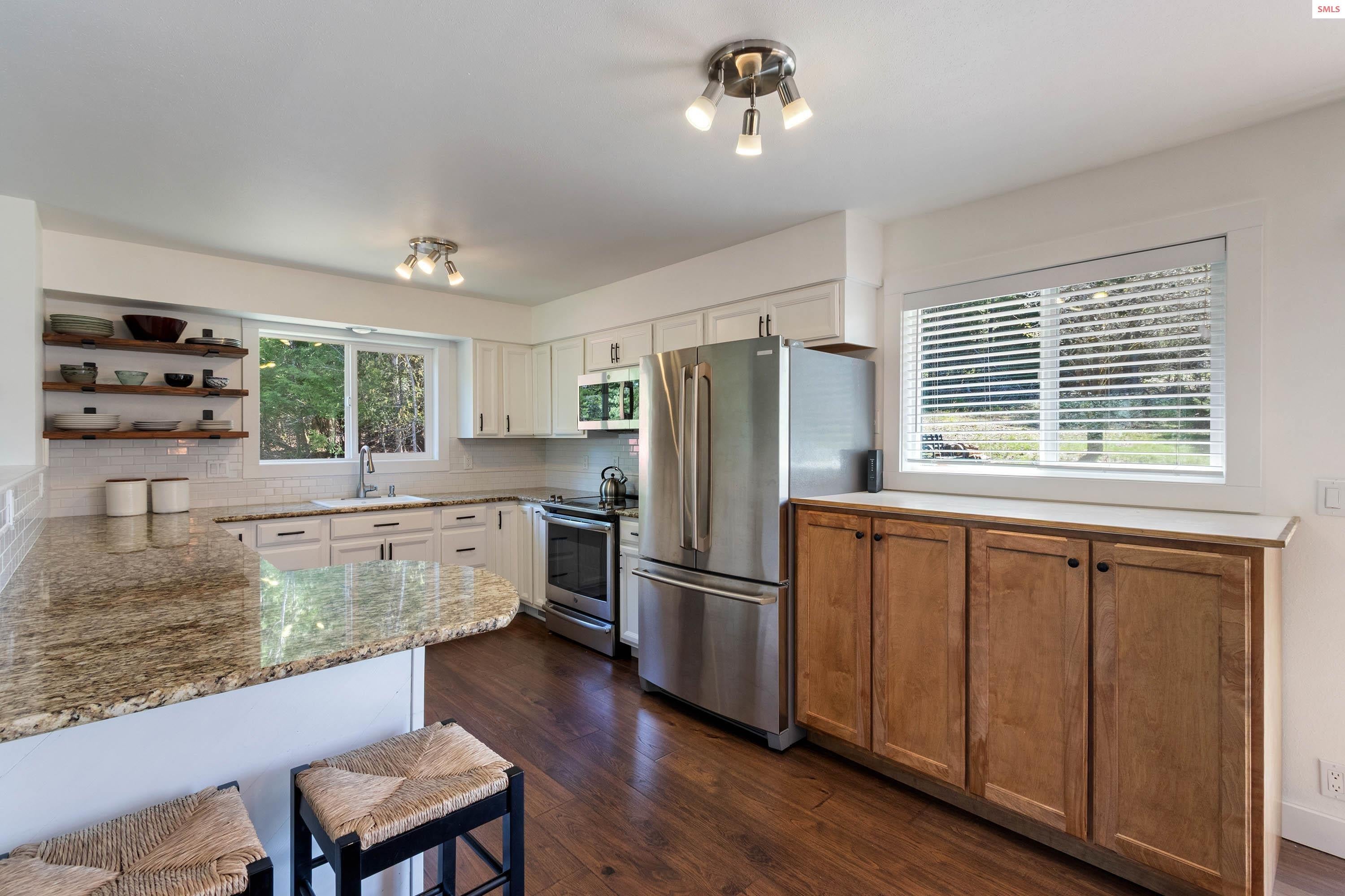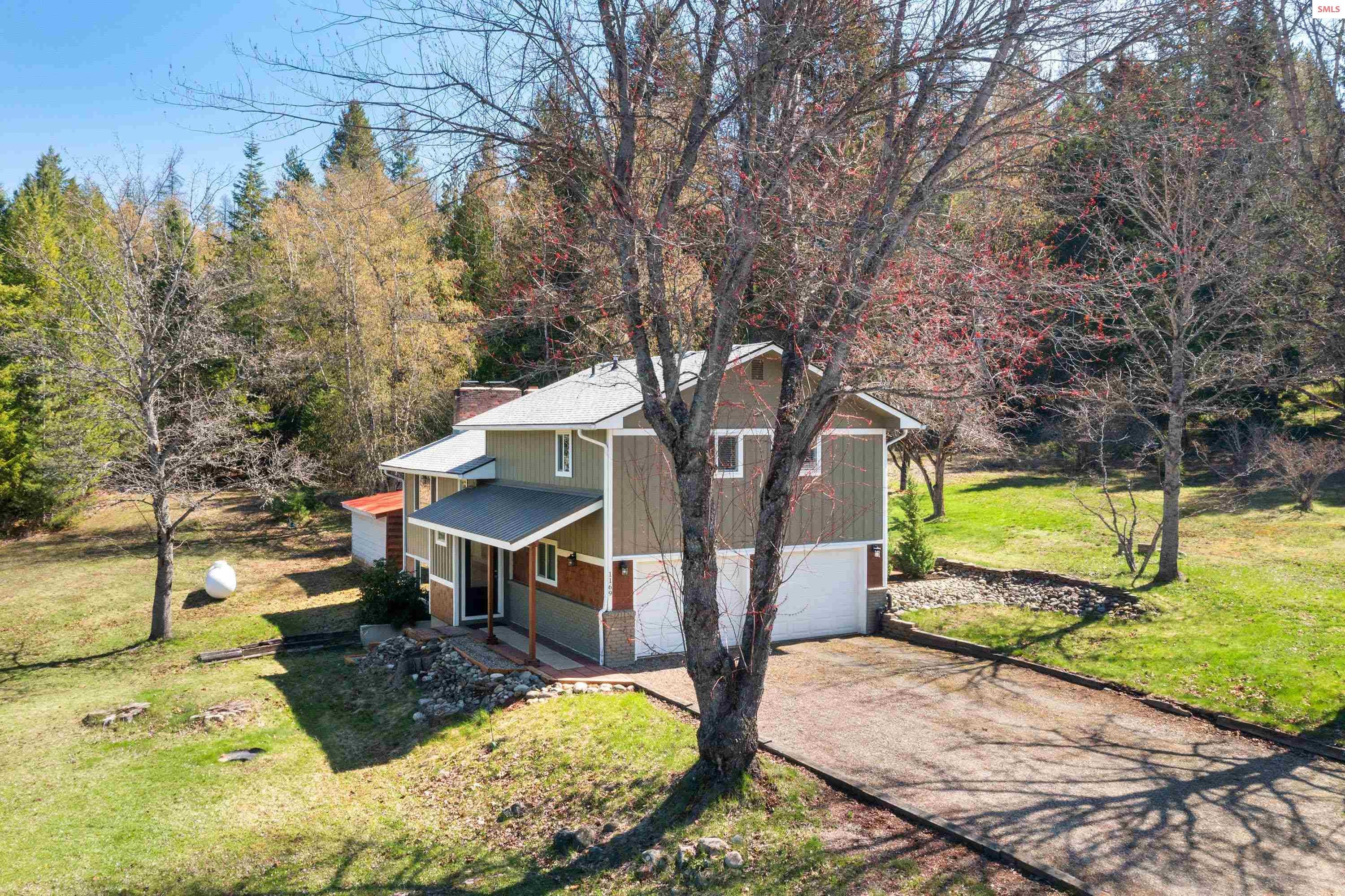Sophisticated country home, fully updated in 2020 with sunny exposure, timeless finishes and efficient systems, truly move in ready. The big, bright kitchen is a chef’s delight with abundant cabinetry, granite counters, and stainless steel appliances. The main suite features a walk in closet and a full private bath with custom tile. The daylight level offers a large flex space ideal for a bedroom, family room, or studio, plus an adjacent room perfect for storage, office or more. Indoor spaces transition easily to the outdoor patio, lawn, mature trees and a chicken coop awaiting your hens. The two-car garage has work space for projects. No CC&Rs exist to limit your enjoyment of this prime property. All this less than 10 miles from Sandpoint on county-maintained roads, giving you easy access to this beautiful setting. Shown by appointment only, please.