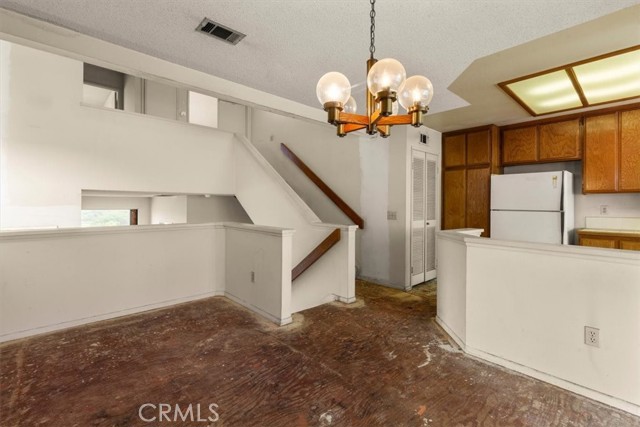 Tucked within the Whittier Greens HOA community, this split-level 2-bedroom, 2.5-bath townhome features vaulted ceilings, strong natural light, and an open living and dining area with clean flow. Main level laundry hookups support daily use. Upstairs, the primary suite offers a private layout with an en-suite bath and a full-length closet. Separation between levels improves privacy.
