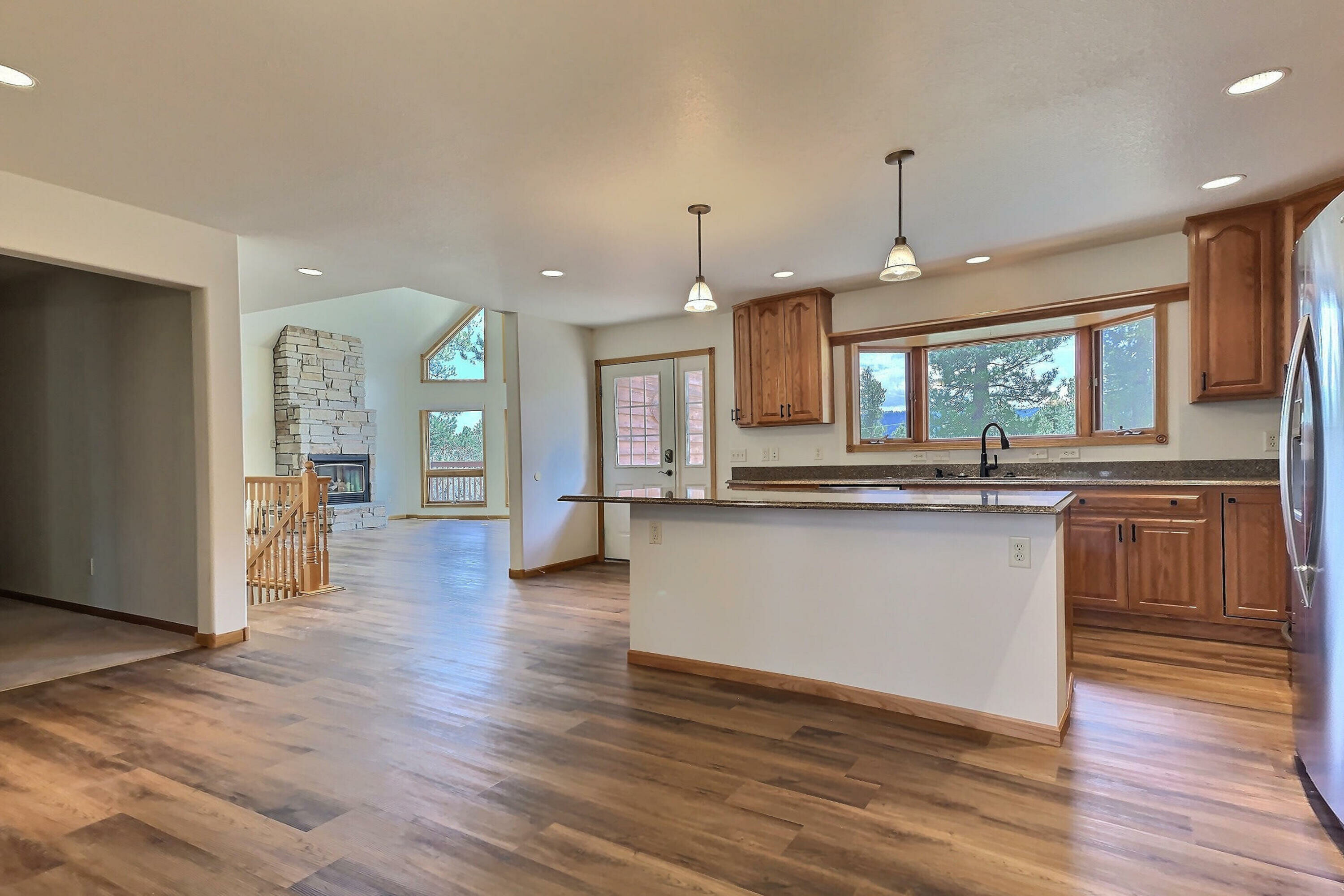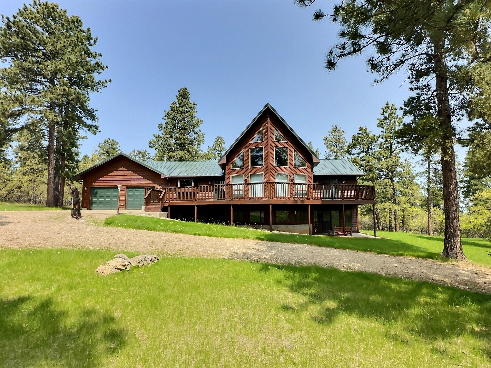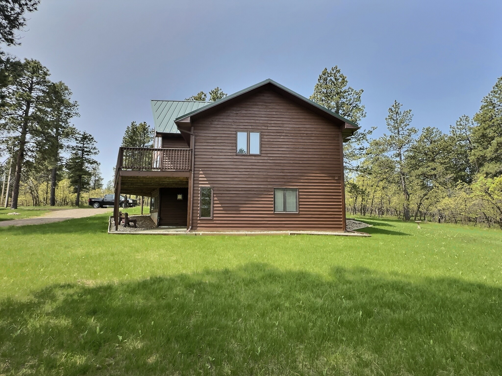 Experience peaceful Black Hills living at 2055 Aspen Hills Road, a tranquil 4-bed, 3-bath home set on 9.88 level acres of pine-covered privacy. With 3,908 sq. ft. of living space, this property offers room to relax, entertain, and enjoy the outdoors year-round. The kitchen, dining, and living areas were tastefully remodeled in 2022, featuring updated finishes, an open layout, and large windows that frame the natural surroundings. A floor-to-ceiling stone gas fireplace anchors the main living room, while the walk-out basement includes a family room, sunroom, and gas stove for cozy winter evenings.The main level offers two bedrooms, including a primary suite with walk-in closet, ensuite bath, and private deck access. Laundry is also conveniently located on the main floor. Downstairs are two additional bedrooms—one non-conforming but generously sized at 20’x24’ so a closet can easily be added. A versatile loft provides space for an office, guest area, or hobbies. The oversized 2-car garage connects directly to the kitchen which makes carrying in groceries a piece of cake - especially if youre carrying a cake. The home shares an incredible well with a 45 GPM flow rate thanks to a new pump in 2020. It is close to Iron Creek Lake and Big Hill, so you can enjoy the nearby trails, fishing, and outdoor recreation the area provides. Listed by CENTURY 21 Spearfish Realty – Mark Kazmer – Broker Associate – (605) 645-9196
