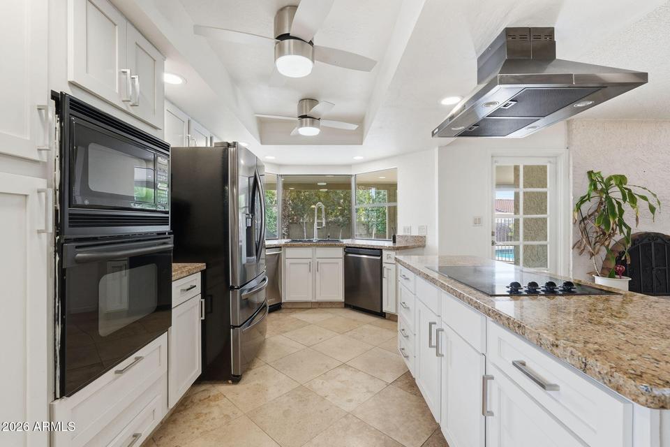 Look no further! This fabulous 4-bed, 2-bath home in Stonehaven sits on a premium lot with open space behind and beside the property. Inside, enjoy a spacious living area with neutral tile flooring, soft carpet in all the right places, recessed lighting, and sliding doors to the covered patio. The eat-in kitchen features granite countertops, abundant wood cabinetry, a pantry, and a pass-through breakfast bar. The primary suite offers natural light, a private bath with dual sinks, and a generous closet. Relax in the backyard with a covered patio and low-maintenance landscaping. Community amenities include a pool, basketball courts, playground, and walking trails. Conveniently located near Westgate Entertainment District, State Farm Stadium, and Desert Mirage Golf.