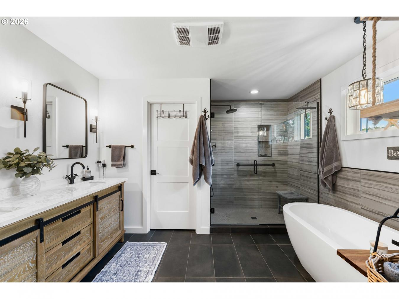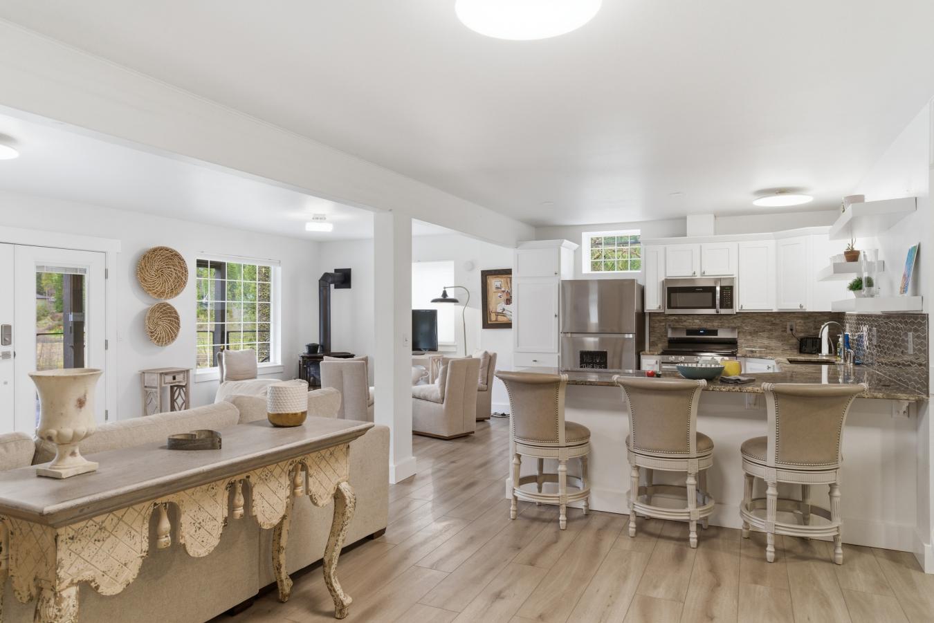 Located at 820 Jackson Ave SW in West Bandon, this exceptional property offers far more than a single residence, featuring a fully remodeled main home along with a beautifully updated guest apartment above a detached three-car garage, all just a few blocks from the beach. Set on a spacious 0.