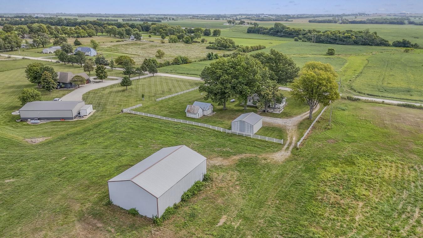 Imagine standing on your own land, scanning the horizon for miles - and then realizing youre only 10 minutes from the best suburbs in the Kansas City area. It sounds too good to be true, but this remarkable 57-acre property makes it a reality. Elevated above the surrounding countryside, this land delivers the kind of sweeping views most people only dream about. Watch the sun rise over open fields in the morning and paint the sky at dusk - a front-row seat to natures best show, every single day. The neighboring land is a patchwork of pasture, crops, and timber with little prospect for development, meaning the serenity you see today is likely the serenity youll enjoy for years to come. The property itself is a blank canvas of possibility. Open, rolling, and ready - its ideal for horses, livestock, recreation, or simply the kind of wide-open freedom that feels increasingly rare this close to a major city. Horse facilities, outbuildings, garages, sheds, and a substantial 2,400 sq ft building are already in place, giving you an incredible head start. Tucked among the trees sits a charming 2BR/2BA, 1,352 sq ft ranch home - a shady, private retreat that works equally well as your full-time residence or as a comfortable base while you design and build the custom home youve always envisioned. Live here, build there, and then keep the original home for guests, family, or future income - the options are yours to shape. And the location? It defies expectation. Within minutes you have access to Overland Parks world-class shopping, dining, and medical facilities, along with easy highway connectivity in every direction. Yet youll call peaceful Miami County home - part of the well-regarded Louisburg School District, with award-winning private school options nearby, and none of the congestion that comes with living inside Johnson County proper. The land, the views, the infrastructure, the location - its all here, waiting for the right person to call it home.