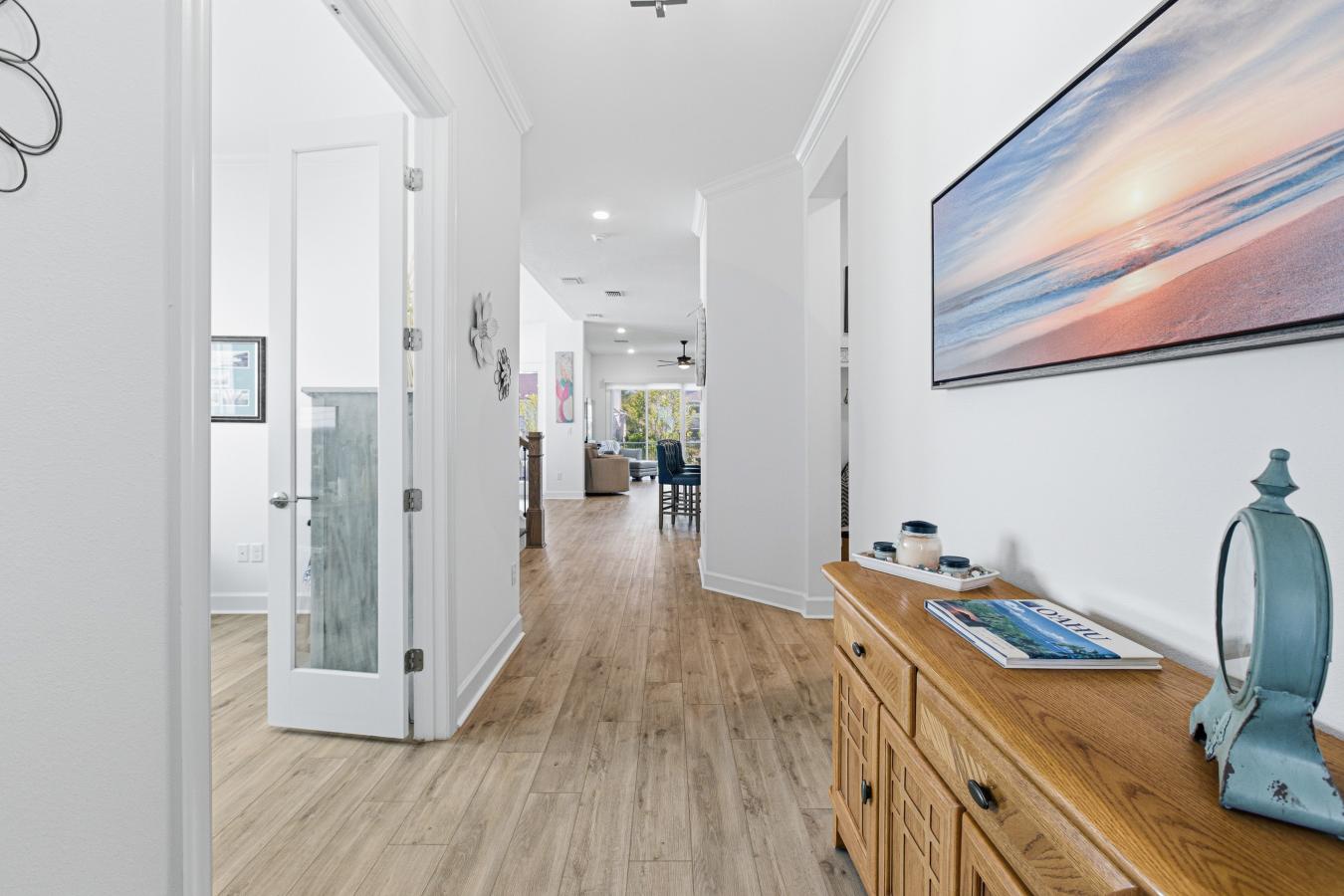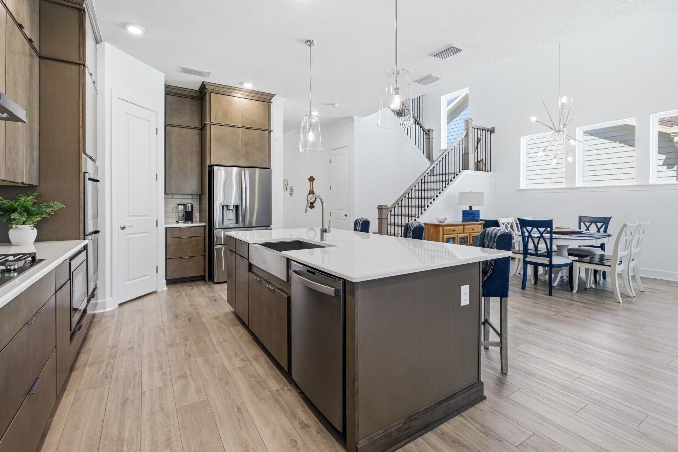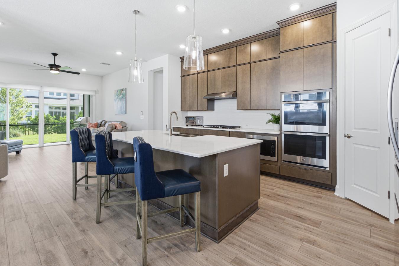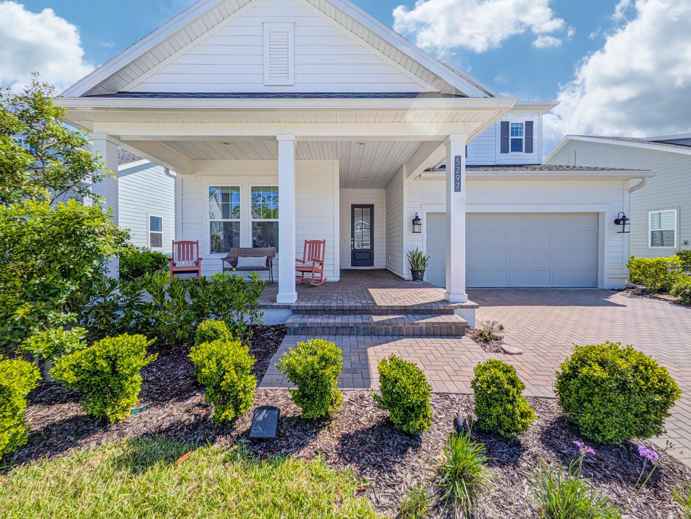 Rare opportunity at 5297 Piney Woods in the premier Seven Pines community! This stunning David Weekley Sawmill floor plan is the only immediately available home of its kind-skip the build times and move right into luxury. The primary suite is located on the first floor. The second bedroom and full bath on the main floor provide flexible, generational living or an in-law suite. This residence is loaded with high-end upgrades for comfort and peace of mind. The chefs kitchen features gas appliances and double ovens, while the living spaces are enhanced by custom closet build-outs. Experience the ultimate lifestyle on the screened patio with a gas grill station/summer kitchen. Functional upgrades include a whole-home generator, water softener, and garage storage racks. Excitingly, The Village at Seven Pines is currently under construction nearby, bringing a new Publix, boutique shopping (Pottery Barn Kids, Williams Sonoma), and dining (1928 Cuban Bistro, Ember & Iron) just minutes from your front door. New construction living-only 15 minutes from the beach! Easy Mayo Clinic access and commute via JTB. Dont wait-this turnkey home is ready now!