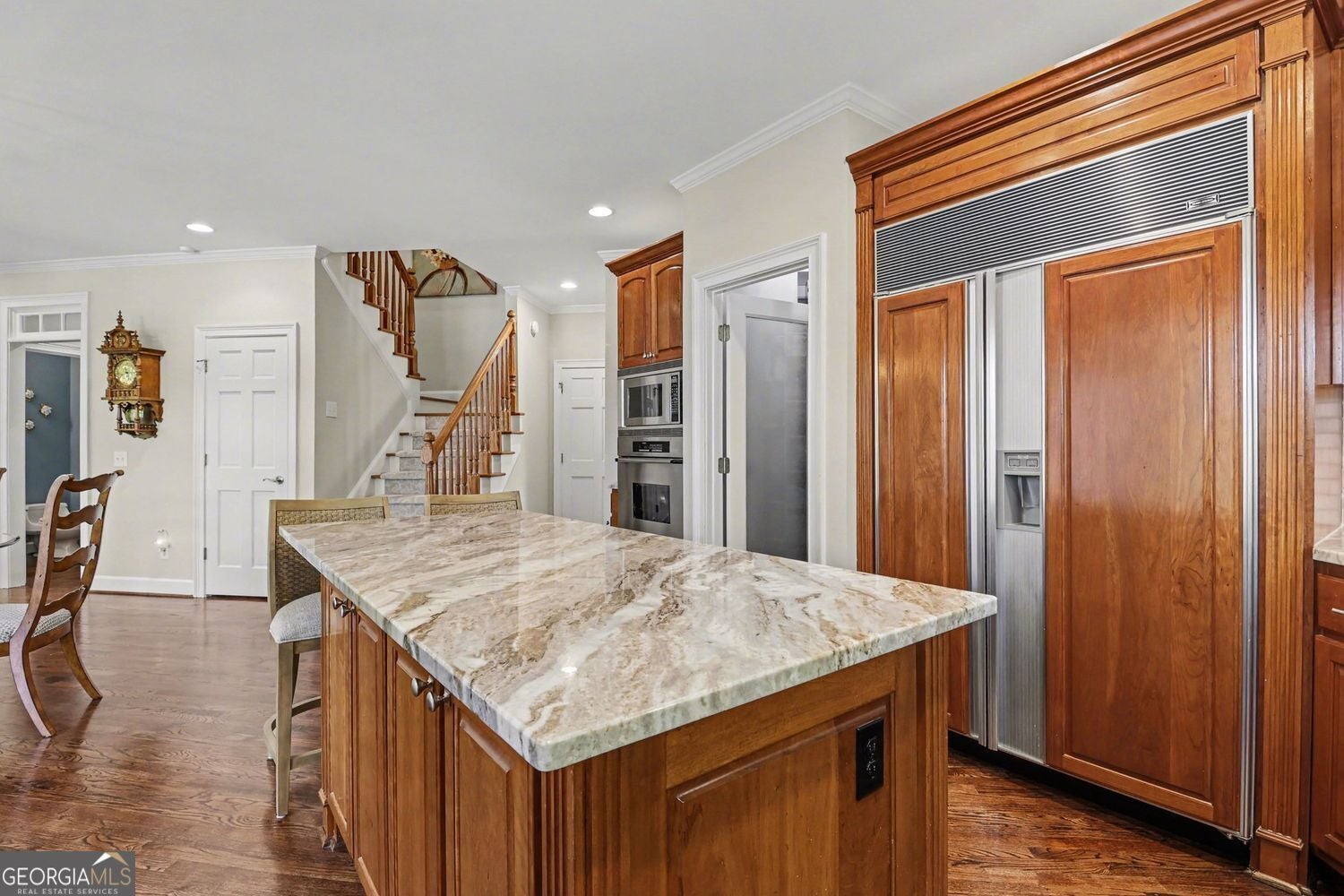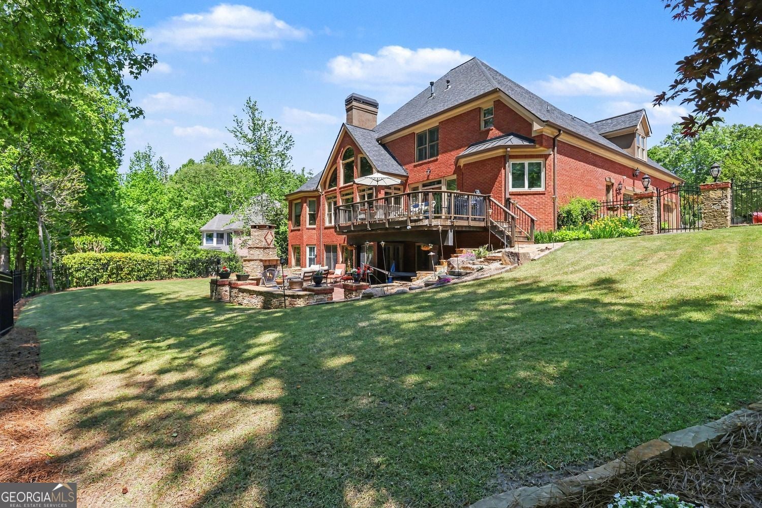 Discover timeless elegance and superior craftsmanship in this custom-built, four-bedroom, three-and-a-half-bath estate, offering over 3,000 square feet of beautifully finished living space. Perfectly situated on a quiet cul-de-sac and set on a landscaped one-acre lot, this home blends classic design with modern comfort. Built by the original owner with meticulous attention to detail, it welcomes you with a grand entrance featuring a solid mahogany front door and a marble-accented foyer with soaring 26-foot (approx.) ceilings that create an unforgettable first impression. Inside, youll find rich hardwood flooring, custom inlays, and recessed lighting throughout. The formal living room impresses with 18-foot ceilings and a natural stone fireplace set on its own foundation, while the elegant dining room is framed by French doors and highlighted by 9-foot ceilings. The gourmet kitchen is a standout with English-style, double-beaded inset cherry cabinetry, stunning Blue Azure granite countertops, Viking appliances, a Sub-Zero refrigerator, and a Bosch 800 Series dishwasher perfect for entertaining or everyday living. The 13-course basement was expertly constructed using a combination of 8-inch and 12-inch block, with the 12-inch block specifically engineered to support the weight of the homes natural brick exterior. This level offers a versatile space ideal for additional living, recreation, or storage. It also includes dual staircases one from the main level and one from the garage and a concrete-floored crawl space for added storage. The exterior of the home showcases distinctive English Bond brickwork, durable cementitious stucco, and custom details including an outdoor fireplace designed to resemble a wine bottle. A decorative brick entry leads to the fenced backyard oasis, complete with a spacious patio and a 10-foot-deep in-ground pool with a new pump. Whether youre enjoying the generous living areas, relaxing in one of the spacious bedrooms, or taking in the peaceful outdoor setting, this one-of-a-kind residence offers luxury, privacy, and thoughtful design throughout. Dont miss this rare opportunity to own a truly exceptional home in a desirable location.
