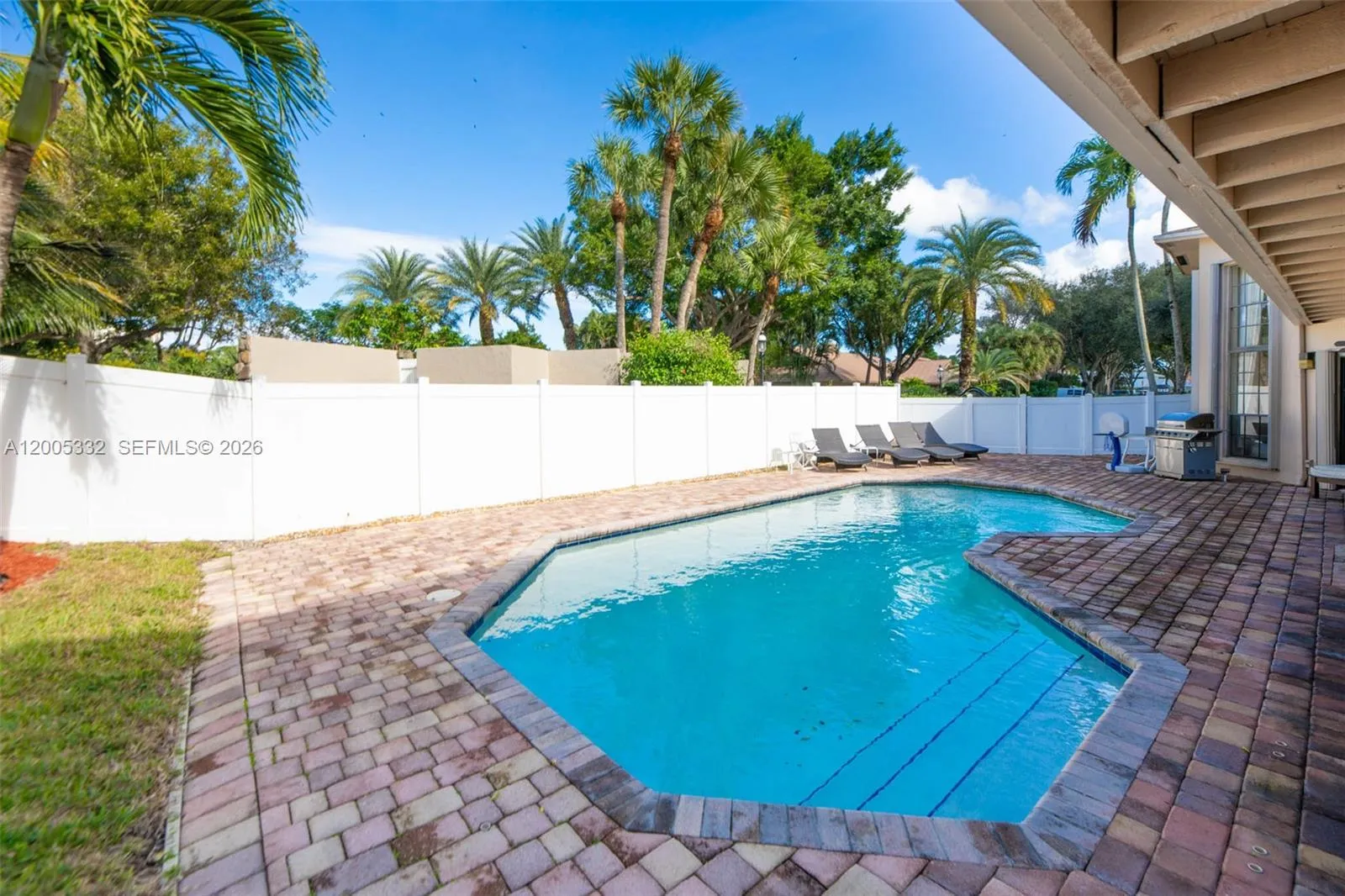 Experience elevated South Florida living in this stunning golf course home in the heart of Boca Raton. With 3,207 square feet, 4 bedrooms, and 3.5 baths, this residence blends spacious design with refined upgrades; soaring 20-foot vaulted ceilings create a dramatic first impression in the living and dining rooms, while walls of glass invite natural light throughout; the expansive 700 sq. ft. primary suite offers serene golf course views - your own private escape at the end of the day; step outside to a beautifully updated pool featuring Diamond Brite resurfacing and new tile (2021), perfect for entertaining or relaxing in total privacy, enhanced by a new hurricane-rated fence (2019); additional highlights include: complete hurricane protection, solid wood cabinetry in kitchen and baths, new roof (2018), exquisite gated community with low HOA, 5 minute drive to Town Center Mall and Sugar Sand Park, easy access to I-95, walking distance to houses of worship; a rare opportunity to own a golf course property with major upgrades already completed. Showings to begin at Open House on Sunday (4/26) from 11:00 a.m. to 2:00 p.m.