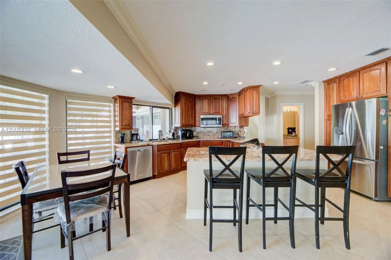 Experience elevated South Florida living in this stunning golf course home in the heart of Boca Raton. With 3,207 square feet, 4 bedrooms, and 3.5 baths, this residence blends spacious design with refined upgrades; soaring 20-foot vaulted ceilings create a dramatic first impression in the living and dining rooms, while walls of glass invite natural light throughout; the expansive 700 sq. ft.