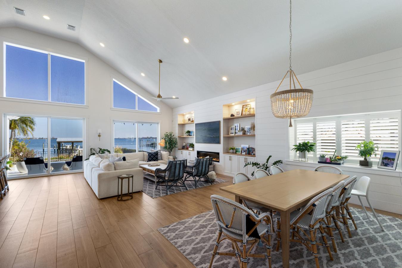 A MASTERPIECE OF MODERN COASTAL LUXURY SET DIRECTLY ON THE MANATEE RIVER AND JUST MINUTES FROM IMG ACADEMY! This extraordinary 5 bedroom, 4.5 bathroom waterfront estate offers over 6,000 square feet of impeccably curated living space, blending timeless architecture with refined coastal elegance and your own private WHITE SANDY BEACH!!! Completely reimagined with the highest level of finishes (designer furnishings available for purchase separately) this residence delivers a seamless transition into an elevated waterfront lifestyle defined by comfort, sophistication, and design. From the moment you arrive, the homes striking curb appeal, lush tropical landscaping, and clean architectural lines create an unforgettable first impression. Inside, soaring vaulted ceilings and dramatic walls of glass frame breathtaking panoramic water views while filling the home with natural light. Intricate custom moldings, shiplap accents in the great room, and designer finishes throughout add warmth and architectural character. The main living space is both grand and inviting, centered around a sleek linear fireplace and custom built-ins. The gourmet kitchen is a true showpiece featuring double islands, quartz countertops, custom cabinetry, double ovens, and professional grade appliances. A spacious breakfast bar with statement pendant lighting and elegant gold accents creates the perfect setting for entertaining. The primary suite is privately positioned on the main level and a spa inspired bath offering dual vanities, a soaking tub, and a walk in shower. The first floor also includes an additional bedroom with en suite bath, a dedicated office, and a fully equipped wellness retreat featuring a gym with Tonal and Peloton, infrared sauna, and a cold plunge in the courtyard. Upstairs offers three additional bedrooms, two beautifully appointed bathrooms, and an expansive bonus room overlooking the main living area and capturing elevated river views. The outdoor living experience rivals a private resort. Expansive terraces, multiple lounging areas, and a stunning pool overlooking the open water create a setting designed for both relaxation and entertaining. A covered outdoor kitchen and dining space seamlessly extend the living area, allowing for effortless year round indoor outdoor living. The brand new dock is equally impressive, featuring Trex decking, a brand new 13,000 lb boat lift, fish cleaning station, firepit, and a covered seating area. With NO BRIDGES, DEEP WATER and DIRECT ACCESS to the Gulf, this is a true boaters paradise! Conveniently located just minutes from downtown Bradenton, this estate is near top-tier schools, including IMG ACADEMY, ST STEPHENS AND BRADENTON CHRISTIAN SCHOOL! Only minutes to the Gulf Beaches of Anna Maria Island, short distance to downtown St. Pete and the cultural & culinary arts of Sarasota. TRULY AN AMAZING LOCATION WITH EASY ACCESS TO SO MANY OPTIONS!