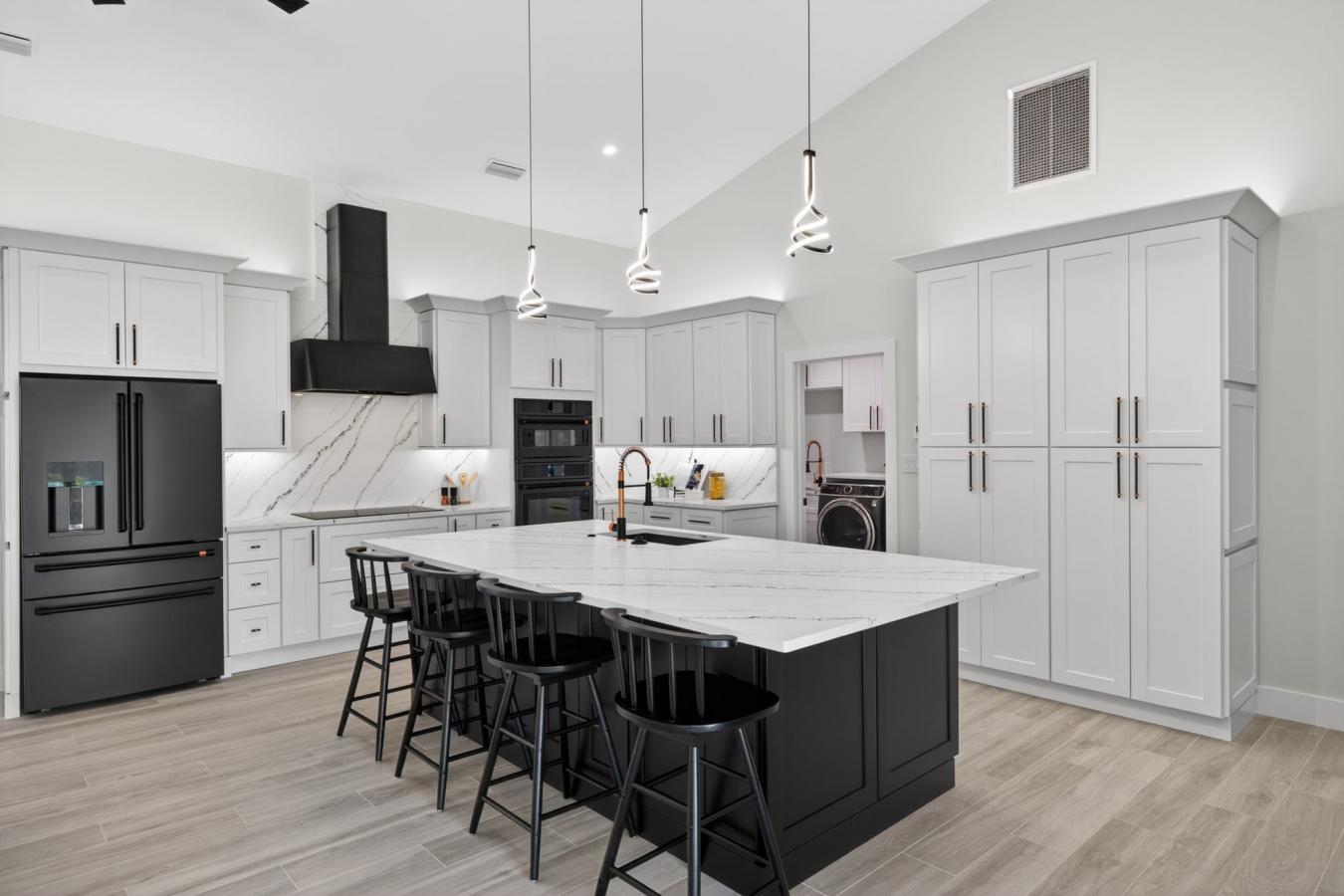 Welcome to your fully reimagined waterfront retreat-where modern luxury meets income-producing potential. This 4-bedroom plus a den, 4-bathroom home has been completely renovated down to the studs, offering the style, efficiency, and peace of mind of new construction in one of Cape Corals most desirable neighborhoods. Tucked away on a quiet, palm tree-lined street, this property features deep water, direct sailboat Gulf access with just a 15-minute ride to open water-a rare and highly sought-after combination for both boaters and vacation renters. Quick drive or boat ride to Cape Harbour, Tarpon Point, Fort Myers Beach, Sanibel, Captiva, and surrounding islands. Inside, the home showcases high-end luxury finishes throughout, including a designer kitchen with black stainless GE Caf appliances and premium quartz countertops, all flowing seamlessly into open-concept living spaces designed for both everyday living and effortless entertaining. The true showstopper is the seamless indoor-outdoor living experience. Four stunning pocketing sliders fully open to the lanai, creating an expansive, airy flow that defines the Florida lifestyle. The lanai is enhanced by a picture window screen enclosure, offering unobstructed water views, along with a premium travertine pool deck and a beautifully finished tongue-and-groove, weatherproof stained wood ceiling, adding warmth and architectural detail to your outdoor living space. Step outside to your private tropical oasis featuring a completely renovated pool with all-new equipment, perfect for relaxing or hosting guests year-round. Beyond the beauty, this home delivers exceptional value with a fully permitted and inspected renovation, including all-new plumbing, electrical, HVAC, and spray foam insulation for maximum energy efficiency. The home is outfitted with PGT impact windows, doors, and sliders, providing superior storm protection and potential insurance savings. With 4 bedrooms (2 en-suite) and 4 full bathrooms and a den that could function as a fifth bedroom, this property is ideally suited for high-performing Airbnb or seasonal rental use, comfortably accommodating larger groups and maximizing income potential in a premier waterfront location. All work has been professionally completed, permitted, and inspected by a licensed Florida contractor, offering total confidence in quality and craftsmanship. Whether youre searching for a luxury primary residence, seasonal escape, or income-producing waterfront investment, this is a rare opportunity to own a like-new Gulf access home that truly has it all.