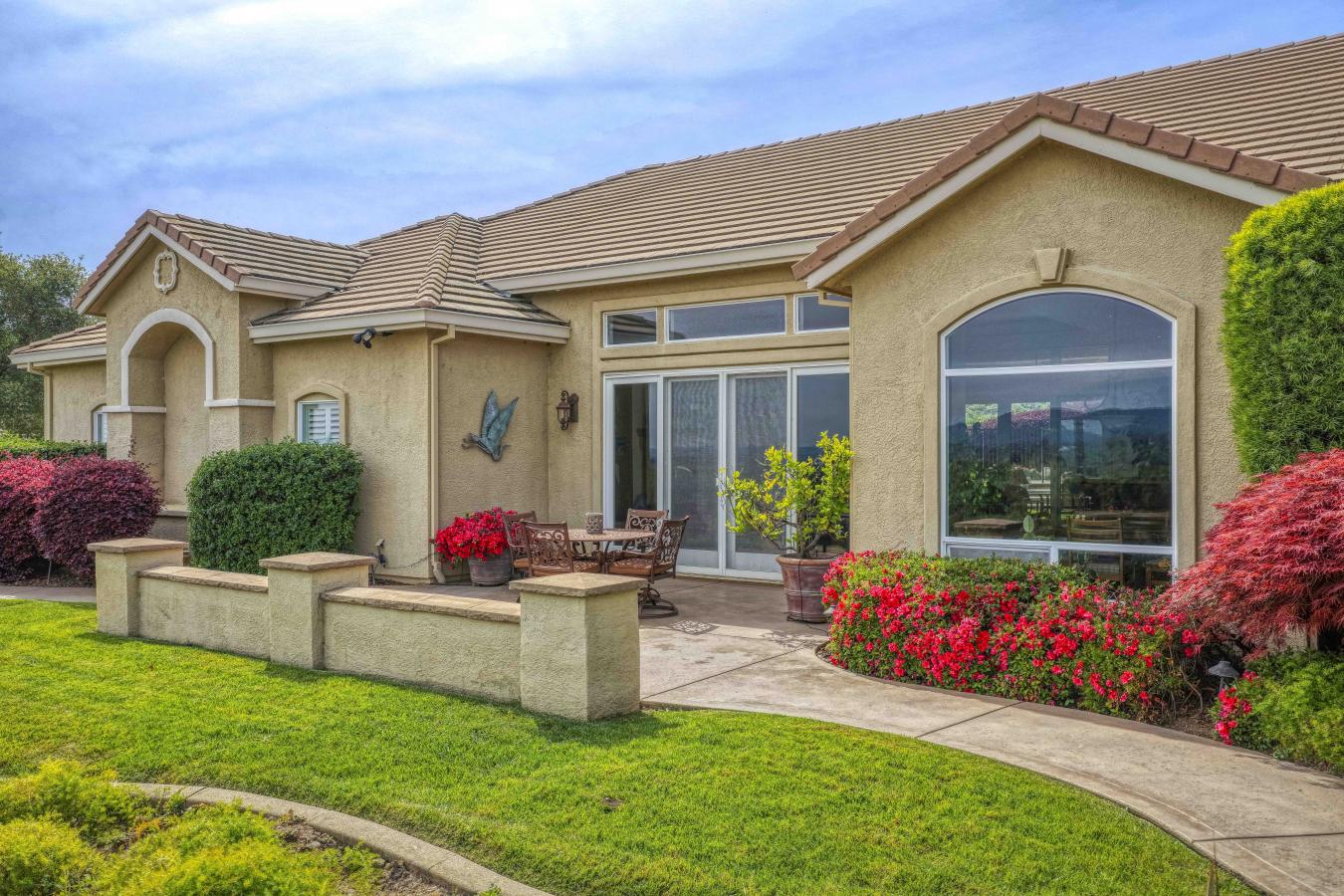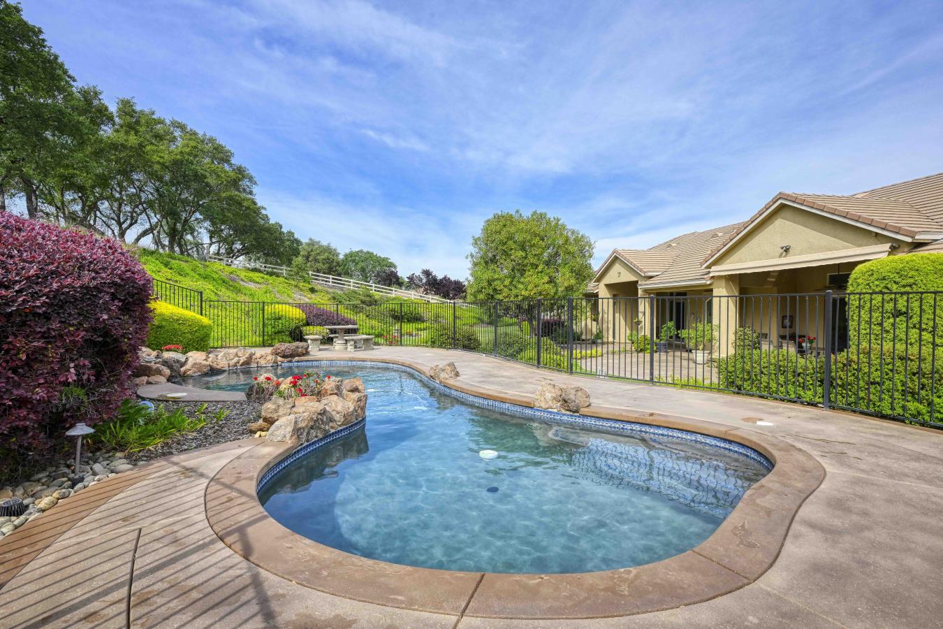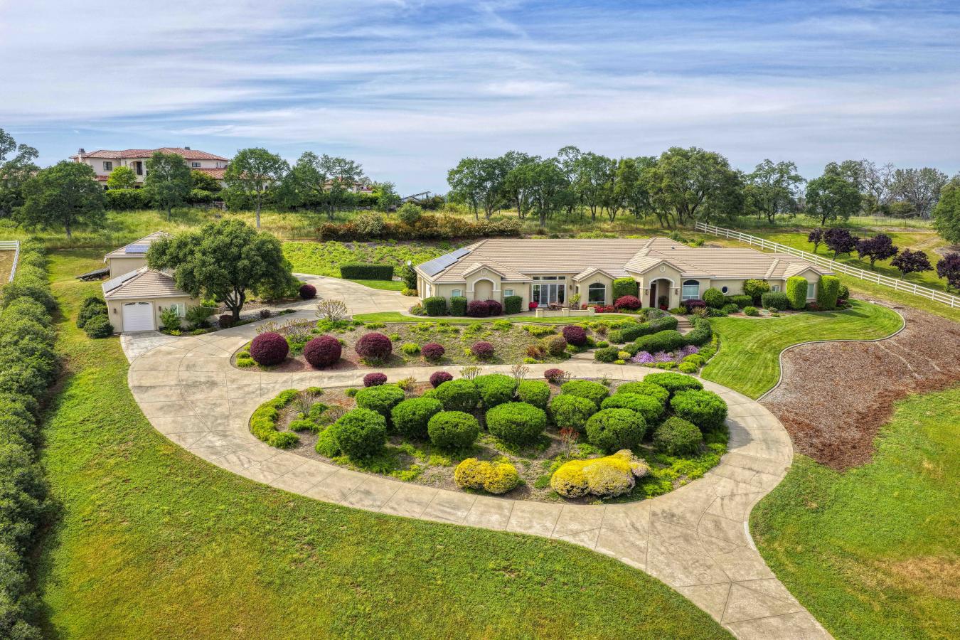 Set on 4.6 picturesque acres in the heart of Loomis, this exceptional custom single-story estate is offered for sale for the very first time. Thoughtfully positioned on a gentle slope to capture breathtaking, panoramic views, the home offers a rare sense of privacy with "forever" vistas across the Loomis Basin. Spanning over approximately 4,200 square feet, the residence is designed for both refined living and effortless entertaining. The expansive great room is anchored by a stunning fireplace, flanked by custom built-in bookcases, and flows seamlessly into a spacious, chef-inspired kitchen featuring a 4-burner Viking range, built-in refrigerator, large center island, and walk-in pantry. A charming breakfast nook with built-in shelving is surrounded by windows that perfectly frame the sweeping views. A temperature-controlled wine room with capacity for 1,200 bottles further elevates the homes entertaining appeal. Outdoors, a built-in pool offers the perfect setting for both relaxation and gathering, surrounded by beautifully manicured grounds that enhance the estates natural beauty. The property also features a mature 300-vine vineyard that contributed to the success of Loomis Vista Vineyards, a boutique label recognized for producing award-winning wines. Each bedroom is generously sized and includes its own ensuite bathroom, offering comfort and privacy for family and guests alike. A dedicated office with custom built-in cabinetry provides an ideal work-from-home environment, while the laundry/utility room is complemented by a versatile craft space. Recent upgrades include a one-year-new HVAC system and two-year-new appliances, ensuring modern efficiency and peace of mind. Additional amenities include owned solar, electric sun shades, and a retractable awning, enhancing the homes seamless indoor-outdoor living experience. The property includes a 3-car attached garage with built-in cabinetry, as well as an additional 2 detached garages, offering exceptional flexibility for storage, hobbies, or car enthusiasts. With 3 bedrooms, 3 full bathrooms, and 2 half baths, this thoughtfully designed 2002-built residence embodies the essence of Loomis luxury living-where space, serenity, and timeless sophistication converge.