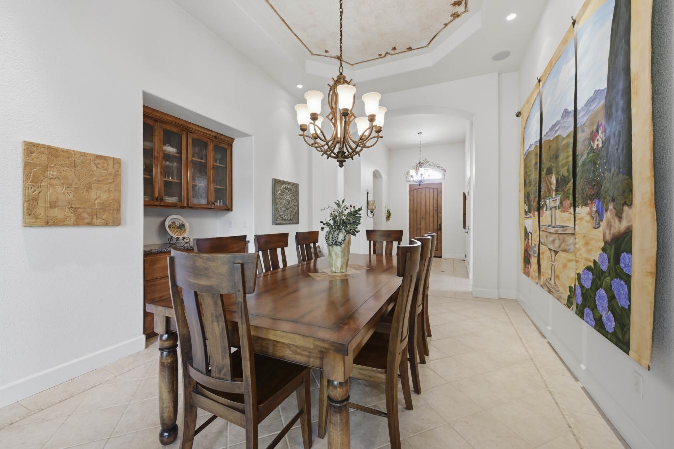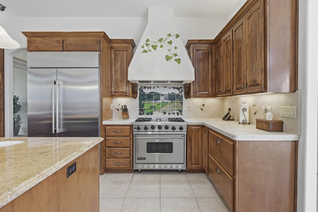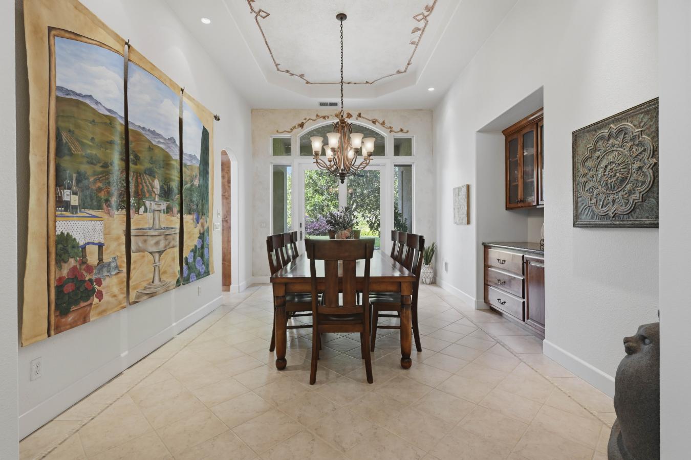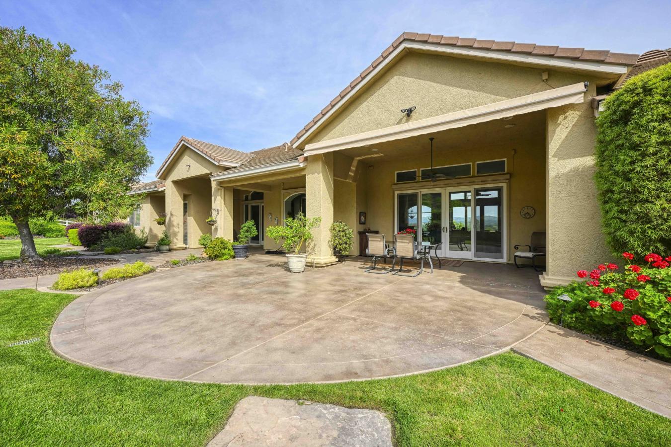 Set on 4.6 picturesque acres in the heart of Loomis, this exceptional custom single-story estate is offered for sale for the very first time. Thoughtfully positioned on a gentle slope to capture breathtaking, panoramic views, the home offers a rare sense of privacy with "forever" vistas across the Loomis Basin. Spanning over approximately 4,200 square feet, the residence is designed for both refined living and effortless entertaining. The expansive great room is anchored by a stunning fireplace, flanked by custom built-in bookcases, and flows seamlessly into a spacious, chef-inspired kitchen featuring a 4-burner Viking range, built-in refrigerator, large center island, and walk-in pantry. A charming breakfast nook with built-in shelving is surrounded by windows that perfectly frame the sweeping views. A temperature-controlled wine room with capacity for 1,200 bottles further elevates the homes entertaining appeal. Outdoors, a built-in pool offers the perfect setting for both relaxation and gathering, surrounded by beautifully manicured grounds that enhance the estates natural beauty. The property also features a mature 300-vine vineyard that contributed to the success of Loomis Vista Vineyards, a boutique label recognized for producing award-winning wines. Each bedroom is generously sized and includes its own ensuite bathroom, offering comfort and privacy for family and guests alike. A dedicated office with custom built-in cabinetry provides an ideal work-from-home environment, while the laundry/utility room is complemented by a versatile craft space. Recent upgrades include a one-year-new HVAC system and two-year-new appliances, ensuring modern efficiency and peace of mind. Additional amenities include owned solar, electric sun shades, and a retractable awning, enhancing the homes seamless indoor-outdoor living experience. The property includes a 3-car attached garage with built-in cabinetry, as well as an additional 2 detached garages, offering exceptional flexibility for storage, hobbies, or car enthusiasts. With 3 bedrooms, 3 full bathrooms, and 2 half baths, this thoughtfully designed 2002-built residence embodies the essence of Loomis luxury living-where space, serenity, and timeless sophistication converge.