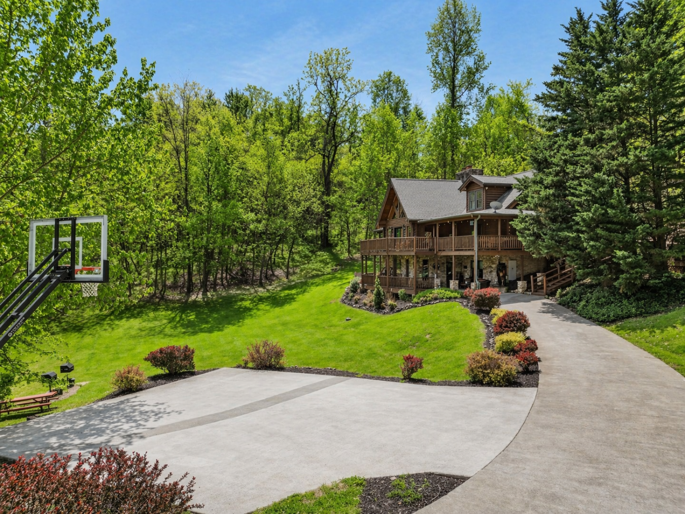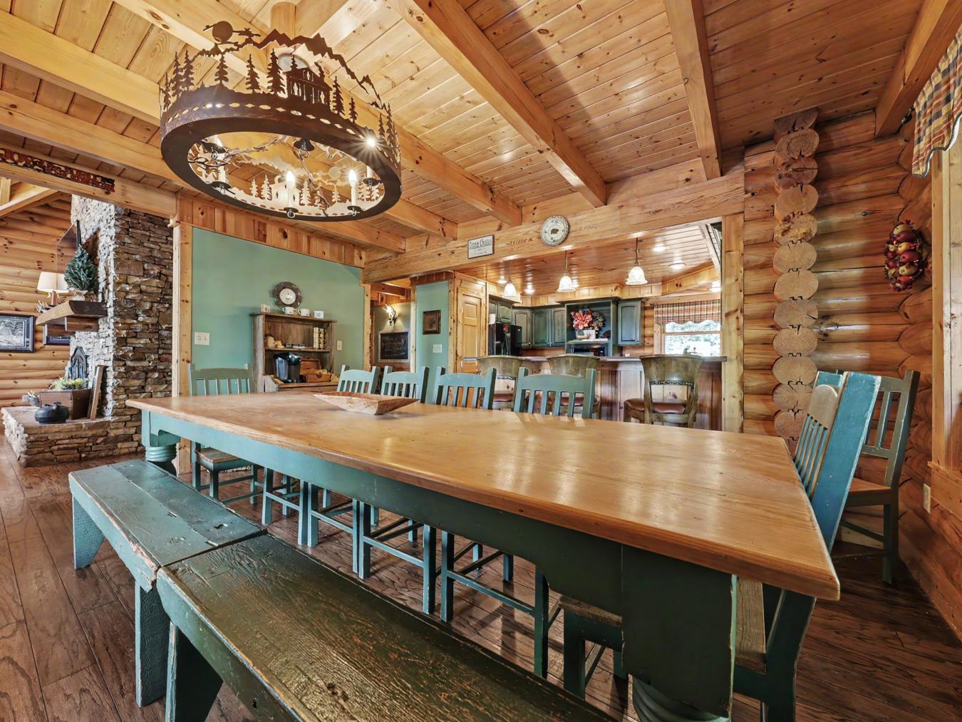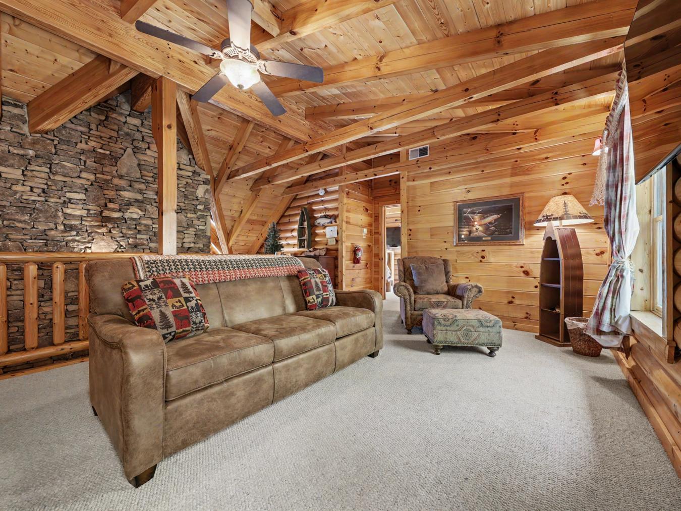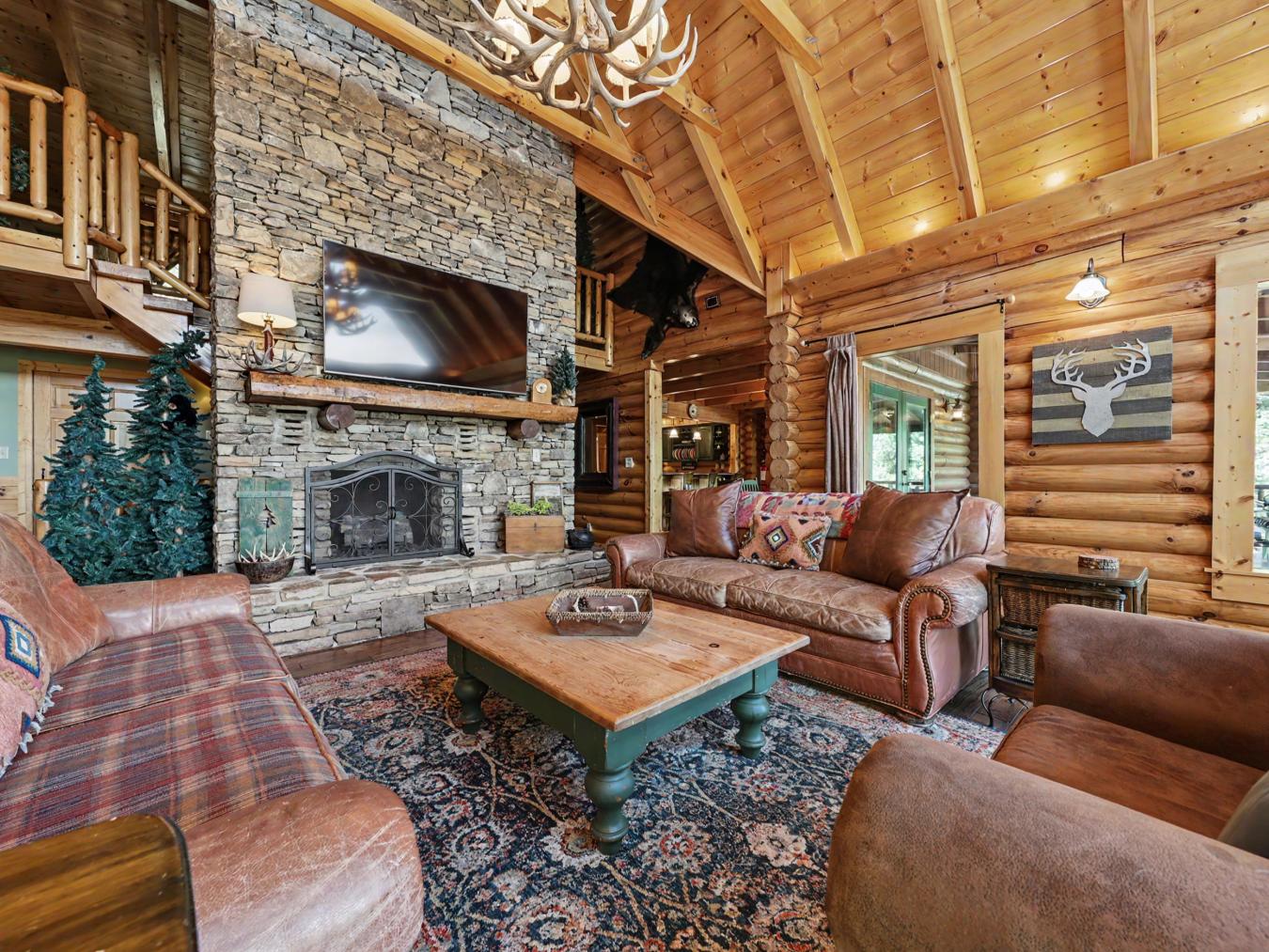 A Private True-Log Smoky Mountain Estate , Expansive Outdoor Living & Panoramic Views Set within a quiet cul-de-sac on nearly two acres of beautifully maintained, park-like grounds, this distinguished true-log mountain estate offers a rare sense of space, privacy, and sweeping long-range views across the Smoky Mountains. Designed to serve as both a refined personal retreat and a high-performing investment, the property embodies an elevated standard of East Tennessee mountain living. The grounds themselves are a defining feature. A **broad, level yard-exceptionally rare in the mountains-**creates a natural extension of the home, offering ample space for recreation, gathering, and open-air enjoyment, all framed by expansive vistas. A dedicated basketball area adds an additional layer of recreation, complementing the outdoor experience for guests of all ages. Surrounding the home, expansive wraparound decking and covered entertainment spaces provide multiple settings for dining, hosting, and quiet relaxation. A built-in gas grill, fire feature, and private hot tub create a seamless indoor-outdoor lifestyle, while park-style grills and a picnic area invite casual gatherings in a picturesque mountain setting. Inside, the residence reflects the timeless character of authentic log construction, balanced with thoughtful design across multiple levels. The main level is anchored by an inviting great room featuring a dramatic stacked-stone fireplace and rich timber finishes, creating a warm and welcoming atmosphere. The kitchen is well-appointed with solid-surface countertops, a peninsula with a recently updated cooktop, and convenient access to the homes functional spaces. The primary suite is generously scaled, offering a spa-inspired bath with a jetted tub and separate shower. The upper level features two well-appointed bedrooms-including a private king suite and a queen suite-both positioned to capture elevated mountain views, along with a flexible sitting area suited for games or quiet retreat. The daylight lower level expands the homes versatility with additional sleeping accommodations, including a king suite with direct access to the outdoor hot tub and a spacious bunk room designed for larger groups. A dedicated recreation lounge features a second fireplace, billiards, foosball, and comfortable seating, with direct access to a covered patio that further enhances the indoor-outdoor experience. A newly completed private theater room adds a final layer of entertainment, offering seating for six and a full cinematic setup for immersive viewing. With its rare usable acreage, expansive outdoor living, dedicated recreation spaces, and authentic craftsmanship, this Smoky Mountain estate presents a compelling opportunity for those seeking a private mountain sanctuary with meaningful investment potential in one of East Tennessees most desirable destinations.