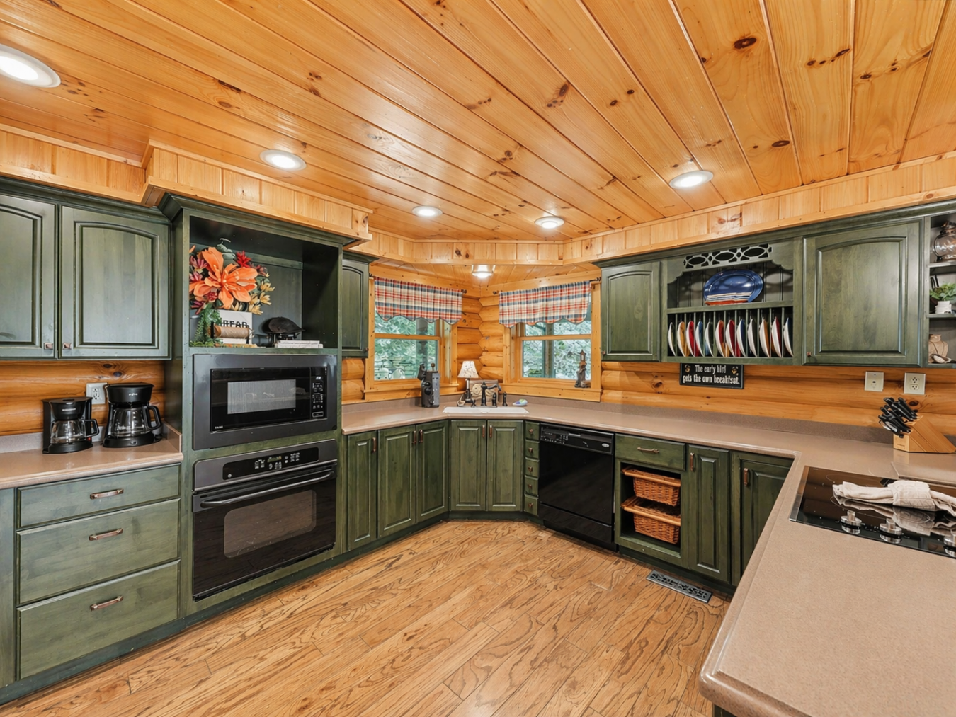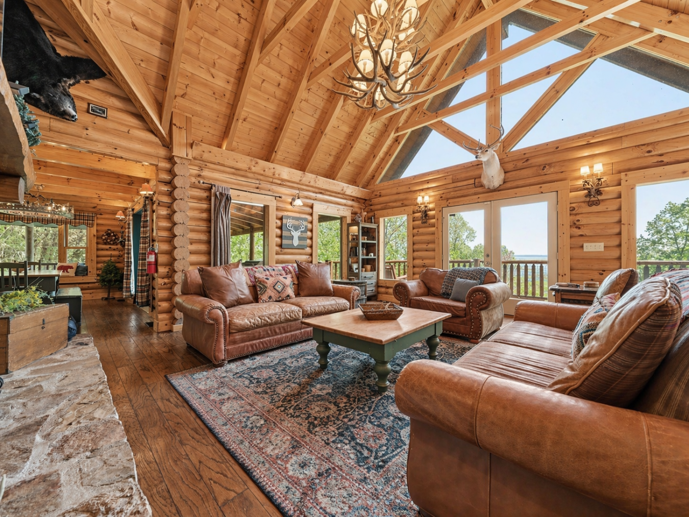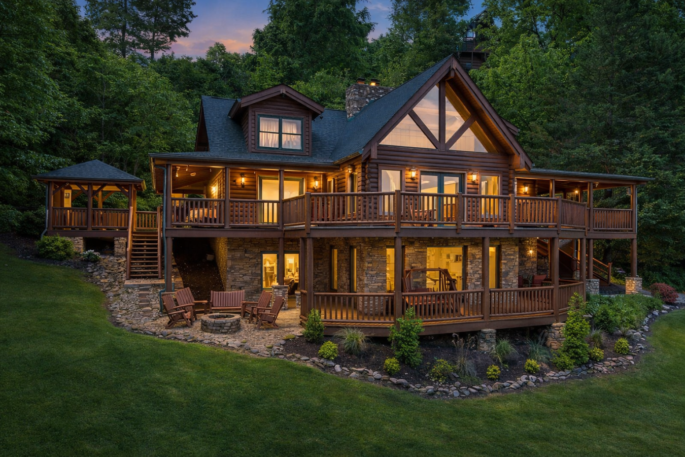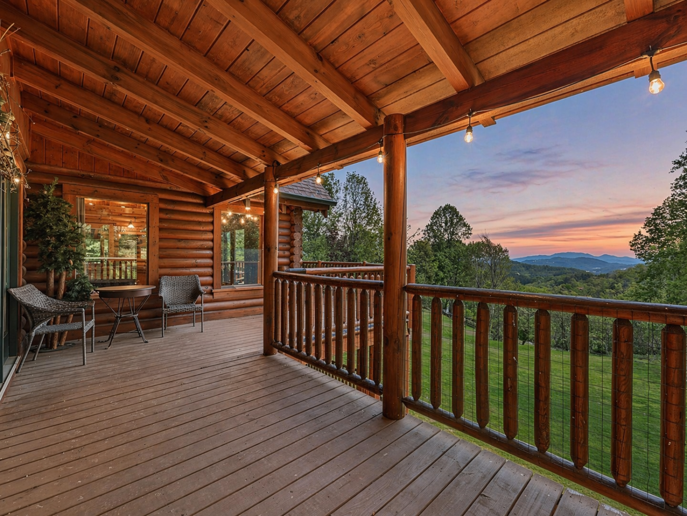 A Private True-Log Smoky Mountain Estate , Expansive Outdoor Living & Panoramic Views Set within a quiet cul-de-sac on nearly two acres of beautifully maintained, park-like grounds, this distinguished true-log mountain estate offers a rare sense of space, privacy, and sweeping long-range views across the Smoky Mountains.