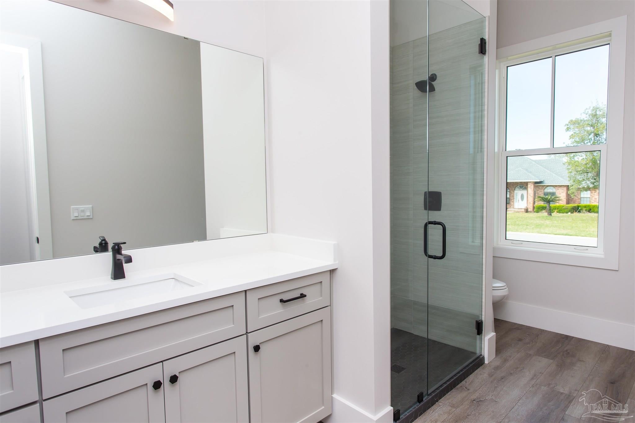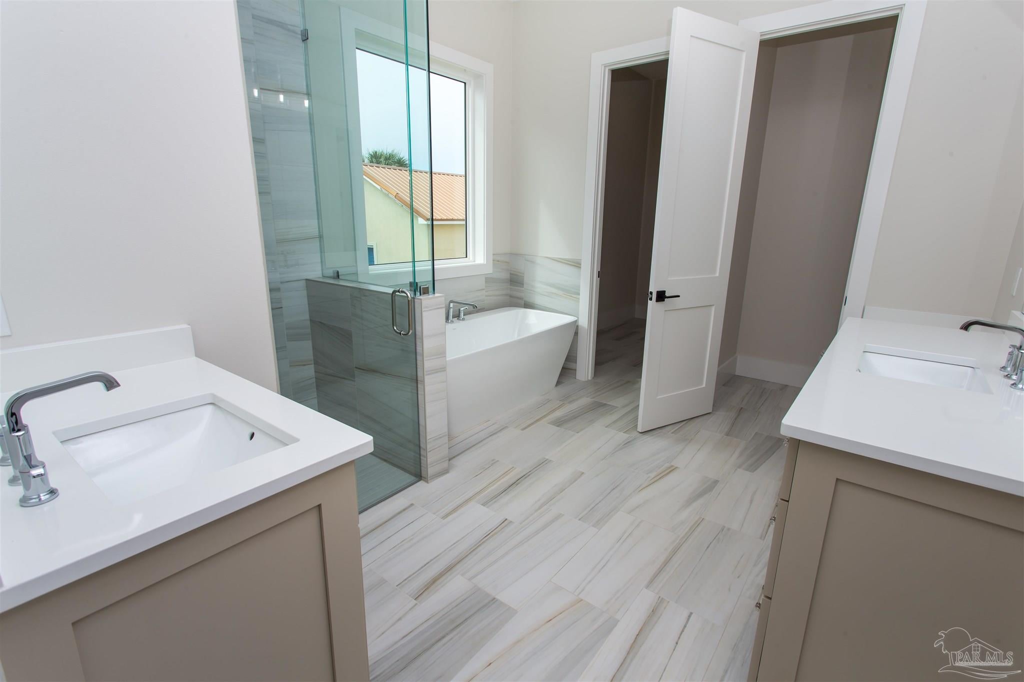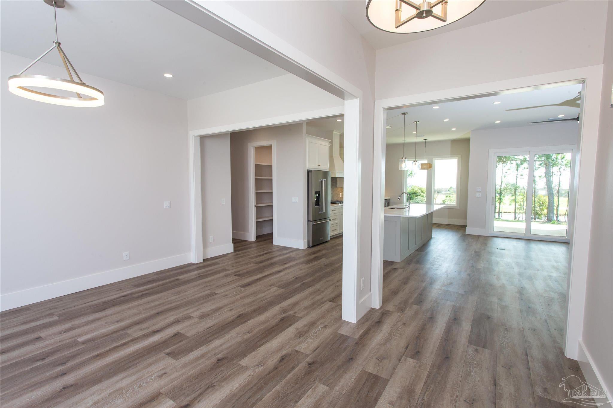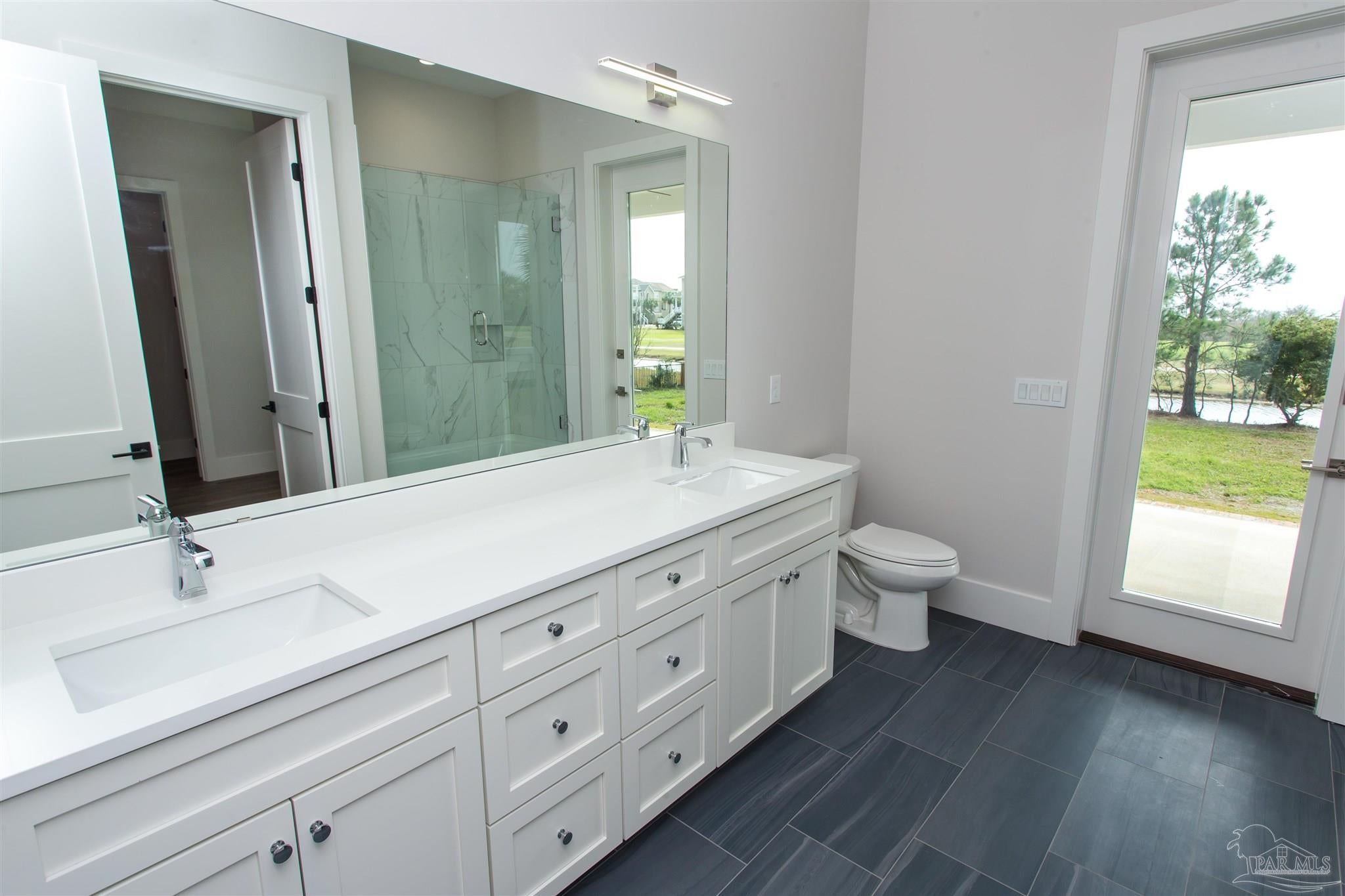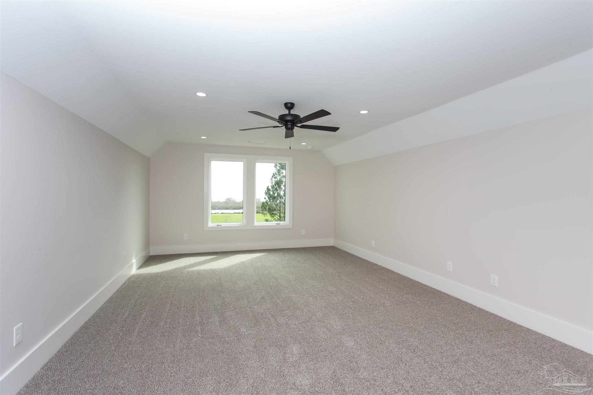 New Construction in a fantastic location in the Tiger Point Golf Community! Great views await the new owner of this 6 bedroom/ 4 bath home boasting 3400 SF of living area. This rear of this custom home faces south giving it Southern Exposure so you can soak up the sunshine and warmth in the winter months and the shade and summer breezes in the summer months on the large (595 SF) rear porch. The rear of this lot abuts the golf course property which gives you views of the canal, the 6th Fairway, sawgrass, and Santa Rosa Sound. The upstairs living area is over 900 SF and has 2 large bedrooms and one full bath. This is flexible space that could be used as a home office, workout room, media room, game room, man cave, etc. (plumbed for a wet bar). This would make nice guest quarters or a mother-in-law suite. There are several storage closets on the second level and access to the floored stand-up attic area for additional storage. The downstairs is an open floor plan with 10 ceilings and 8 solid doors. Kitchen features a walk-in pantry, stainless steel appliances with wine cooler, floating white oak shelves, and a large island. The living room has a gas fireplace and a triple sliding door that opens from either side that lets the inside flow to the outside porch area. There is a custom outdoor kitchen supplied by BBQ Guys with a grill, access doors/ drawers for storage, under counter refrigerator, sink, and granite countertop. Home constructed with PGT impact windows and slider, Wayne Dalton garage doors, Navien tankless water heater, Nuema stained double front door with triple locking feature, two American Standard HVAC systems, spray foam attic insulation, and has a sprinkler system on a timer. House is prewired to all bedrooms and living area for audio visual. This is a golf cart friendly neighborhood and The Pointe restaurant, sports bar, event venue, and golf clubhouse is a short ride away.