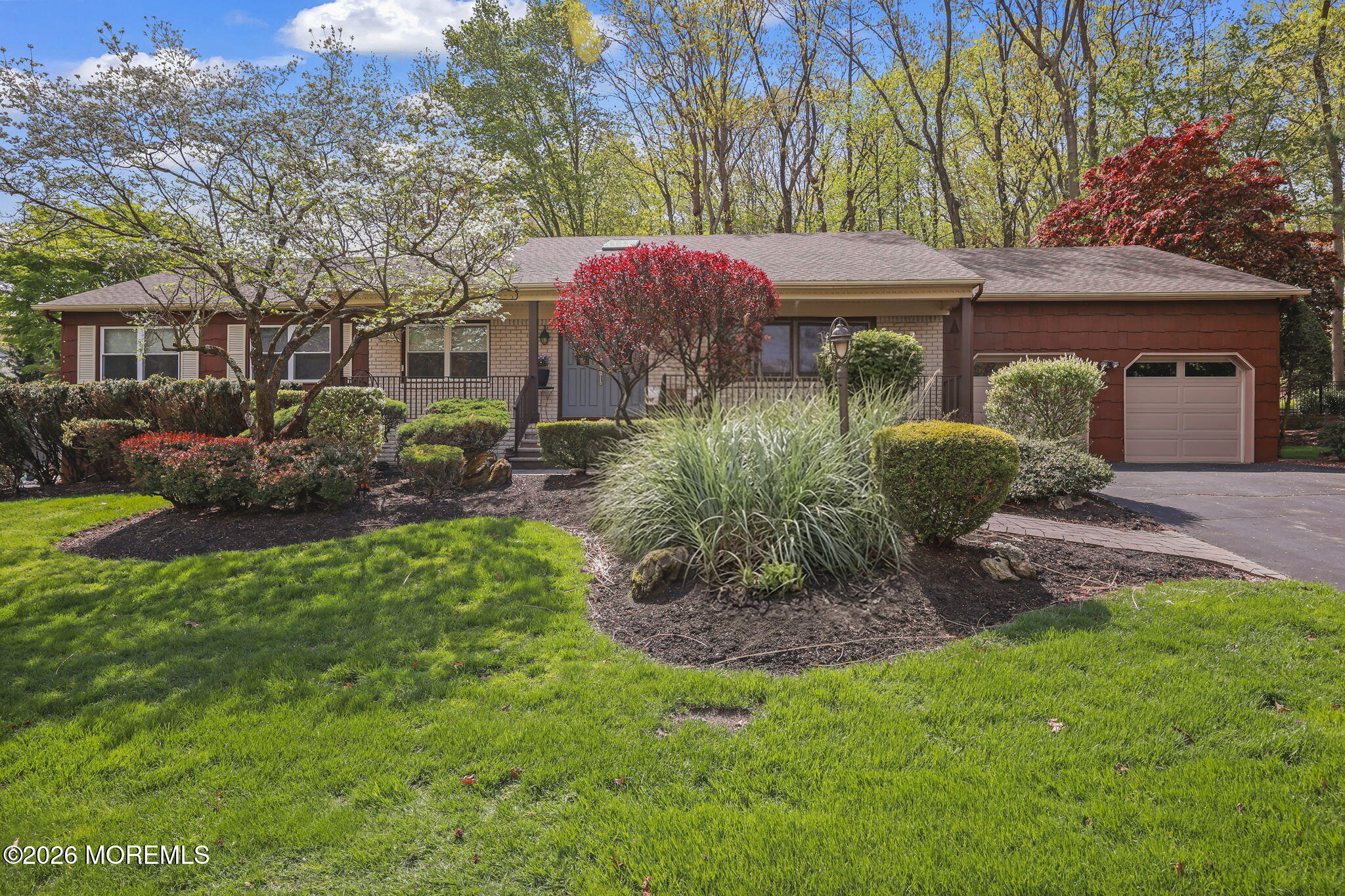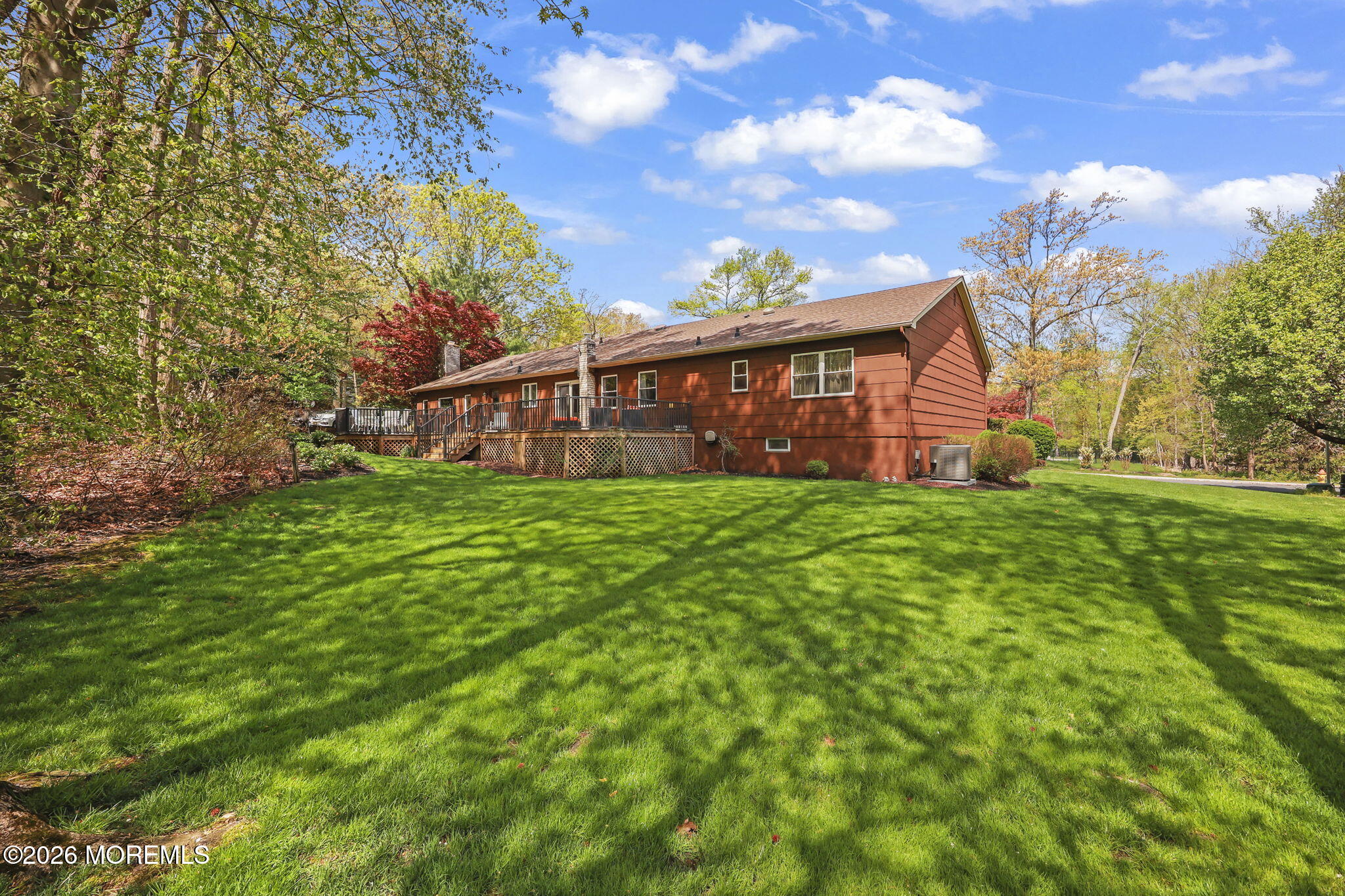 Coming Soon. Showings begin 4/24. Expanded luxurious ranch located in the coveted Triangle Oaks community in Marlboro. Offering over 2,600 sq ft of elegant one-level living, this 4-bedroom, 3.5-bath home features gleaming hardwood floors, decorative moldings & a bright, open layout w/wide hallways and abundant natural light. The remodeled eat-in kitchen includes stainless steel appliances, double oven, center island, and extensive cabinetry, opening to a spacious deck & private, Park like tree-lined backyard. Sun-filled family room w/wood-burning fireplace. Enormous Full finished lower level including a full bath. Private primary suite w/ walk-in closet, double vanities & a luxurious jetted spa-style shower. Roof is 4.5 years old, the HVAC has been replaced. This one is not to be missed.