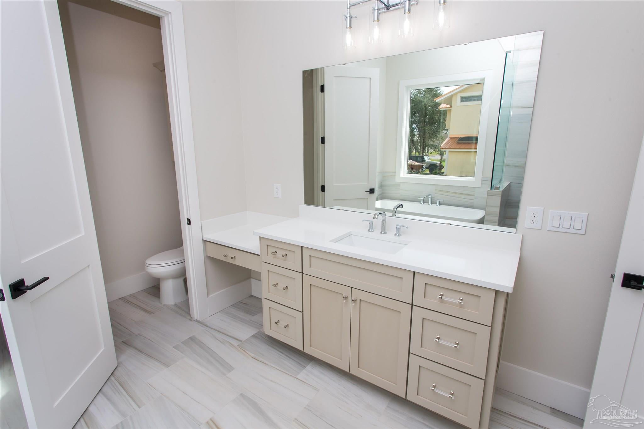 New Construction in a fantastic location in the Tiger Point Golf Community! Great views await the new owner of this 6 bedroom/ 4 bath home boasting 3400 SF of living area. This rear of this custom home faces south giving it Southern Exposure so you can soak up the sunshine and warmth in the winter months and the shade and summer breezes in the summer months on the large (595 SF) rear porch.