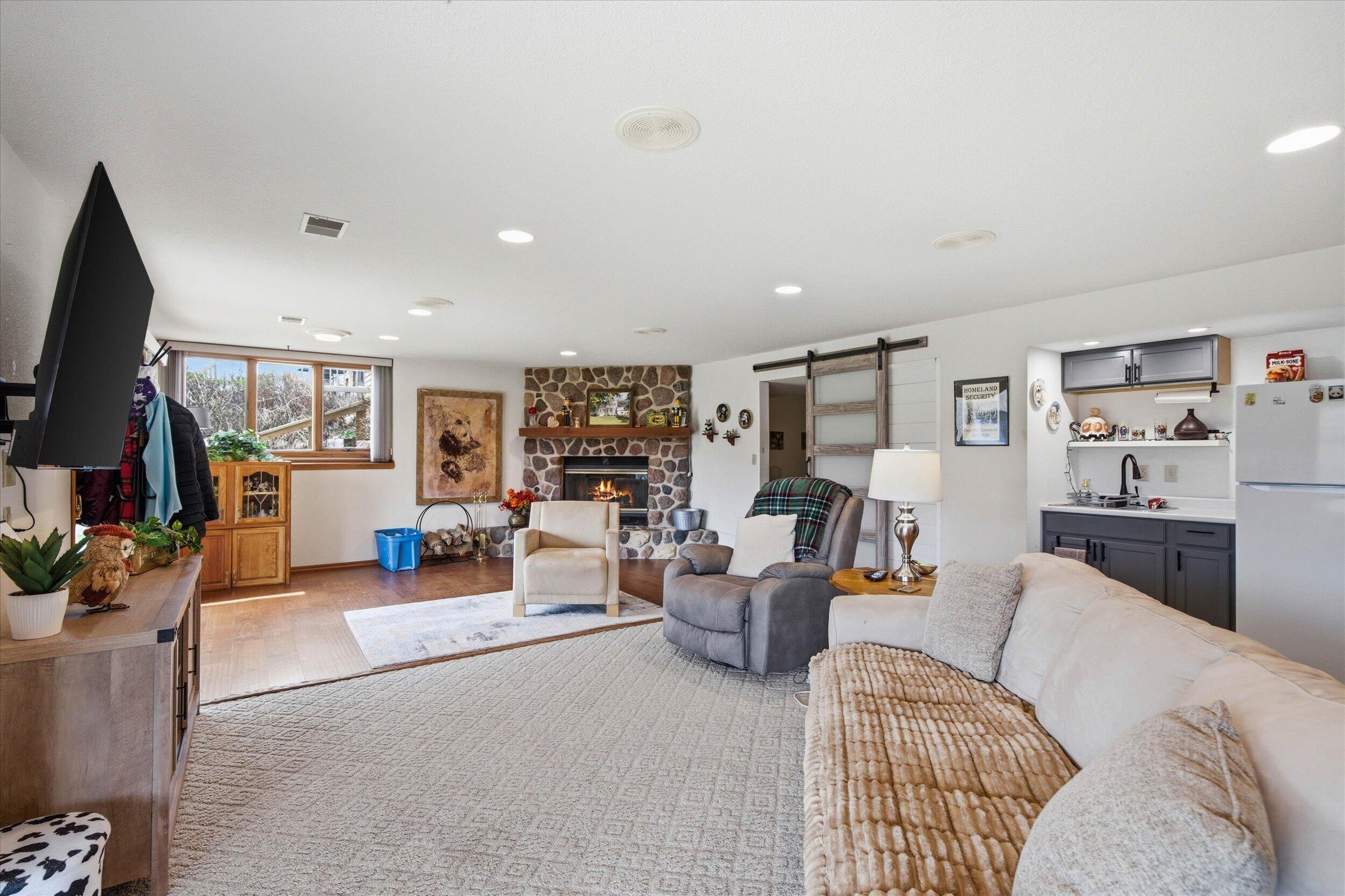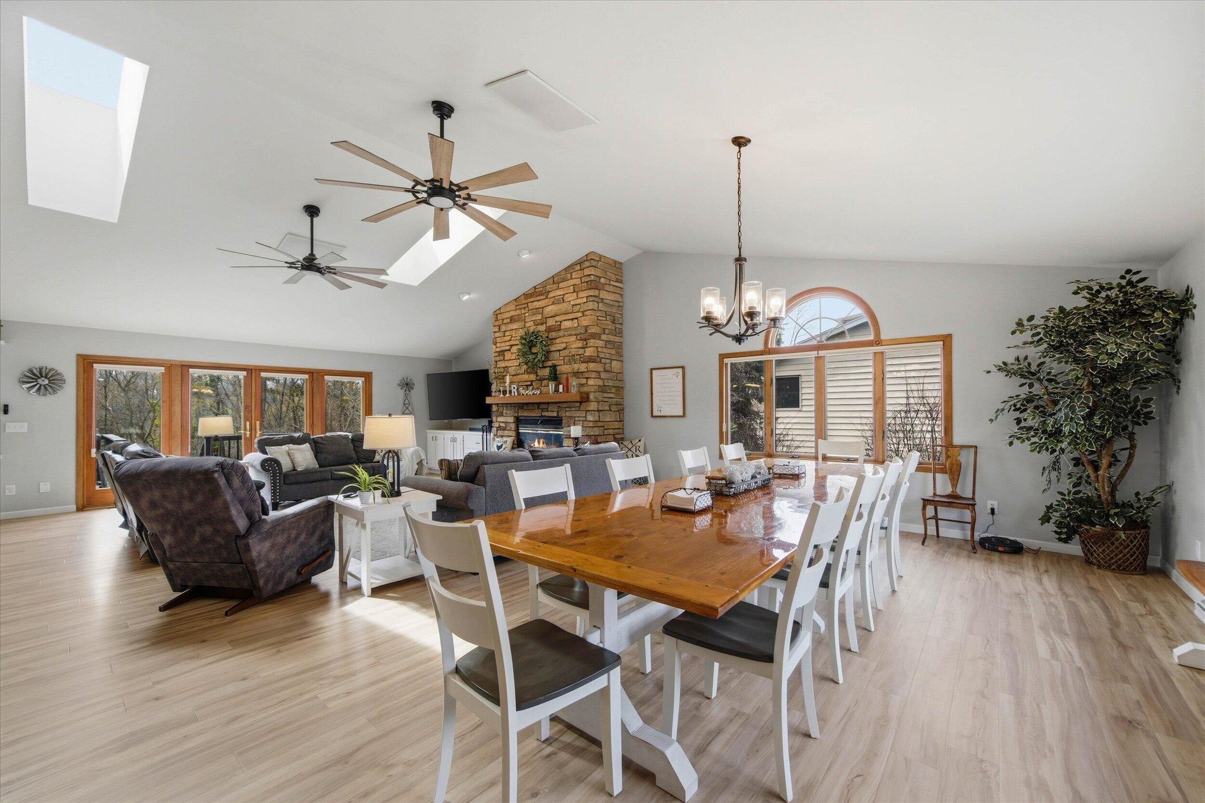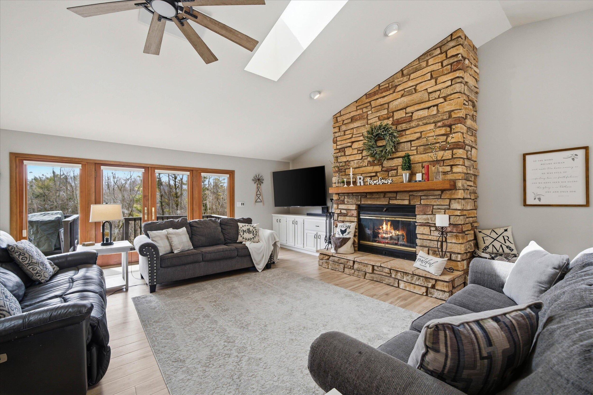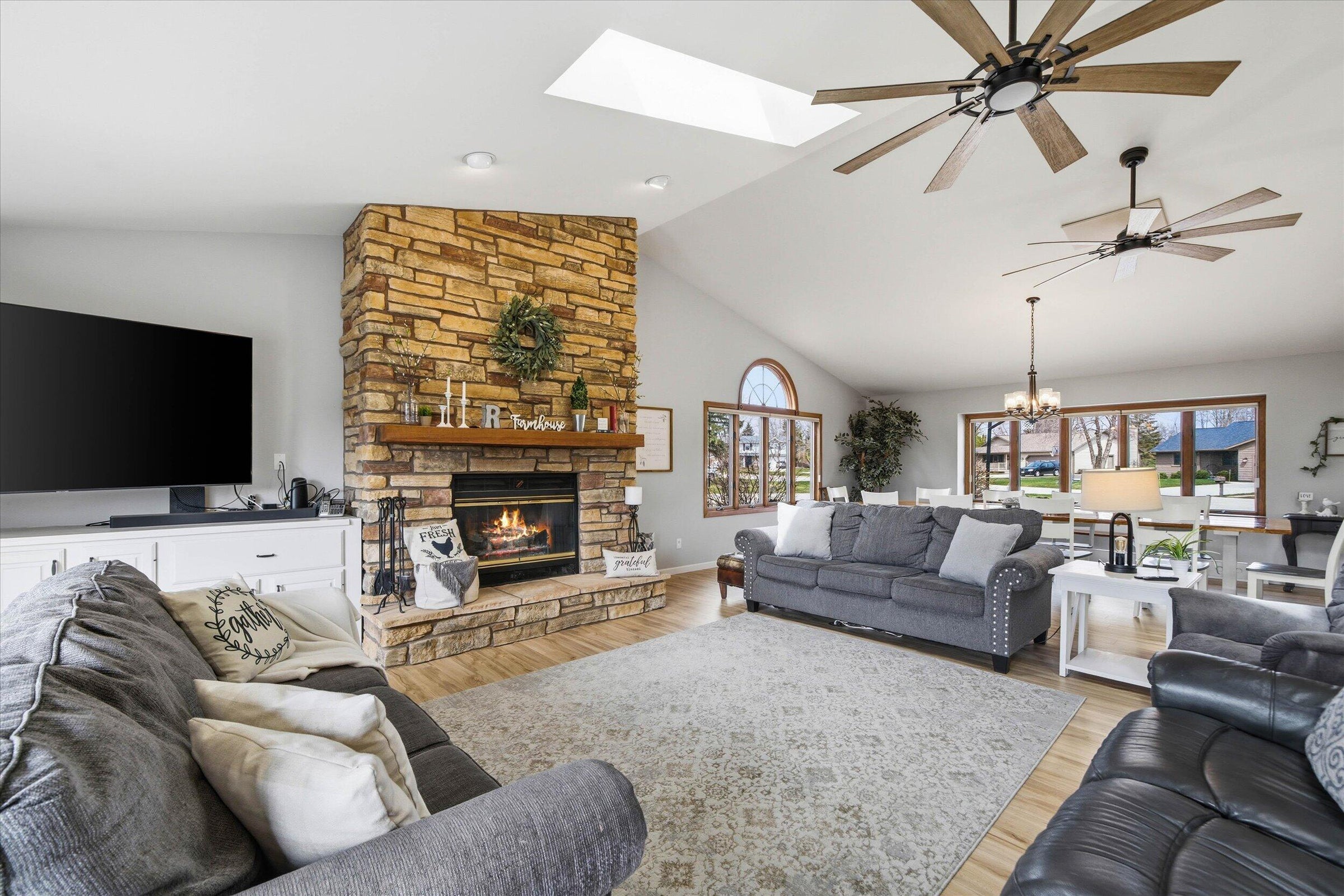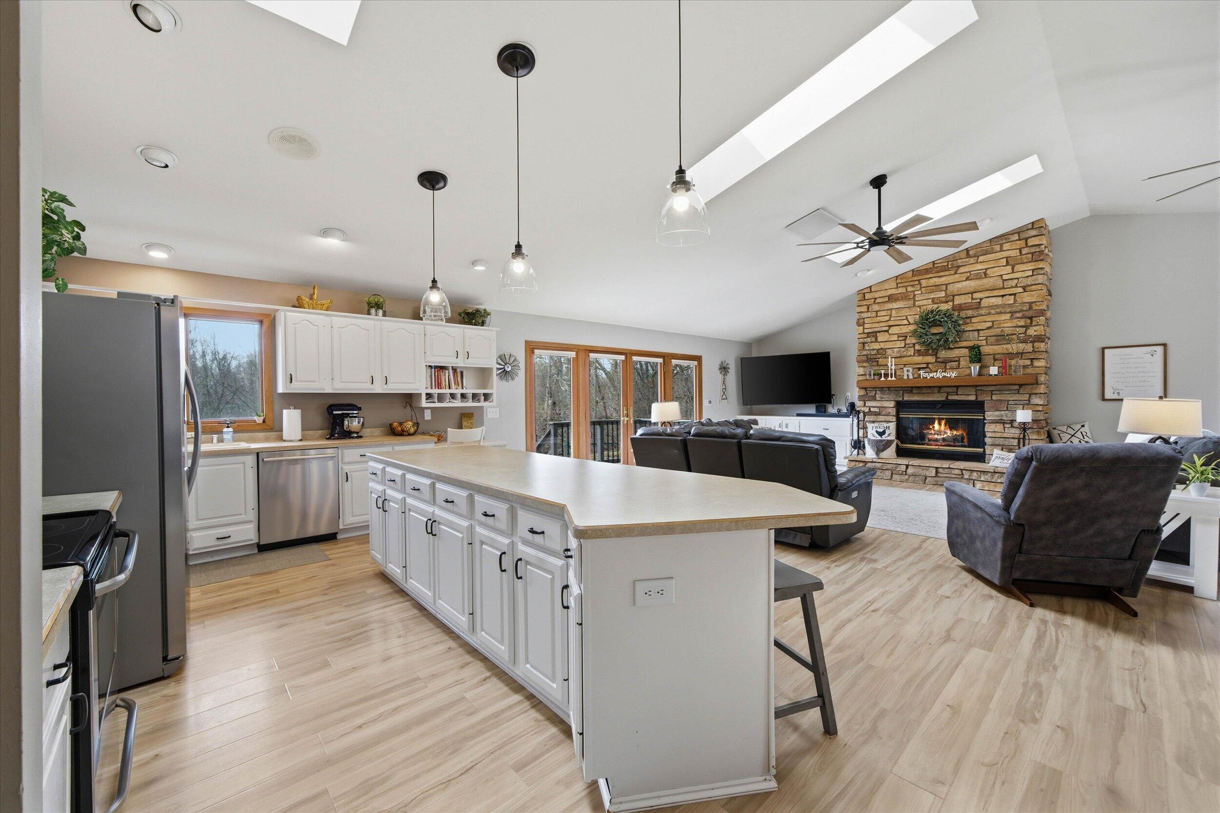 This is the ranch youve been waiting for!! The space, the open concept, the view, the wildlife, the quiet cul de sac, AND the updates are ALL HERE! Your new space includes a large kitchen with lots of cabinet space and island overlooking the grand living room that boasts a natural fireplace and large dining area. Your new kitchen and LR face South giving you plenty of natural sunlight while overlooking the wildlife thats supported by the Pigeon River. Being in a cul de sac will give you the comfort of safety and quiet as people are forced to keep it slow. Lastly, buy with confidence from the recent updates that include-New Roof, Gutters, and 3 skylights; remodeled master bedroom and suite; new basement shower; new hardwood floors in two bedrooms; and newer basement cabinets! Dont Wait!!