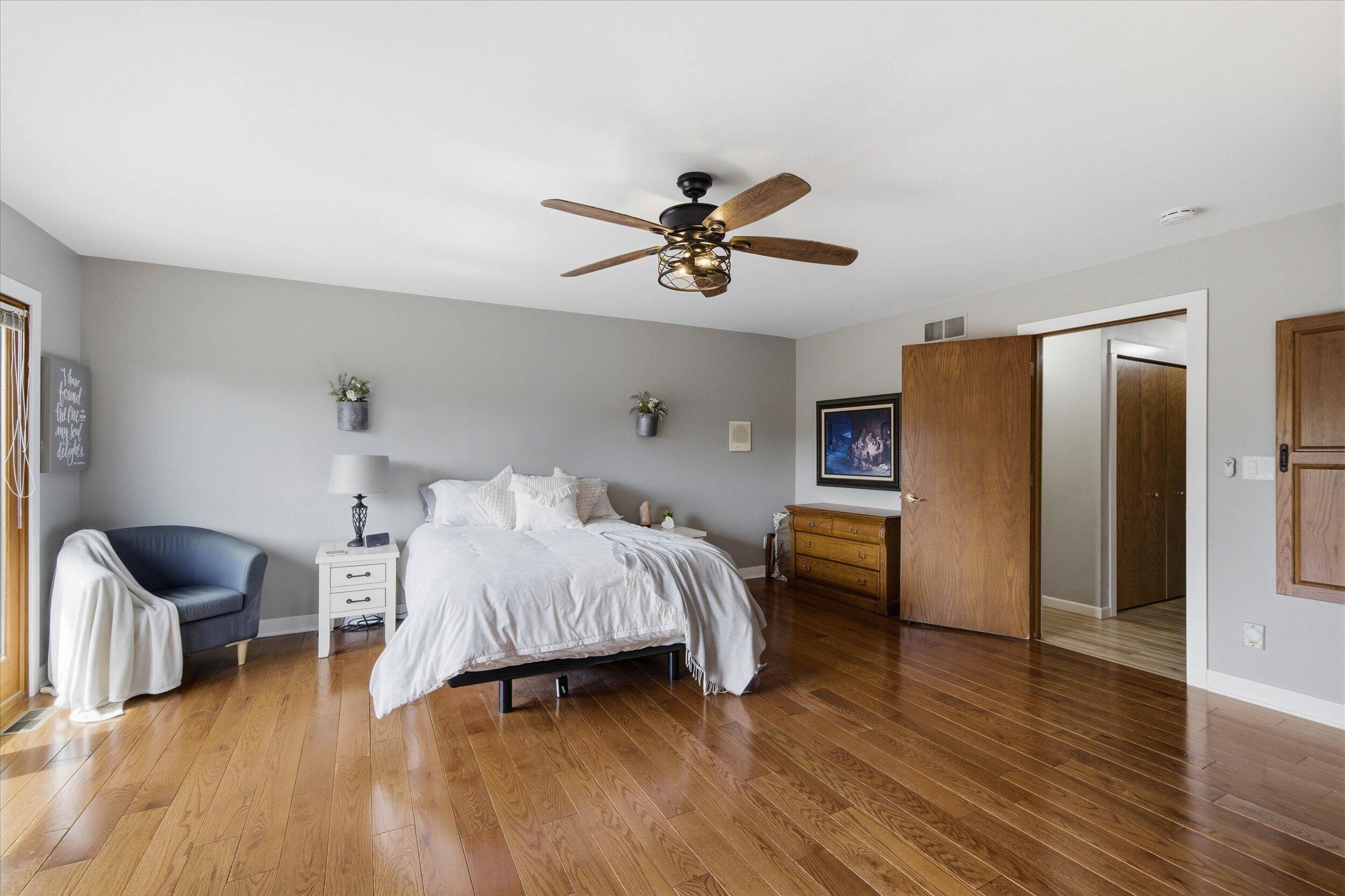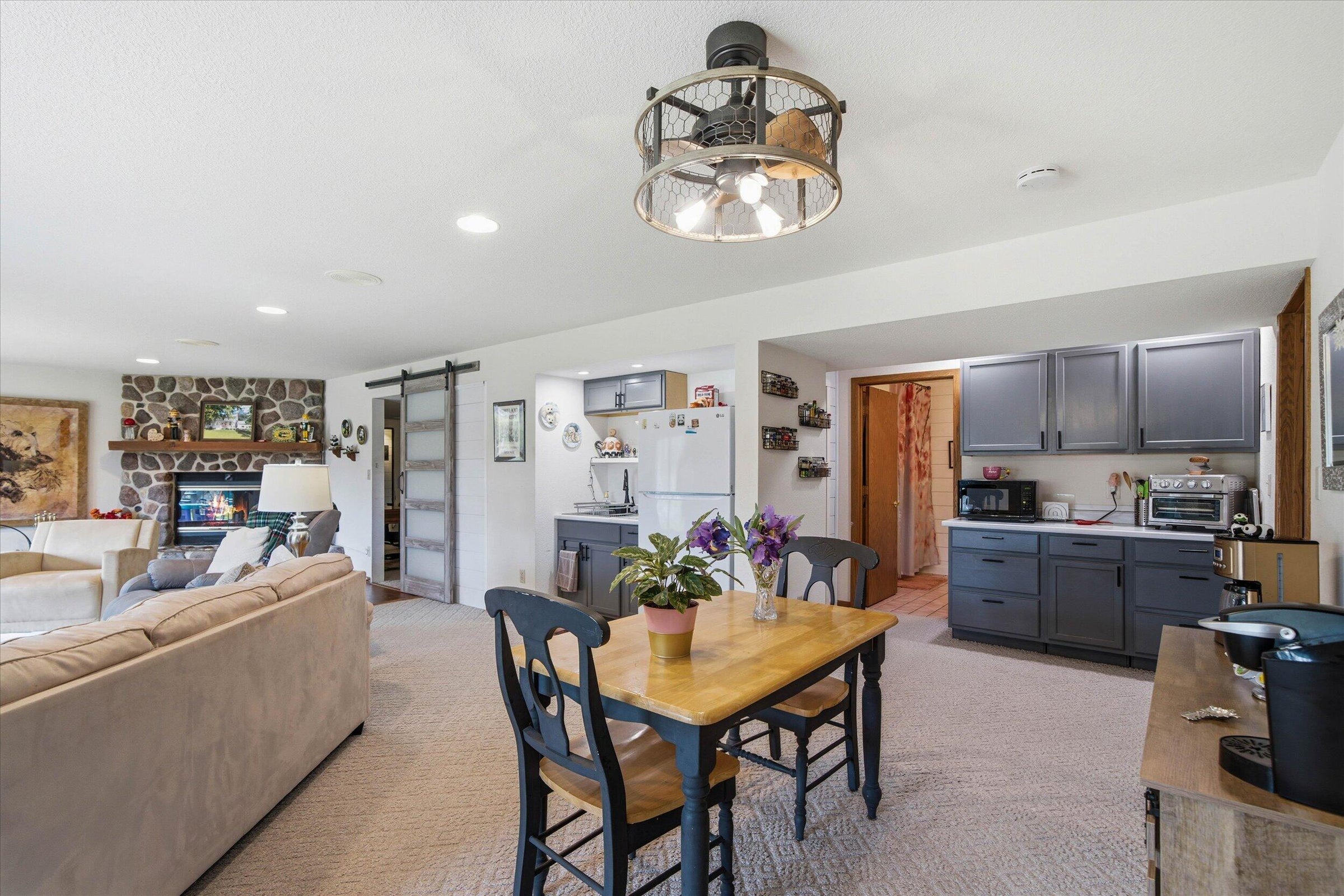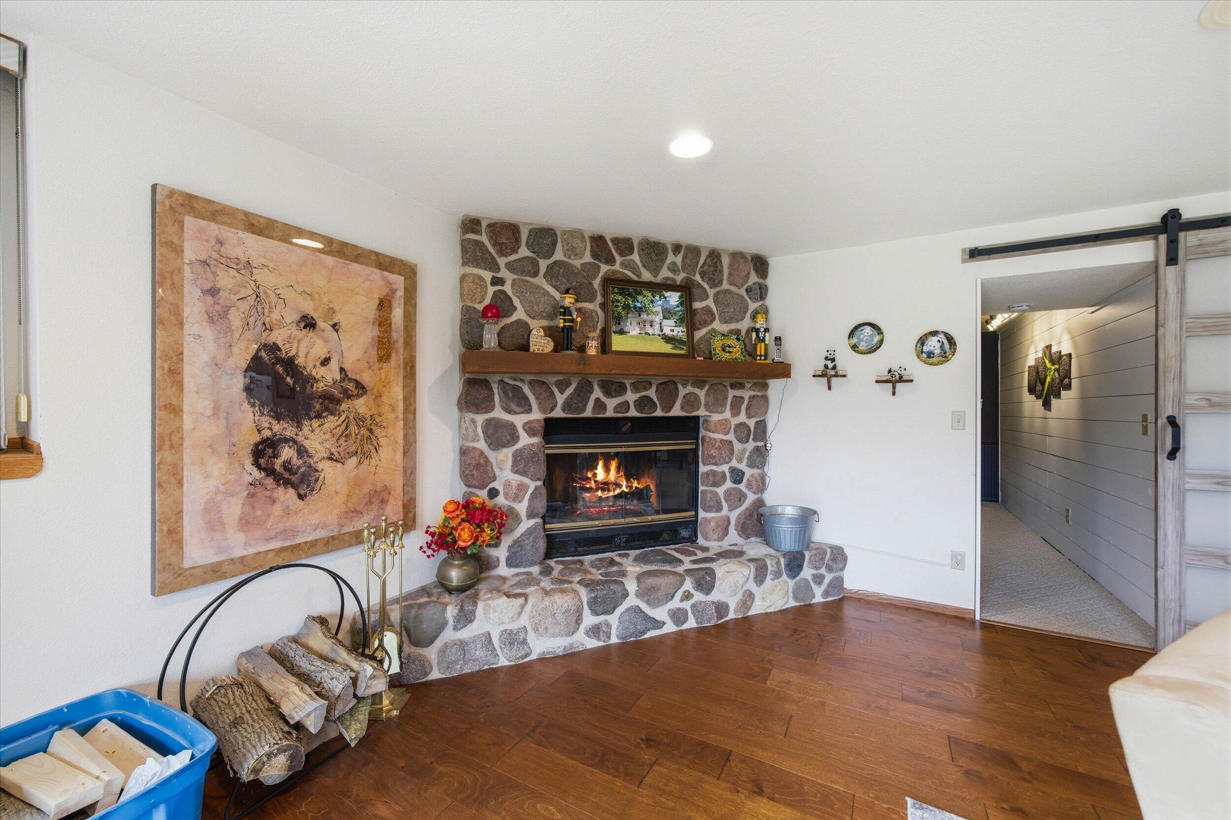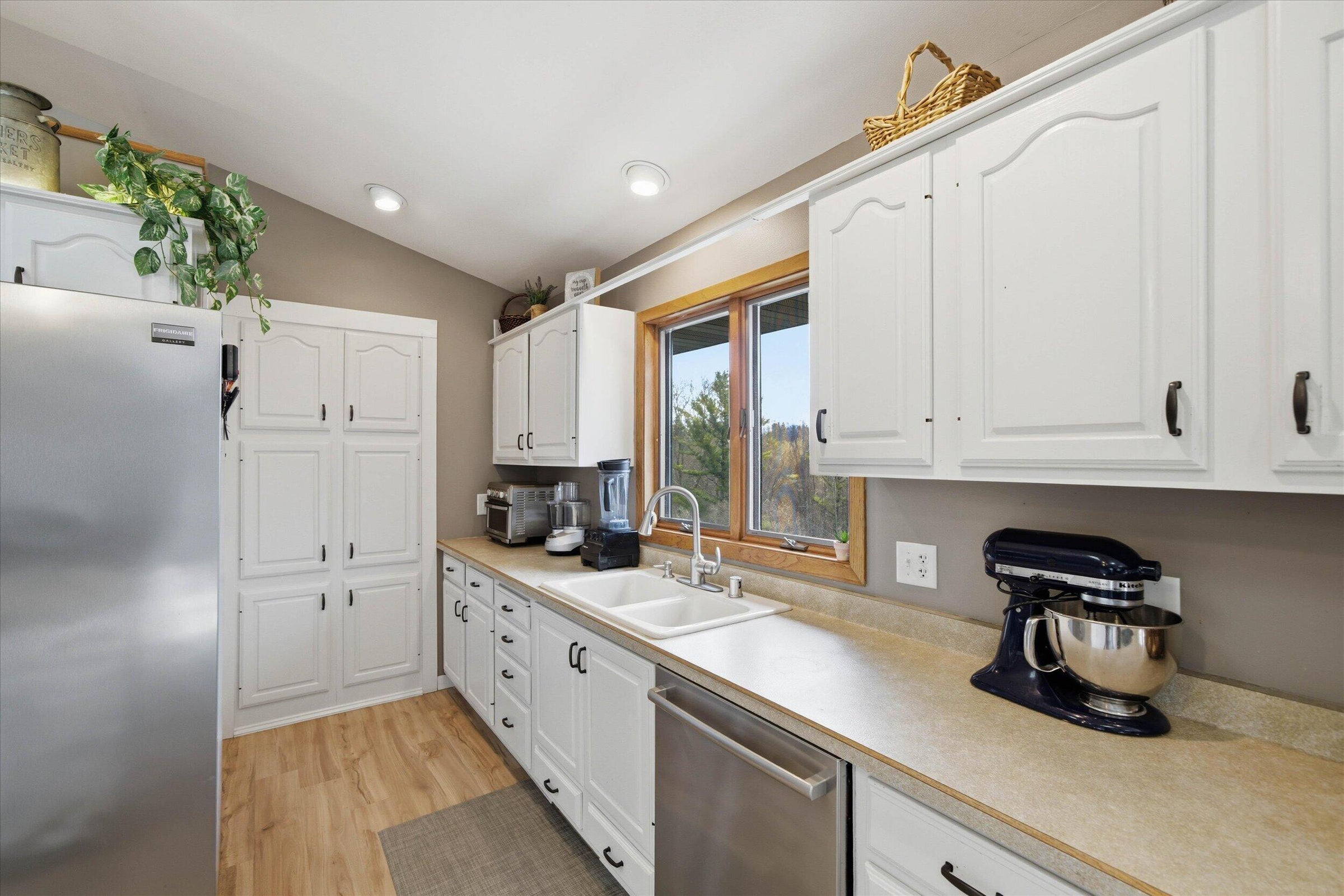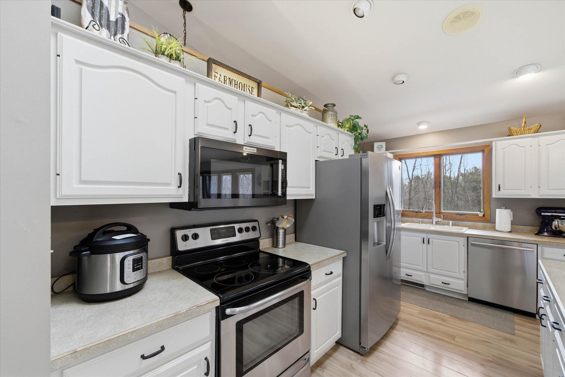 Nestled in the pines in Hermantown you will find this fabulous home! From the moment you pull up you will appreciate the steel siding and the curb appeal of this ranch home. Step inside to the large entry with a neat cobblestone floor, cubbies and lots of storage. The open floor plan boasts gorgeous Red Oak hardwood flooring and loads of sunshine! The spacious kitchen has hickory cabinets, stainless steel appliances,tiled backsplash and Cambria quartz countertops that are beautiful and functional. This is open to the dining and living room creating a perfect spot for large gatherings. There are 3 bedrooms on the main floor and they also have the Red Oak hardwood flooring, ceilings fans, wall closets and 6 panel doors. The updated full bathroom is soo pretty with the tiled shower surround and backsplash. In the lower level you will find alot of space that also has a walkout! Large family room and hearth room with a wood stove that adds a nice touch and warms up the home during our freezing winter months. And an extra room that can be used as office, workout room,craft room or anything you need! Laundry room and lower level updated 3/4 bath both have infloor heat in the tiled floor. Laundry room has ample storage space and a laundry tub and even a window creating a bright space. There are 2 more rooms off the laundry area that these sellers use as an excercise room and a bigger storage room. Outside features include a 2025 (24 x 30) built detached garage also with steel siding matching the home. Parklike yard with plenty of room for gardens,playspace and even chickens! Firepit area and patio for those summer nights and so much more...this home is centrally located giving you the country feel but not being so far out. Many updates on this home including new septic installed in 2010, new well in 2010,new windows 2011,2013-14 finished lower level, 200 amp panel added,2015-16 insulation added, kitchen remodel,rebuilt att garage with concrete footings,ICF,5 inch slab 2x6 insulated walls,propane heater and floor drain. 2019 new water line from well to home,on demand water heater and pex lines through out home. 2023 backyard leveled and crushed limestone for patio area added. Fiber optic internet has been ran to the home but currently not in the home. And property has multiple producing apple trees and rhubarb in the front garden bed. THIS IS THE PERFECT PLACE TO CALL HOME!!!