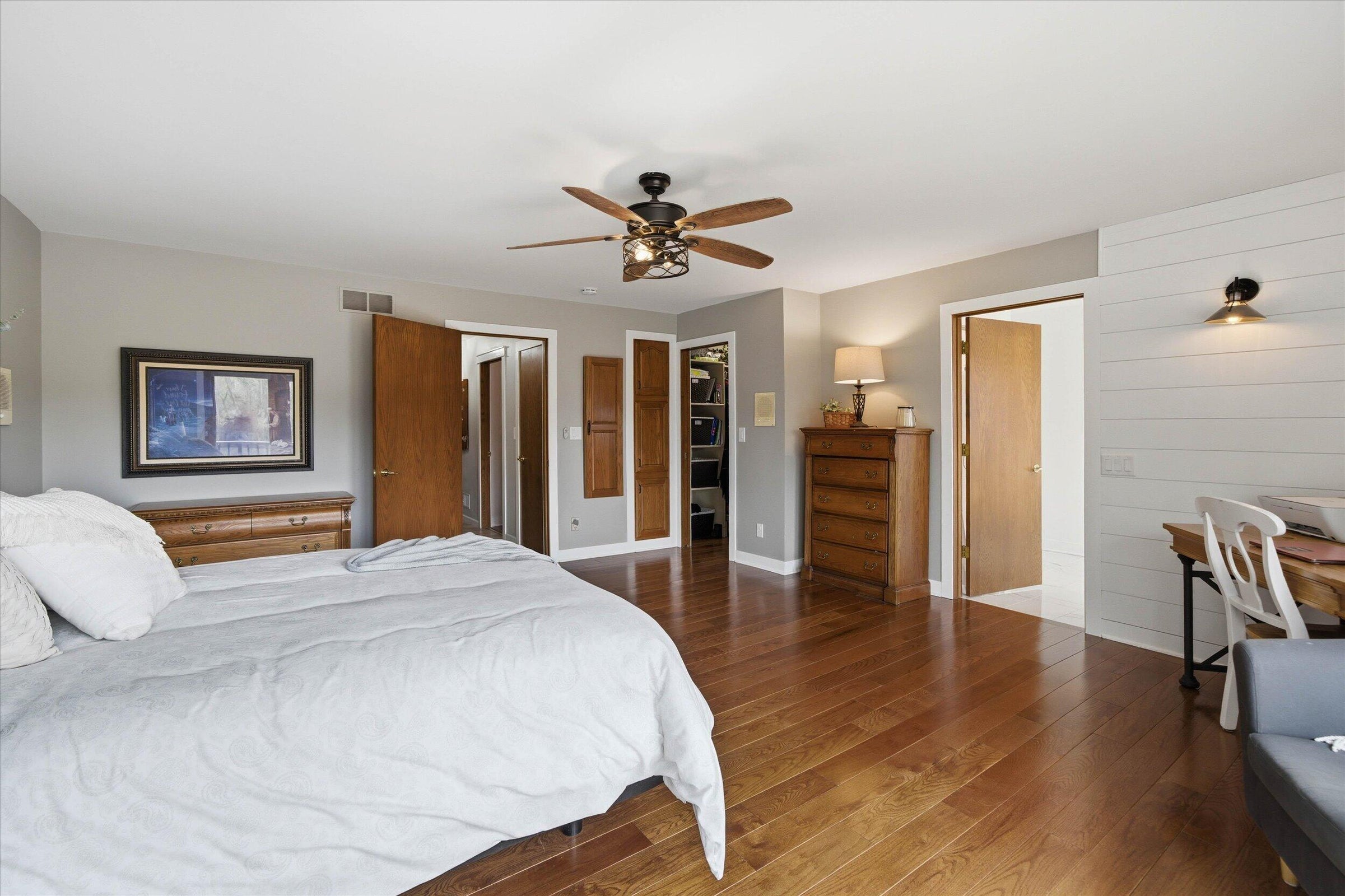 Stunning home in Scenic Sunrise at the end of a cul-de-sac with views, RV garage parking, and no HOA! This thoughtfully designed property features a bright open layout with luxury vinyl plank flooring, white oak cabinetry, quartzite countertops, and a custom Venetian plaster hood as a true kitchen centerpiece. The kitchen offers a spacious walk-in pantry, designated dining area that leads to the back patio and large island for entertainment. Versatile front casita/salon space with its own entrance offers endless possibilities. Such as, home office, guest suite, or business use. The primary en-suite is complimented by a walk-in closet, walk-in shower, dual sinks and separate soaking tub. Spacious living areas flow seamlessly to the covered patio and backyard, with a retaining wall already in place and seller offering to coat the patio for the buyer if desired. Located in a welcoming neighborhood with community events and great neighbors, just minutes from shopping, dining, and walking distance to Horizon Elementary. Clean, modern, and move-in ready!
