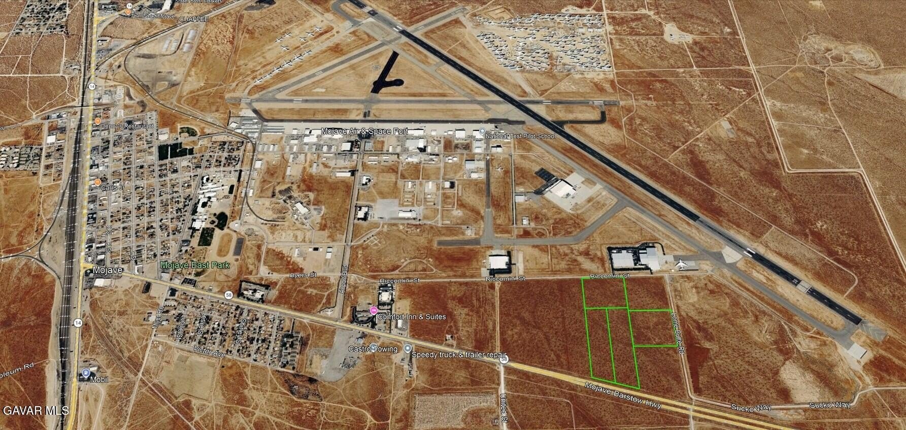Hwy 58 (business center)/ Airport Blbd-north/ Riccomini St-east to Stratolaunch building. Lots are south across the street.