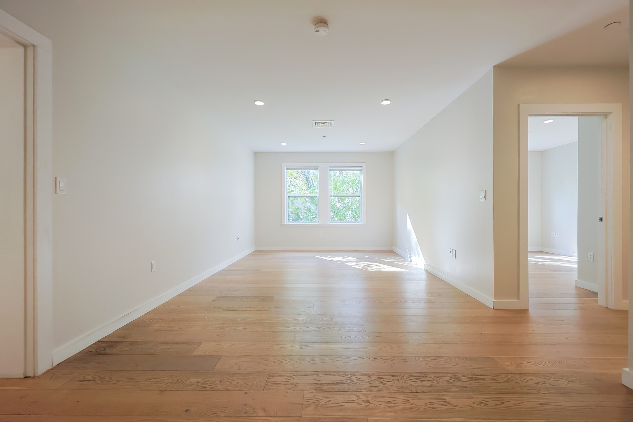 op-floor corner 2-bedroom, 2-bath residence with 2 garage parking spaces in a professionally managed elevator building overlooking Noyes Park in one of East Boston’s most convenient locations. Built in 2017, this stylish home offers 1,065/- sq ft of single-level living with an open layout, oversized windows, engineered hardwood floors, central air, in-unit laundry, and direct views of the park.