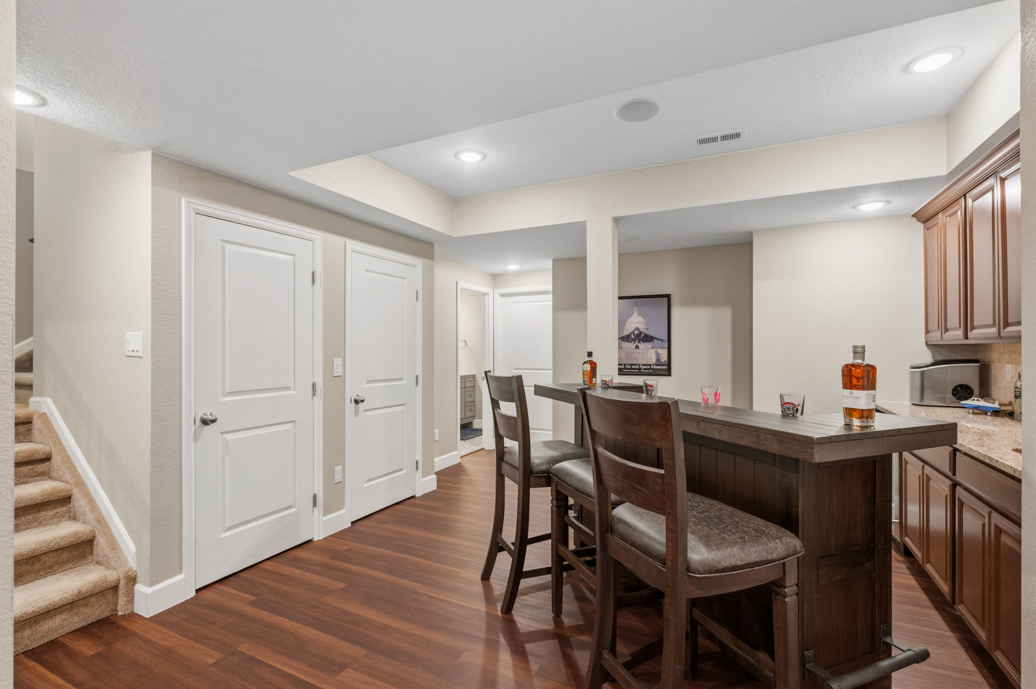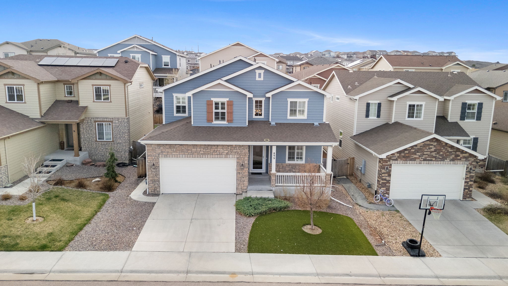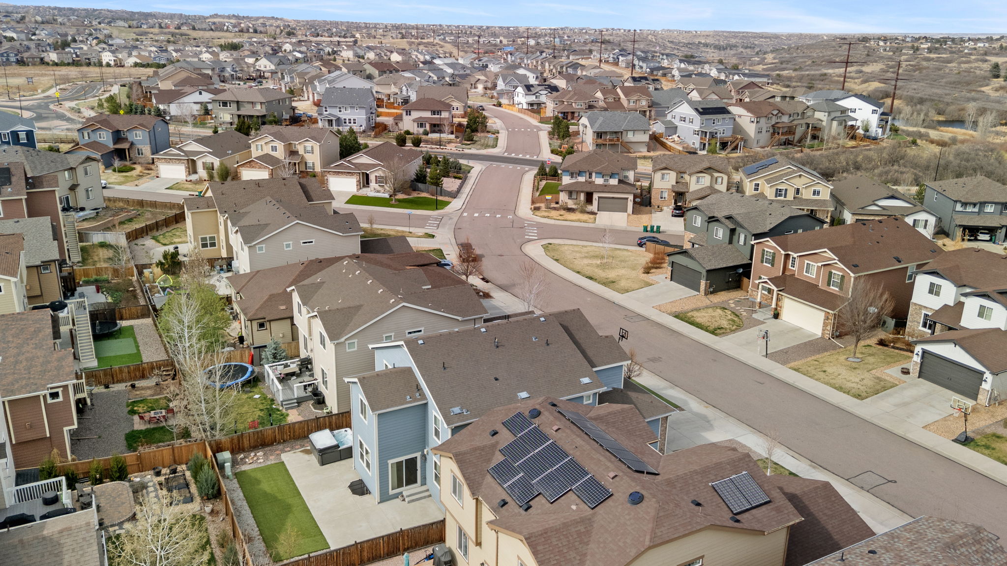 This is where thoughtful design meets real life functionality, an elevated Castle Rock home that adapts to you, not the other way around. Thoughtfully maintained, the home welcomes you with a calm, confident presence. Just off the entry, a dedicated office space that feels dialed in and distraction free, perfect for focus and flexibility as life shifts. The main level flows effortlessly. Open, inviting, and designed for connection. Whether it’s quiet mornings with coffee or a full house on a Saturday night, the layout moves with you, not against you. The mudroom just off the garage keeps everything in its place, while the oversized 3-car garage with epoxy flooring adds function and polish. Upstairs, the home settles into its rhythm. Four bedrooms are positioned alongside a cozy loft-style space, ideal for relaxing or creating a secondary living area. Three bathrooms serve the upper level, including a private ensuite, while the conveniently located laundry room keeps routines simple. Downstairs, the finished basement offers a different experience. With an additional bedroom and bathroom, plus a built-in bar, this level is ready to host, unwind, or transform into a theater, gym, or guest retreat. Step outside and the lifestyle continues. Turf in both the front and backyard keeps maintenance low, while the hot tub adds comfort for every season. Behind the scenes, dual-zone climate control with a newer HVAC and furnace system keeps comfort dialed in. Just beyond your front door, the lifestyle expands. Located within the Terrain community, you’ll have access to miles of scenic trails, a dog park, and neighborhood parks including Wrangler Park with tennis courts, playgrounds, and open fields. Ravenwood Park offers sweeping views of McMurdo Gulch and the Rocky Mountains, along with its hillside slide. The clubhouse and swim club provide spaces to gather and connect. All just minutes from I-25, with access to dining, shopping, Douglas County schools, and outdoor recreation.