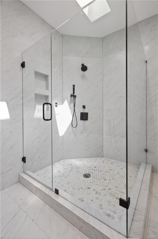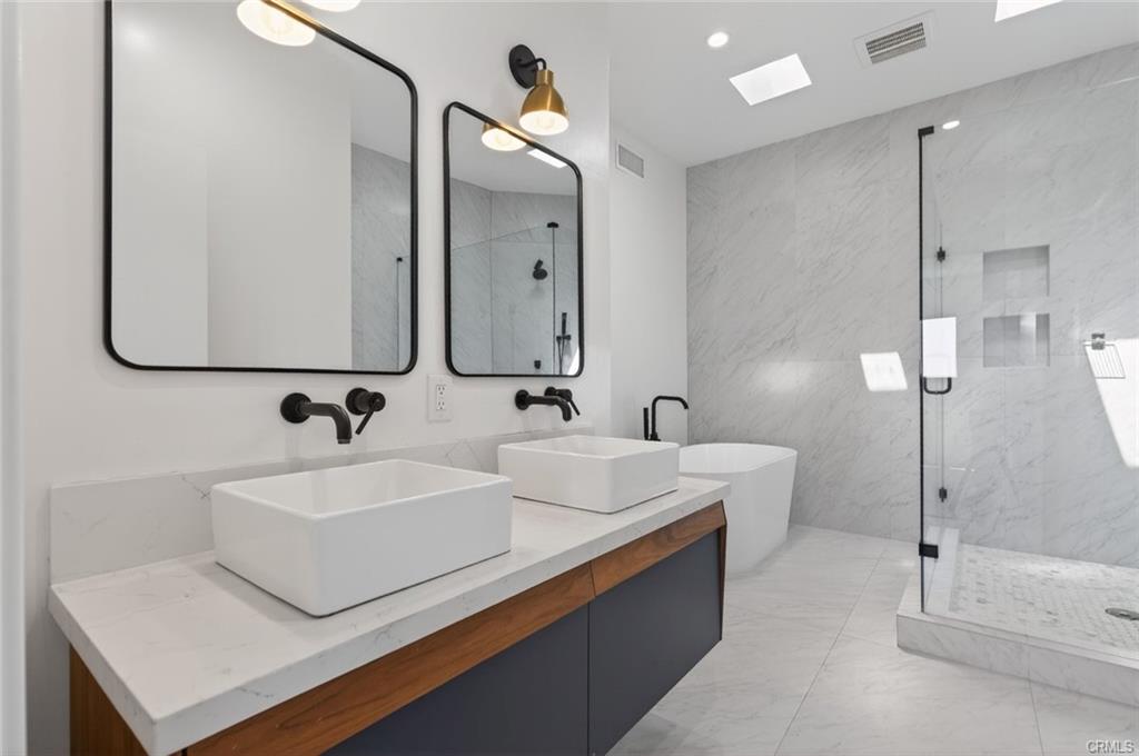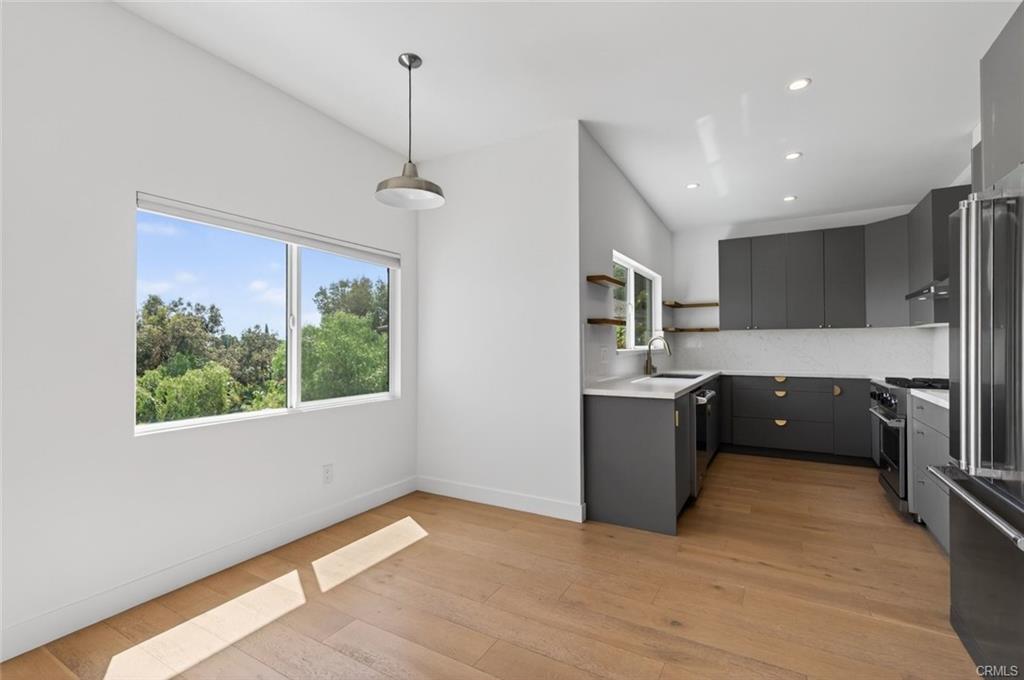 Stop the search—you’ve found the one! This stunning home is nestled in the hills, just a short walk from the Silver Lake Reservoir and Dog Park. Fully remodeled down to the foundation in 2021, the thoughtfully designed floor plan is modern, bright, and filled with natural light. As you enter, you’re immediately greeted by city views of Downtown LA through wall-to-wall glass sliding doors that open to an inviting outdoor patio. The main-level living room features high ceilings which flows seamlessly into the dining area and a beautifully appointed kitchen with elegant quartz countertops. Even the kitchen window frames a picturesque view of the LA skyline. The primary bedroom is conveniently located on the main level, with hardwood floors extending throughout the home. The spacious primary bathroom is a true retreat, featuring a large walk-in shower with skylights above and a separate deep soaking tub. Downstairs, you’ll find two additional generously sized bedrooms, a full bathroom, and a relaxed family room—perfect for movie nights. Step out to the second covered patio overlooking the lush, fragrant backyard. Thoughtfully landscaped with red and yellow lantana, the expansive yard attracts butterflies and hummingbirds, creating a serene outdoor escape. Imagine unwinding with your favorite book on the pea gravel patio tucked at the bottom of the yard. This is a home you won’t want to miss—come see it for yourself!