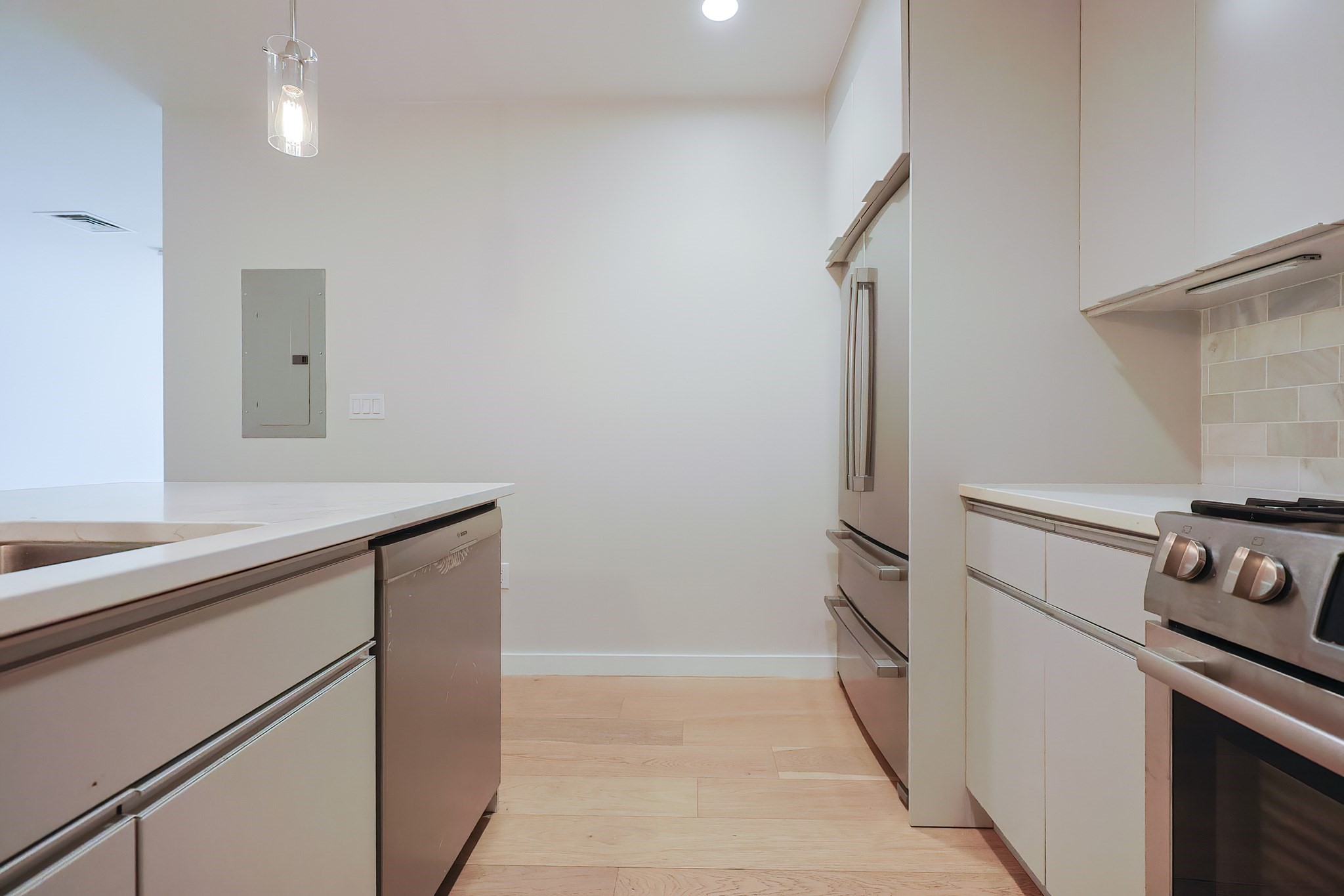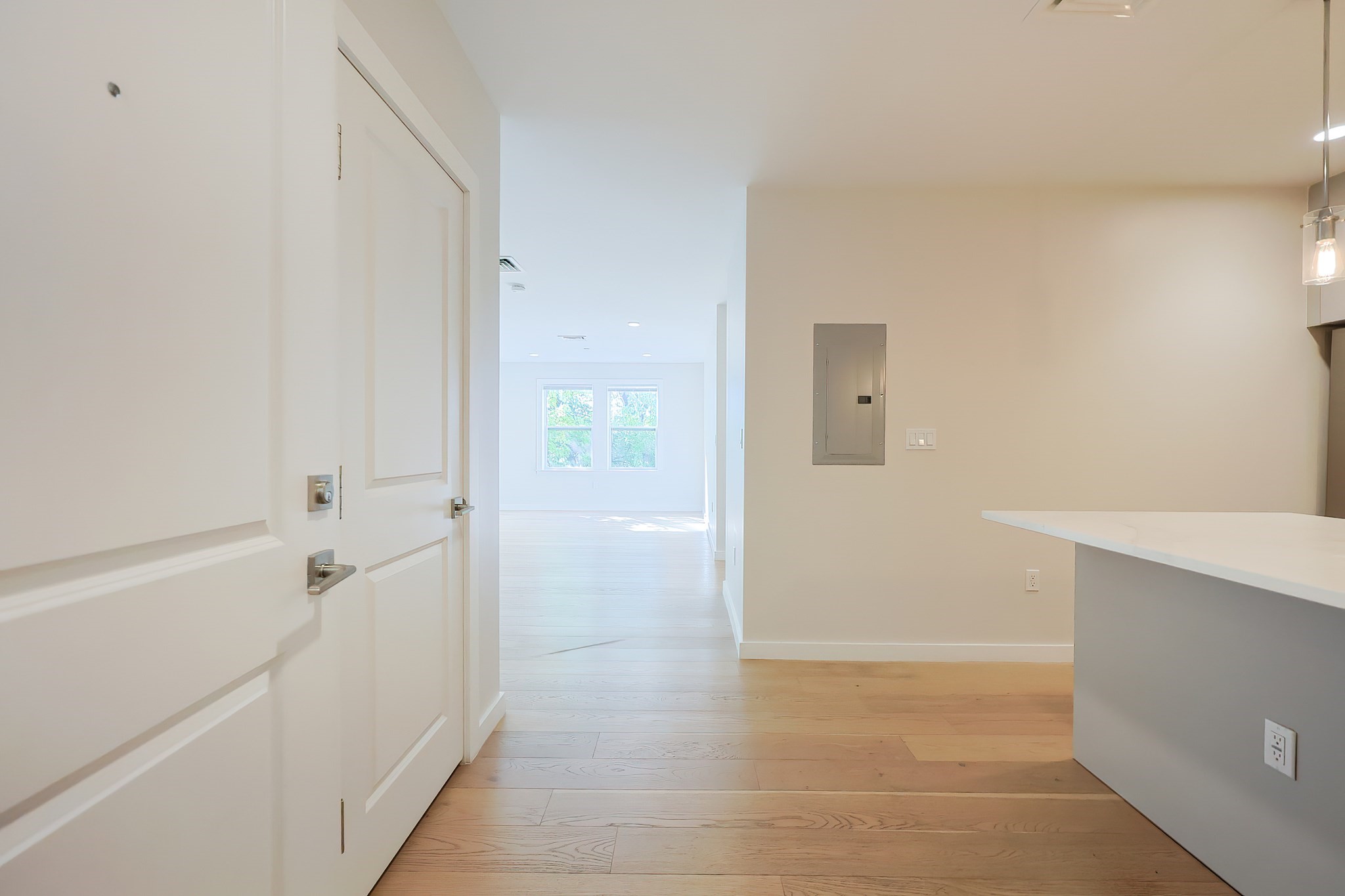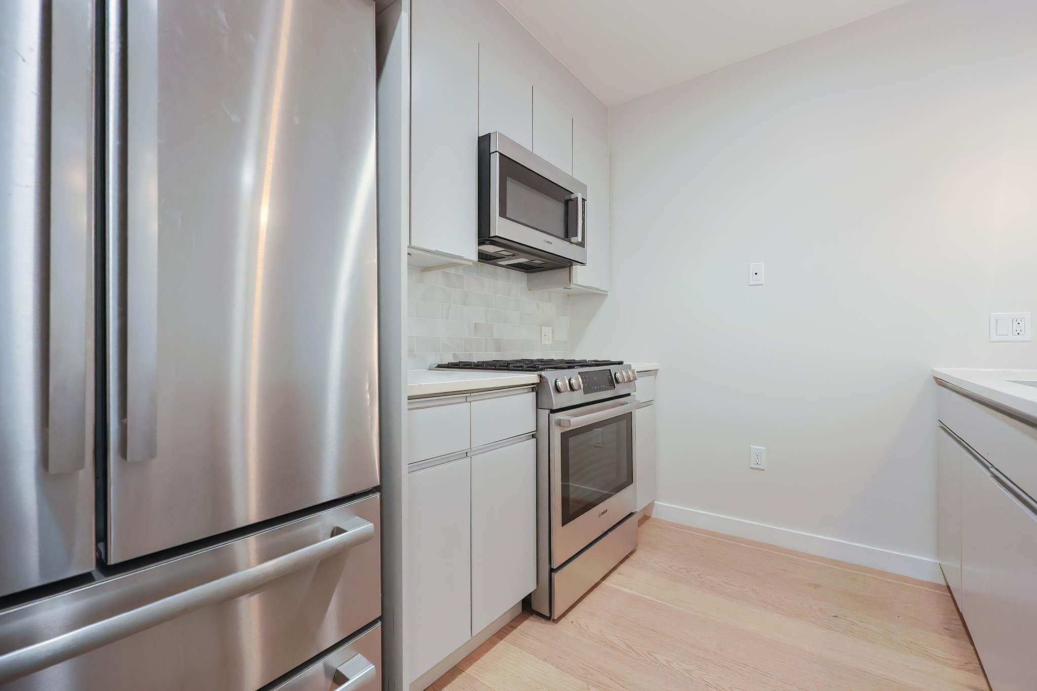 op-floor corner 2-bedroom, 2-bath residence with 2 garage parking spaces in a professionally managed elevator building overlooking Noyes Park in one of East Boston’s most convenient locations. Built in 2017, this stylish home offers 1,065/- sq ft of single-level living with an open layout, oversized windows, engineered hardwood floors, central air, in-unit laundry, and direct views of the park. The sleek contemporary kitchen features light-toned cabinetry, quartz countertops, marble backsplash, stainless steel Bosch appliances, and a center island with seating. The spacious primary suite includes a large custom walk-in closet and a beautifully finished bath with glass shower enclosure, while the second bath offers a tub/shower combination and clean modern finishes. Additional highlights include elevator access, intercom, and close proximity to the Blue Line, Constitution Beach, East Boston Greenway, neighborhood restaurants, shopping, and the exciting Suffolk Downs Redevelopment.
