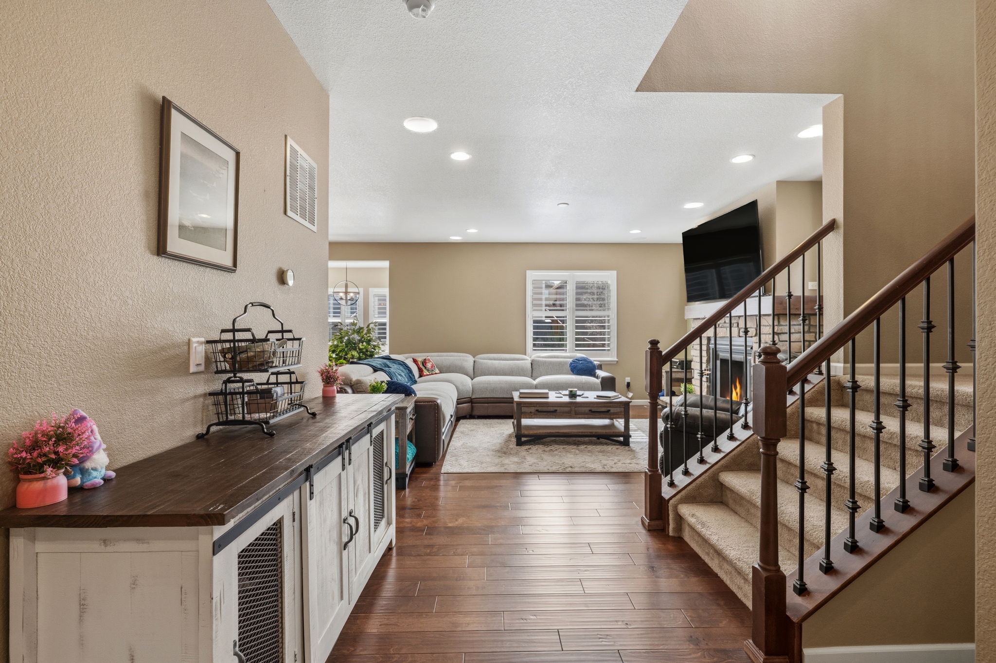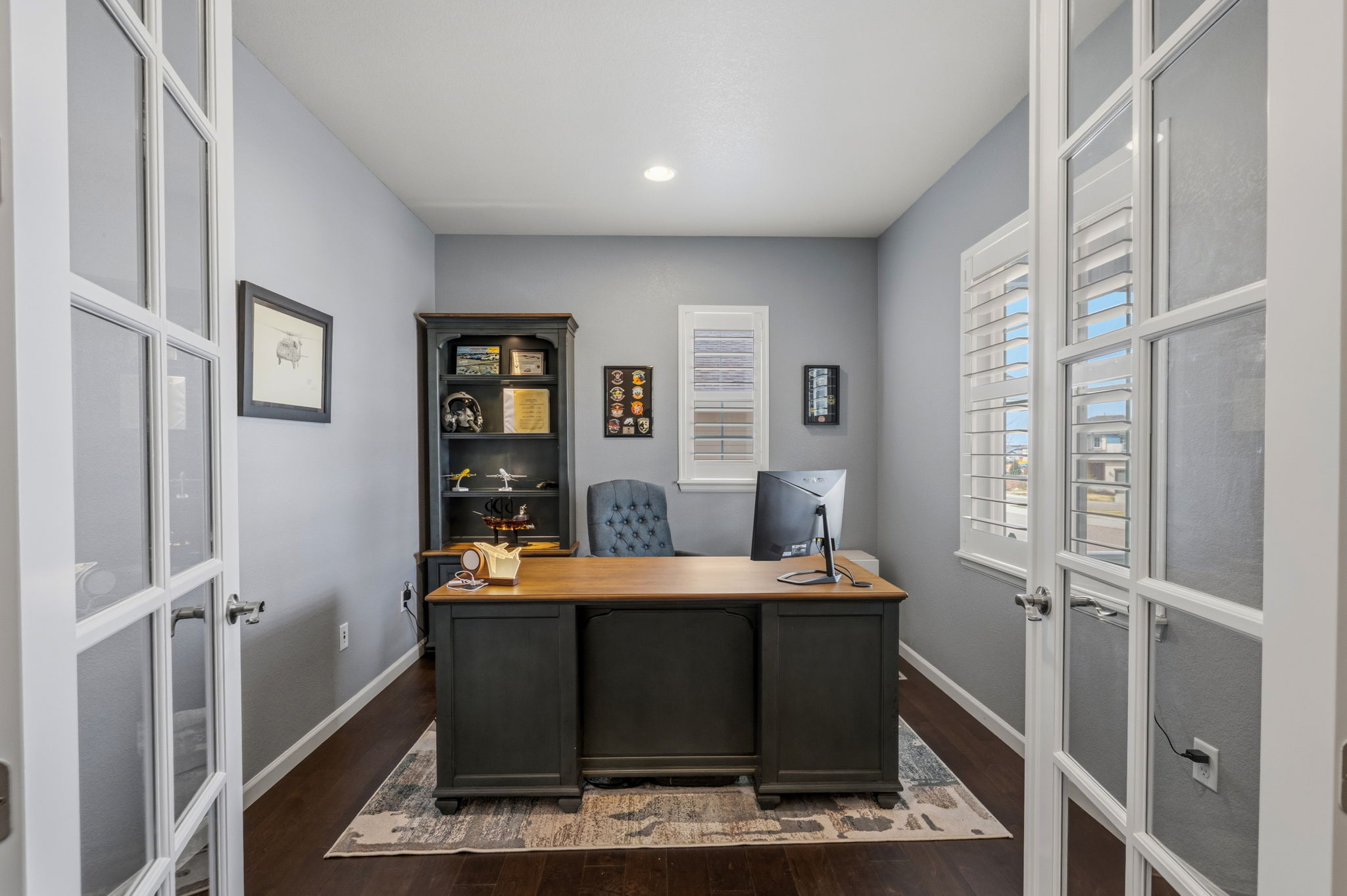 This is where thoughtful design meets real life functionality, an elevated Castle Rock home that adapts to you, not the other way around. Thoughtfully maintained, the home welcomes you with a calm, confident presence. Just off the entry, a dedicated office space that feels dialed in and distraction free, perfect for focus and flexibility as life shifts. The main level flows effortlessly.