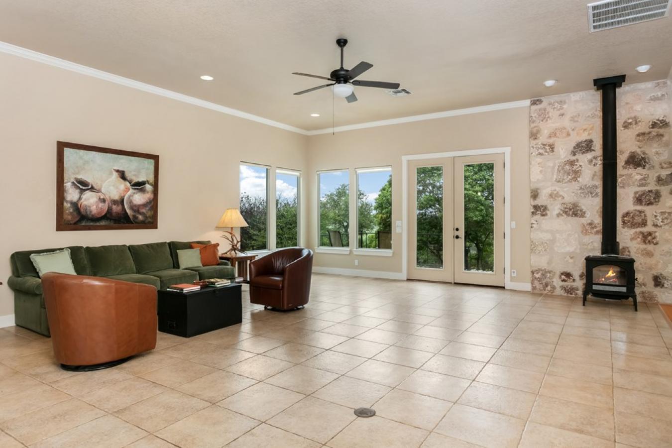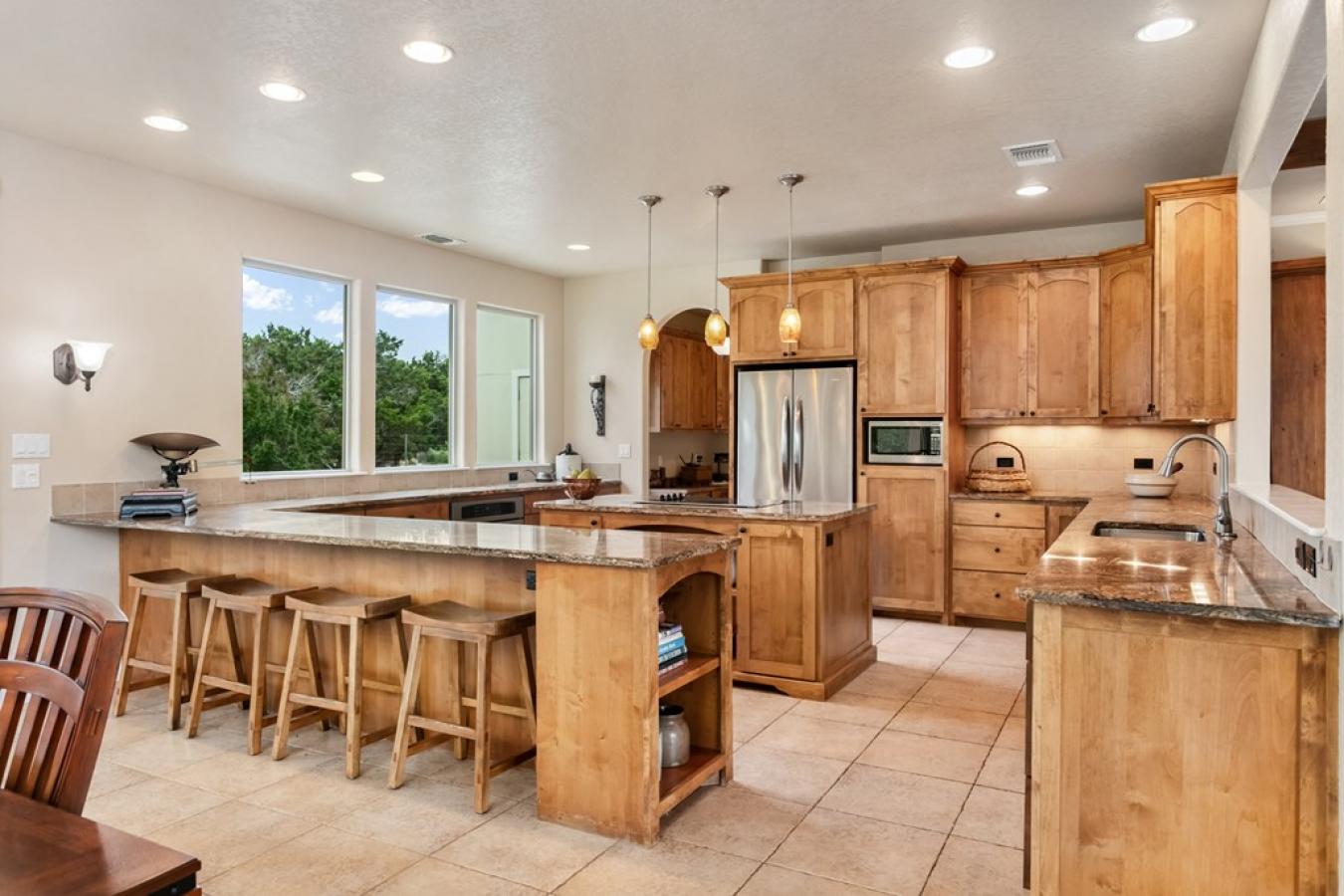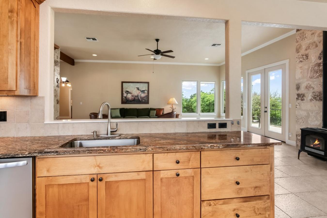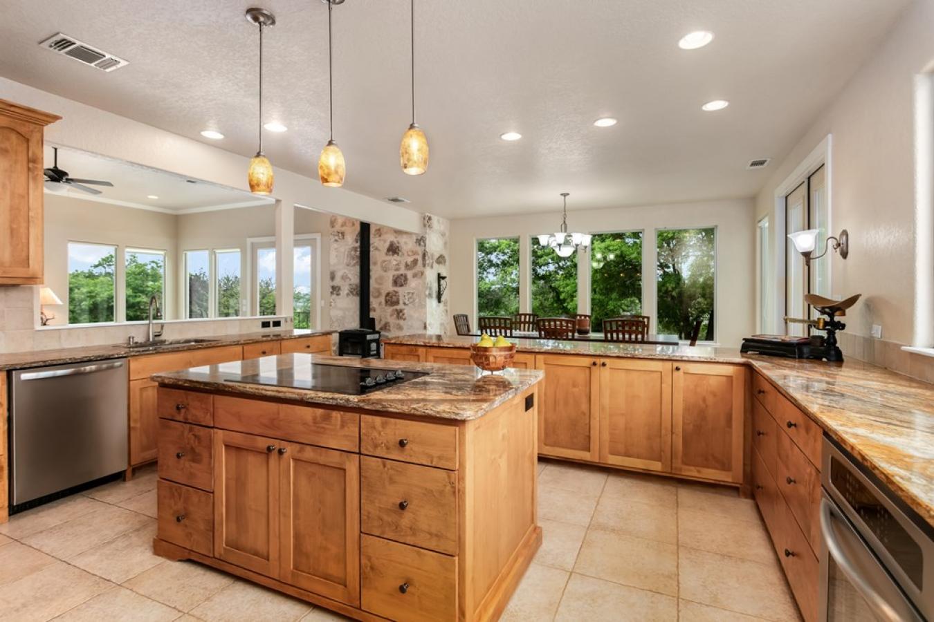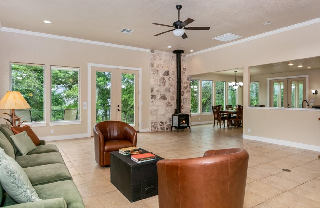 Views for miles and large windows to take it all in! Those are the first things you will notice about this spacious hilltop home just 7 miles from the heart of Fredericksburgs famous Main Street. As soon as you walk in the door, you are greeted with Hill Country views all around. The large, open family room is situated to take great advantage of the beautiful, green vistas.