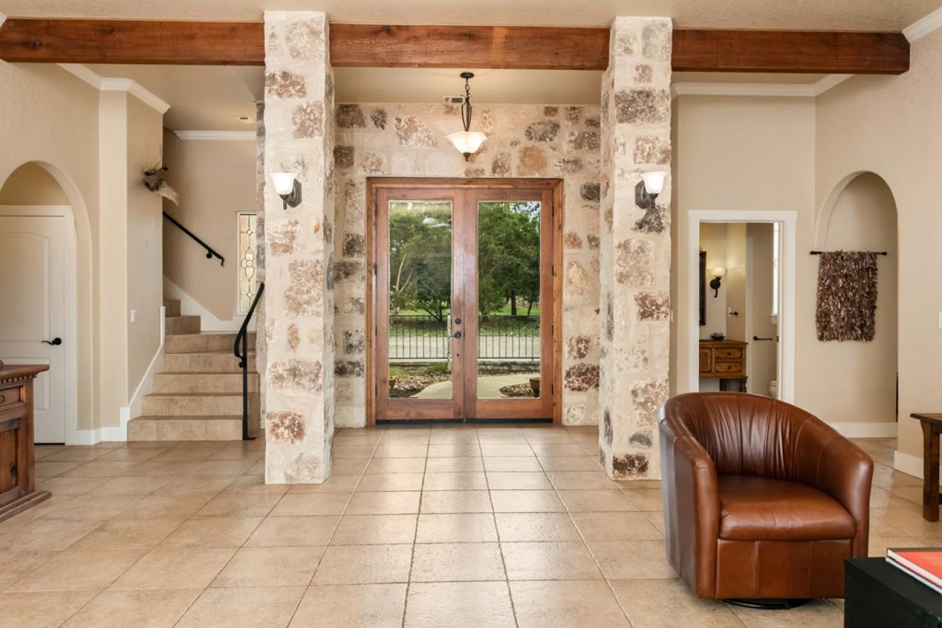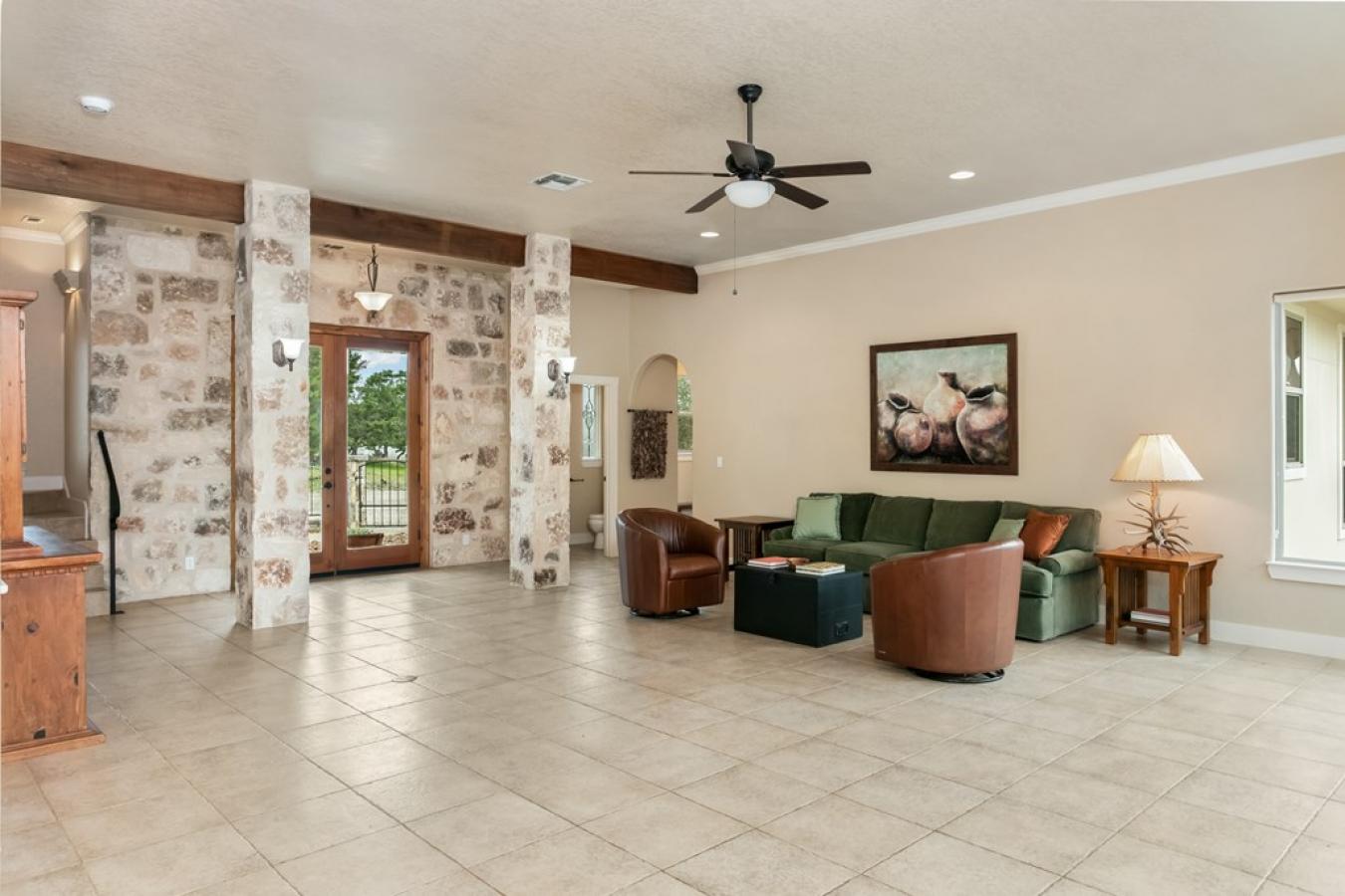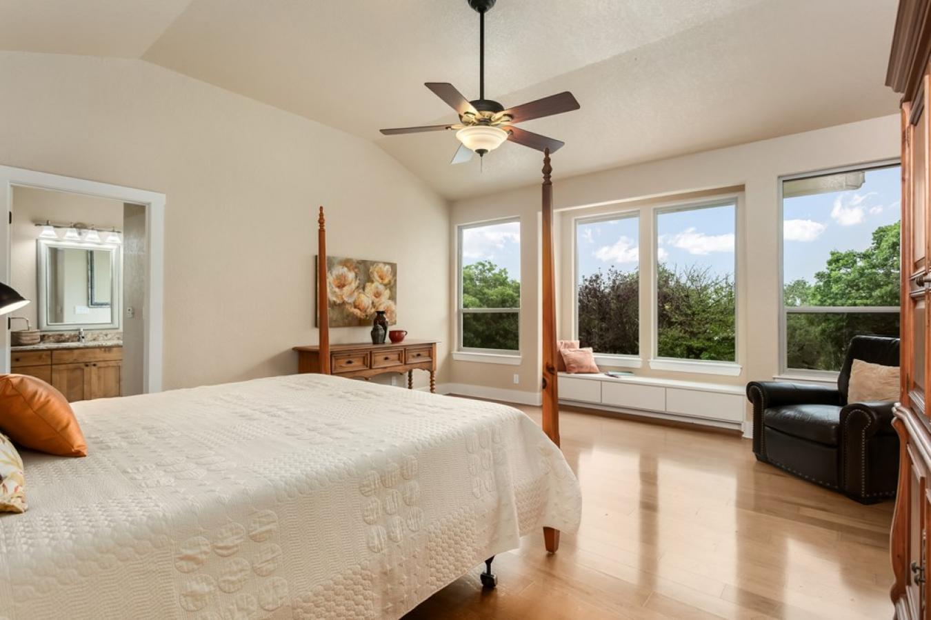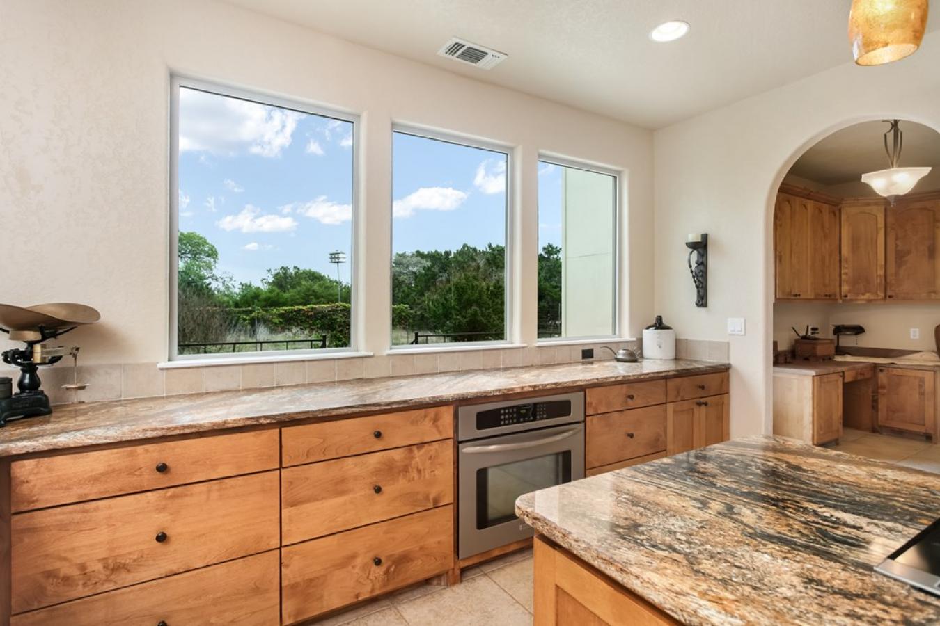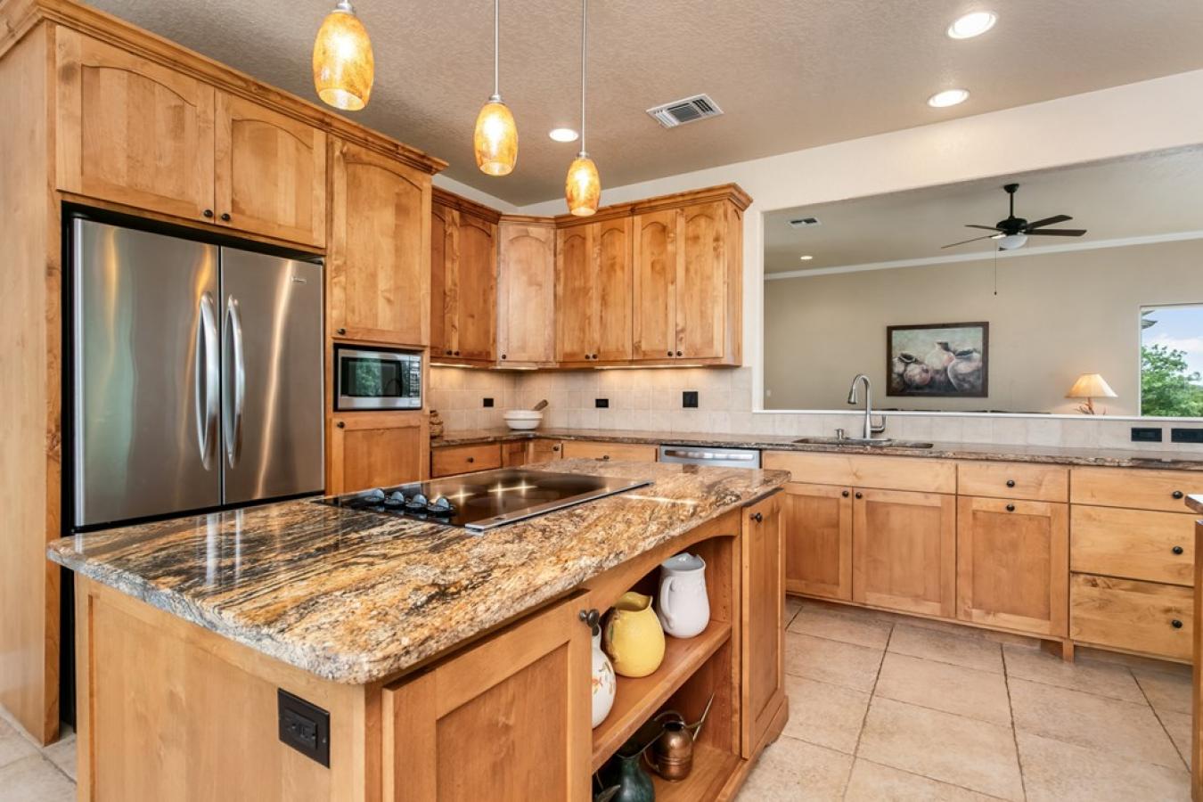 Views for miles and large windows to take it all in! Those are the first things you will notice about this spacious hilltop home just 7 miles from the heart of Fredericksburgs famous Main Street. As soon as you walk in the door, you are greeted with Hill Country views all around. The large, open family room is situated to take great advantage of the beautiful, green vistas.