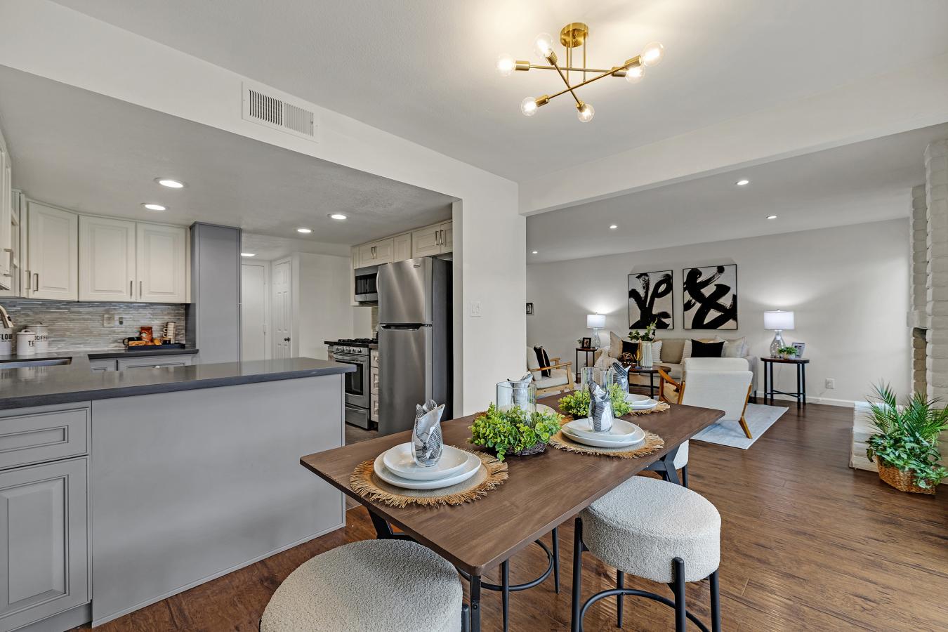 Discover this stylish townhome in the heart of Union City! The spacious living room features a cozy fireplace and expansive windows, while the dining area offers a sliding door leading to a private backyard patio with direct access to the pool, spa, & clubhouse.