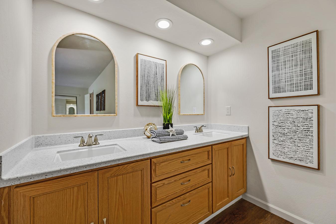 Discover this stylish townhome in the heart of Union City! The spacious living room features a cozy fireplace and expansive windows, while the dining area offers a sliding door leading to a private backyard patio with direct access to the pool, spa, & clubhouse. Perfect for entertaining, it truly feels like living in a resort! The updated kitchen has modern cabinetry, quartz countertops, & stainless-steel appliances. Upstairs, spacious Primary Suite is filled with light, opening to a private balcony, featuring mirrored closet doors. 2 additional spacious bedrooms overlook pool and spa; one offers dual closets while the other features a charming window seat. Notable upgrades include new carpets, beautiful wood laminate flooring, updated bathrooms, new interior paint, new lighting, and updated hardware, home is move-in ready. Enjoy an insulated garage with storage cabinets. The patio has pavers unless mature trees that creates a seamless indoor-outdoor vibe, while also low maintenance. Located in a quiet, vibrant community. Walking distance to great schools, parks & the Library. The home offers unparalleled access to the Dumbarton Bridge, I-880, and BART for seamless Bay Area commuting and airport travel. Residents enjoy premier convenience with top shopping, dining, just minutes.