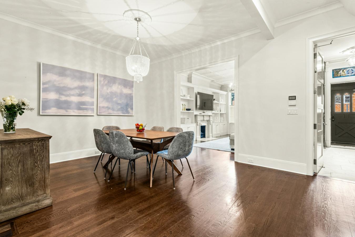 For the first time in over 75 years, this grand 9-room home with stunning renovations throughout is now on the market. From a semi-private landing, the door opens to a 24 gallery, a most gracious introduction to this superb layout that offers beautifully proportioned rooms and 10 ceilings.
