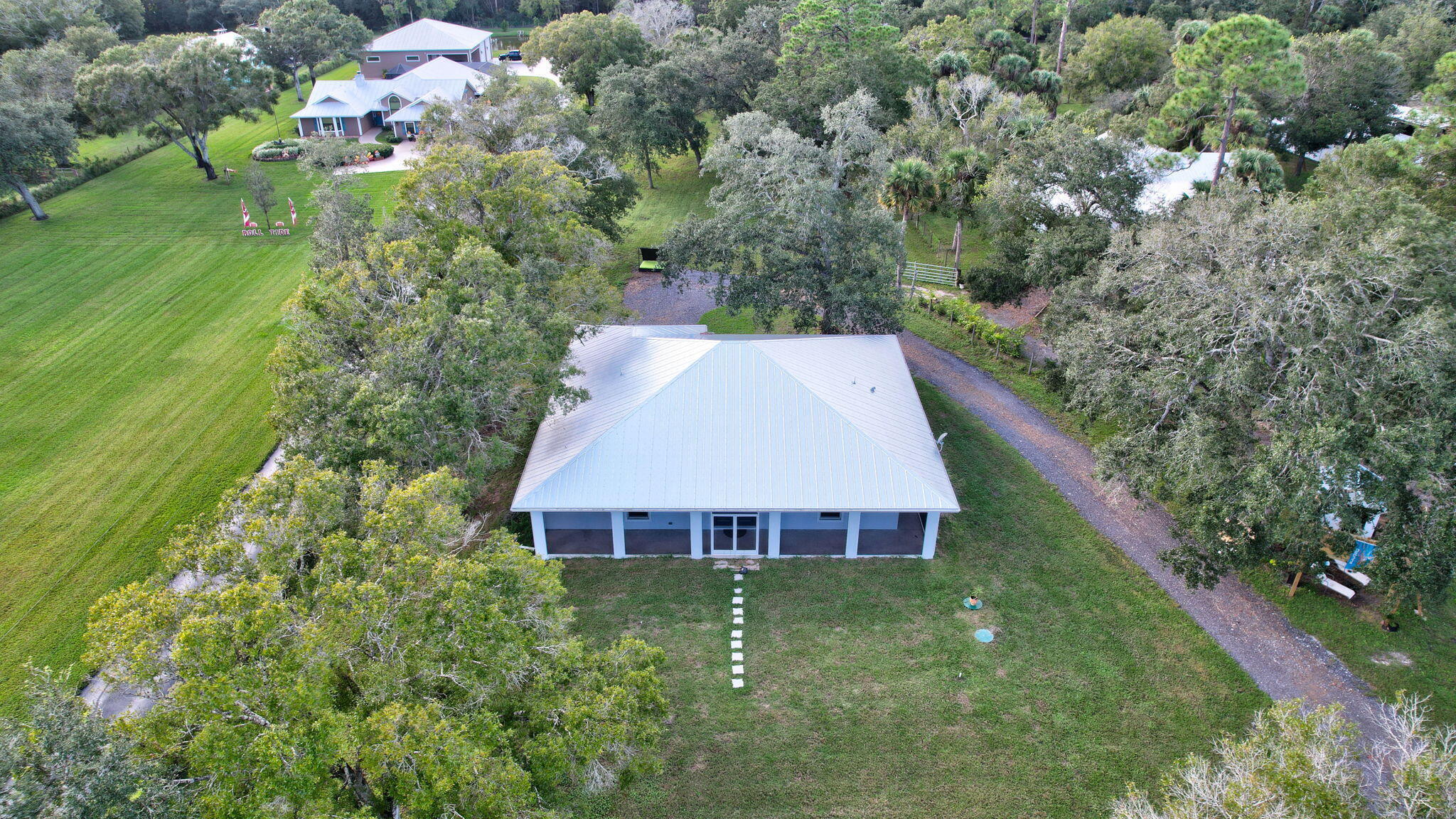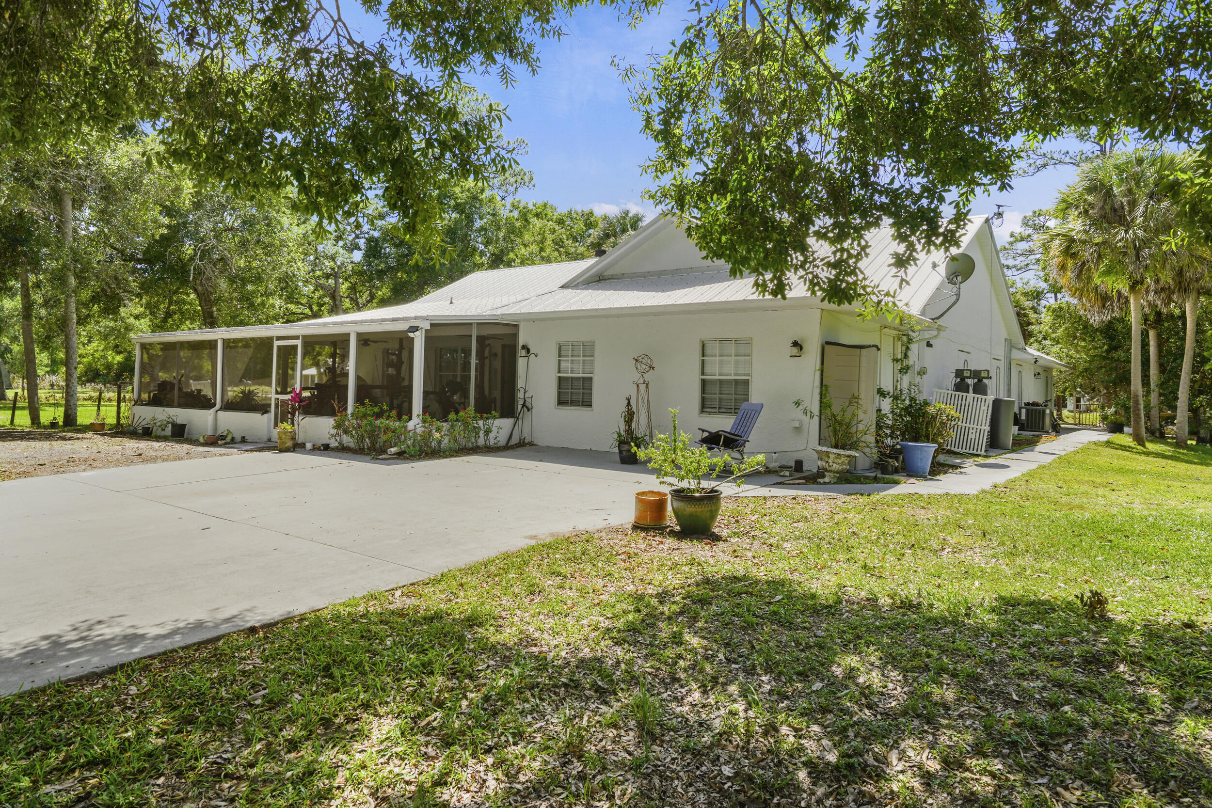 Welcome to your own family farm! Plenty of room for the animal lovers horses, cows, chickens etc. Main home features a 4 bedroom, 3 bath country style decor with a beautiful large rock fireplace as the centerpiece. In the back of the main home is a completely remodeled 1 bedroom apartment featuring its own 2024 A/C unit and separate entry. This apartment is perfect for a caretaker, property manager, horse trainer, etc. The guest home, built in 2024, features a whole home generator, impact windows and a metal roof. This home is perfect for in-laws or a rental. Many beautiful features to both homes. The property consists of a large pond with a floating dock, 2 chicken coops (1 unfinished) a 3 horse paddock, 3 fenced in pastures all connected by gates. Both driveways feature a remote opening gate. The main barn can fit up to 7 horse stalls and has an air conditioned office attached. 3 sheds. Much more to see than can be said here!