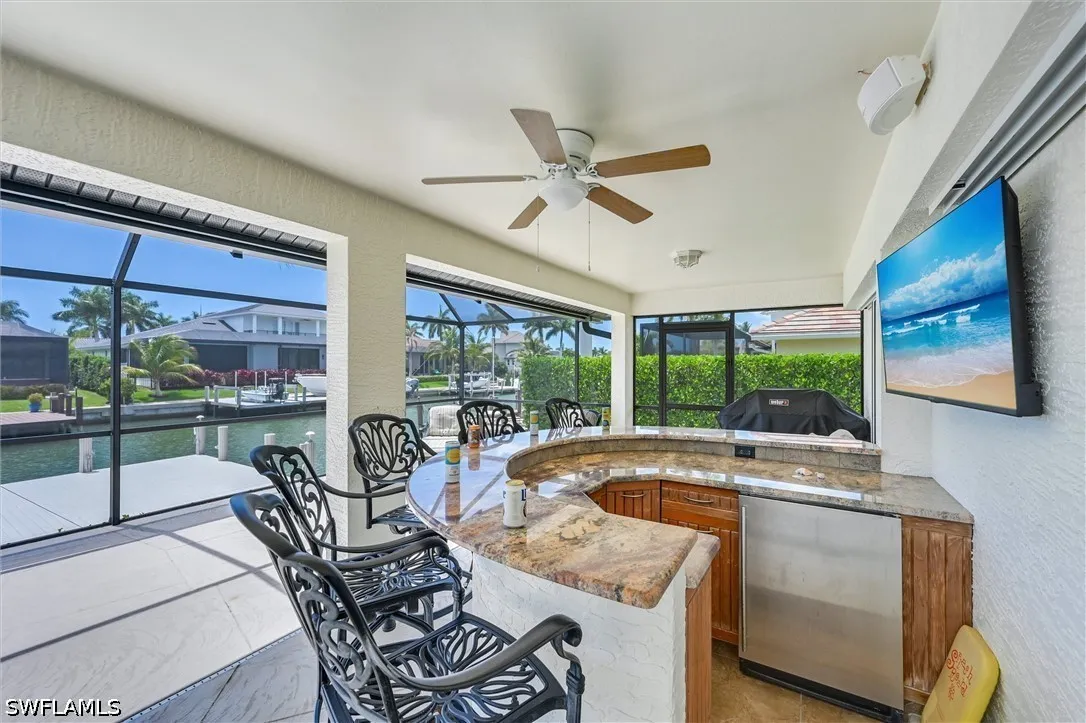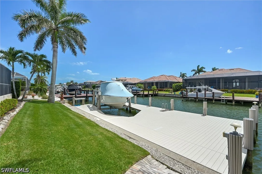 Yes!, you really can own a remodeled waterfront home on Marco Island at a price that wont break the bank. This island gem blends comfort, style, and the boating lifestyle buyers dream about. The kitchen and primary bath were beautifully remodeled by Ehlen Construction in 2009, while the roof was replaced in 2018 for added peace of mind. In 2011, the seawall was reinforced with 18 pilings and rip-rap, and an oversized dock with a 12,000-pound boat lift was added, ready for your next day on the water. Outside is where the magic happens. A sprawling pool and sun-soaked deck create the ultimate backyard retreat, complete with a built-in bar made for sunset cocktails, celebrations, and memories that last a lifetime. And with coveted western exposure, the sky puts on a show every single evening. Sold fully furnished, this home is ready for immediate enjoyment. Inside, the open great room design keeps everyone connected, whether cooking dinner, watching the game, working remotely, or hosting friends and family. The primary bedroom closet is currently configured as a bunk room, offering a clever sleeping space for guests, kids, or grandkids, but can easily be converted back to a closet. Waterfront living, sunset views, boating access, and move-in-ready comfort, all wrapped into one exceptional Marco Island opportunity.
